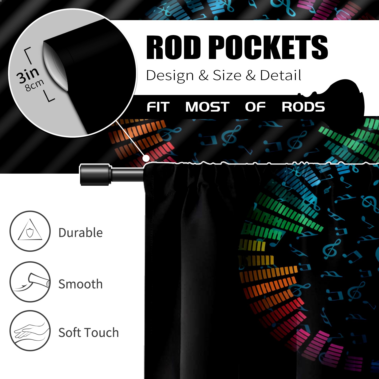 Шторы-панно для дома, декоративные драпировки для гостиной и спальни, легкие и прочные, Colorful Music Notes