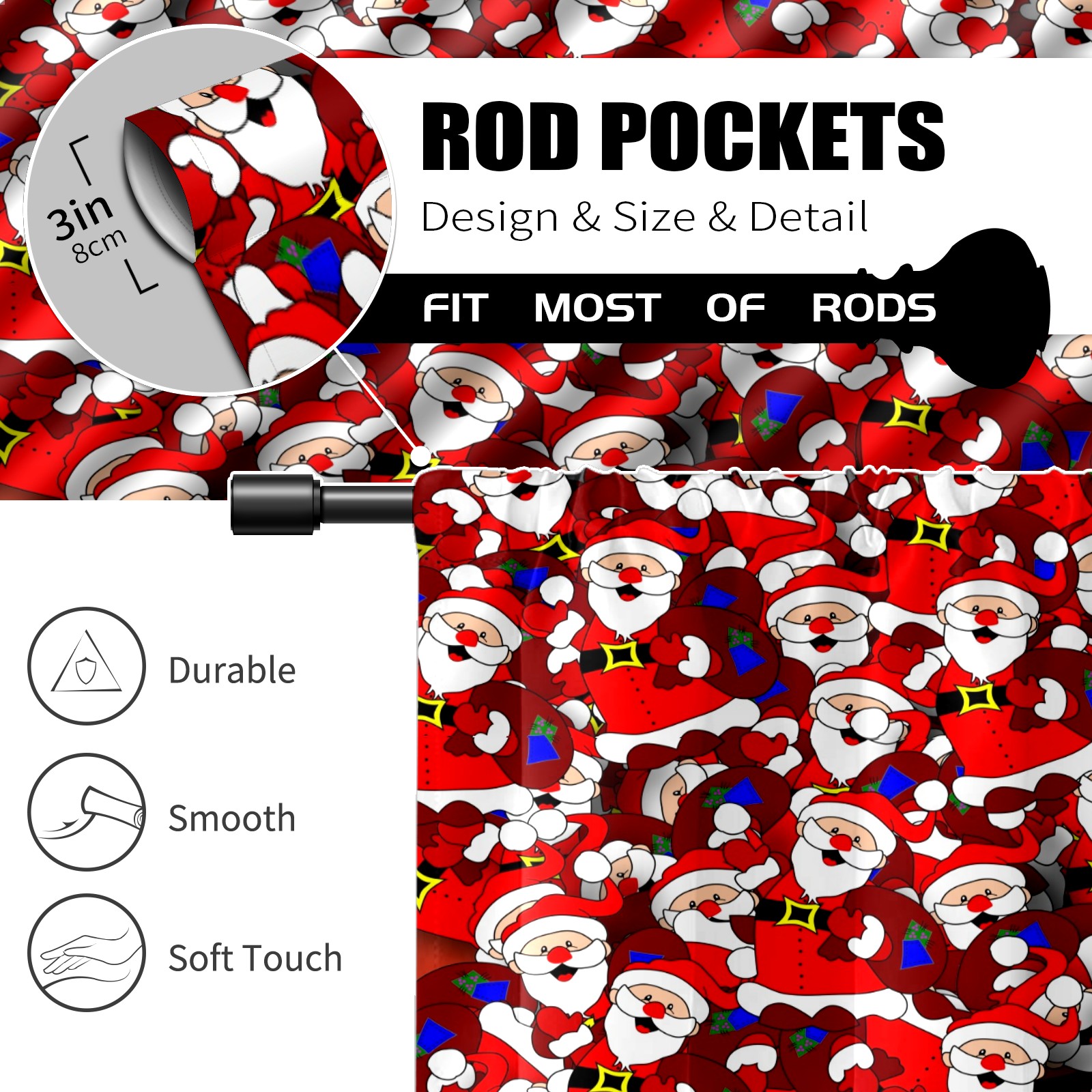 Шторы-панно для дома, декоративные драпировки для гостиной и спальни, легкие и прочные, Christmas Santa Claus Gift Red Merry Xmas