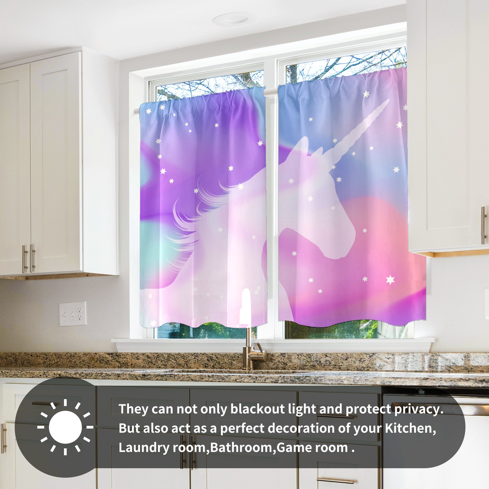 Шторы-панно для дома, декоративные драпировки для гостиной и спальни, легкие и прочные, Silhouette Unicorn Purple Mysterious