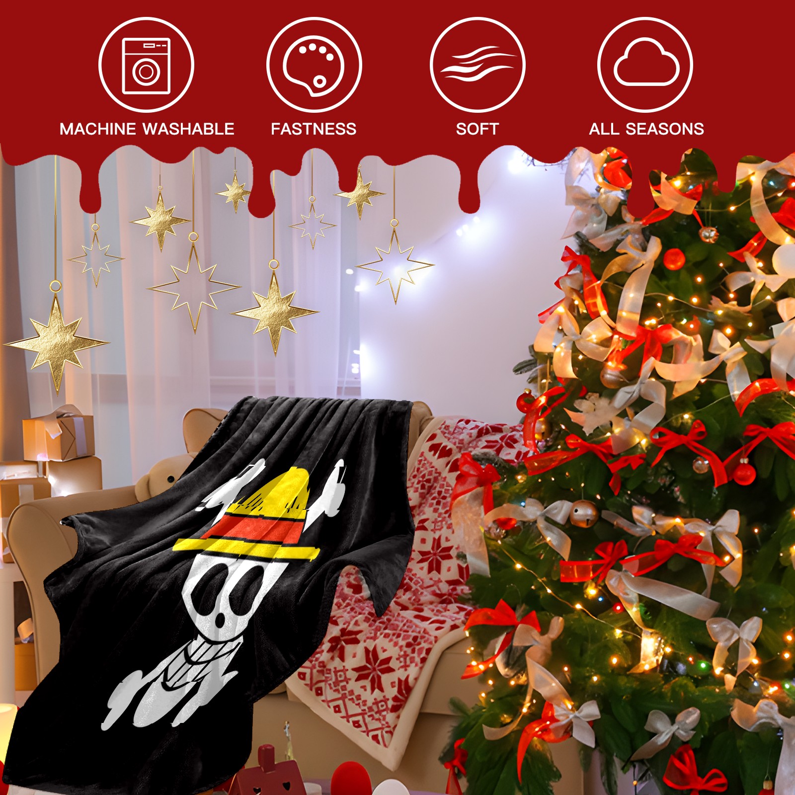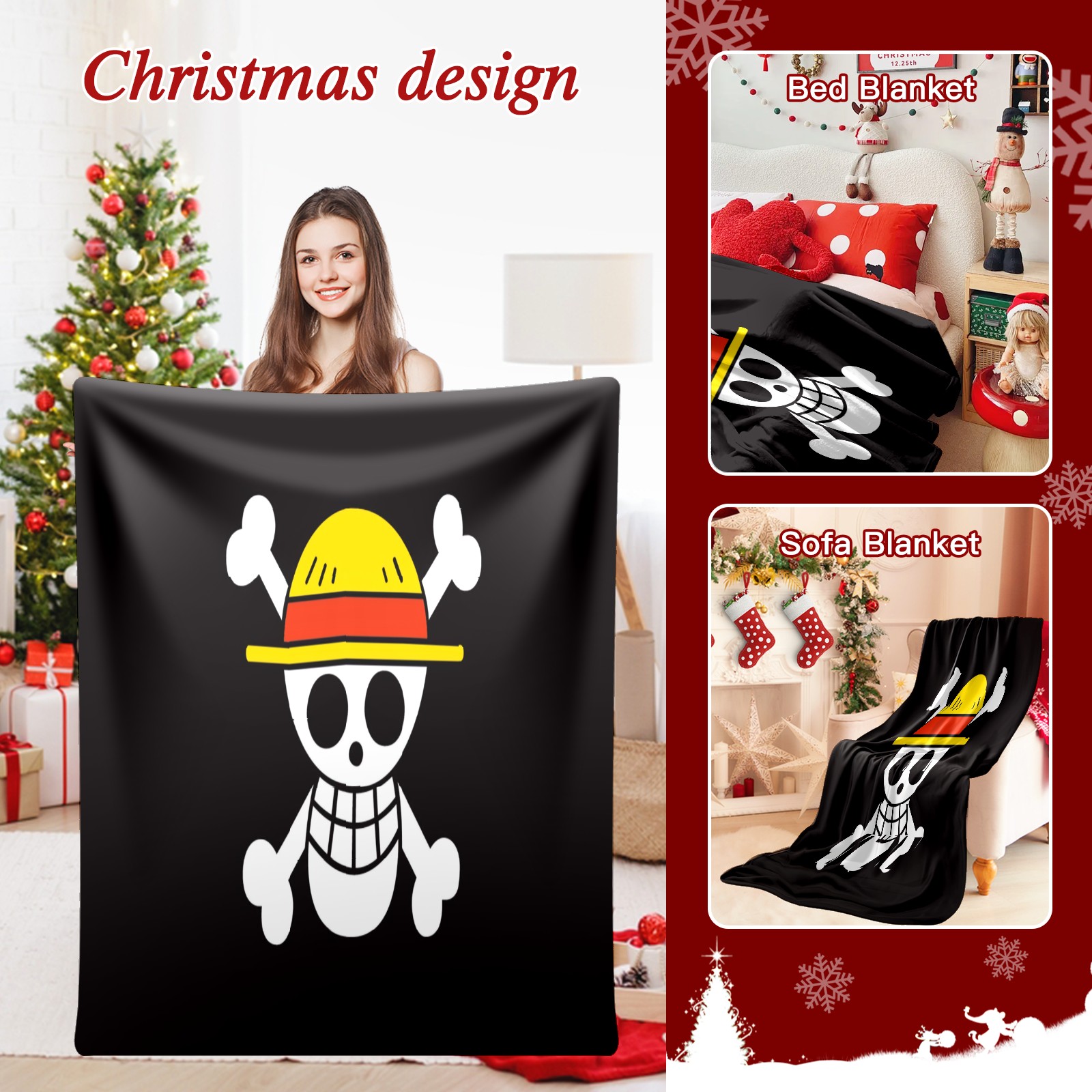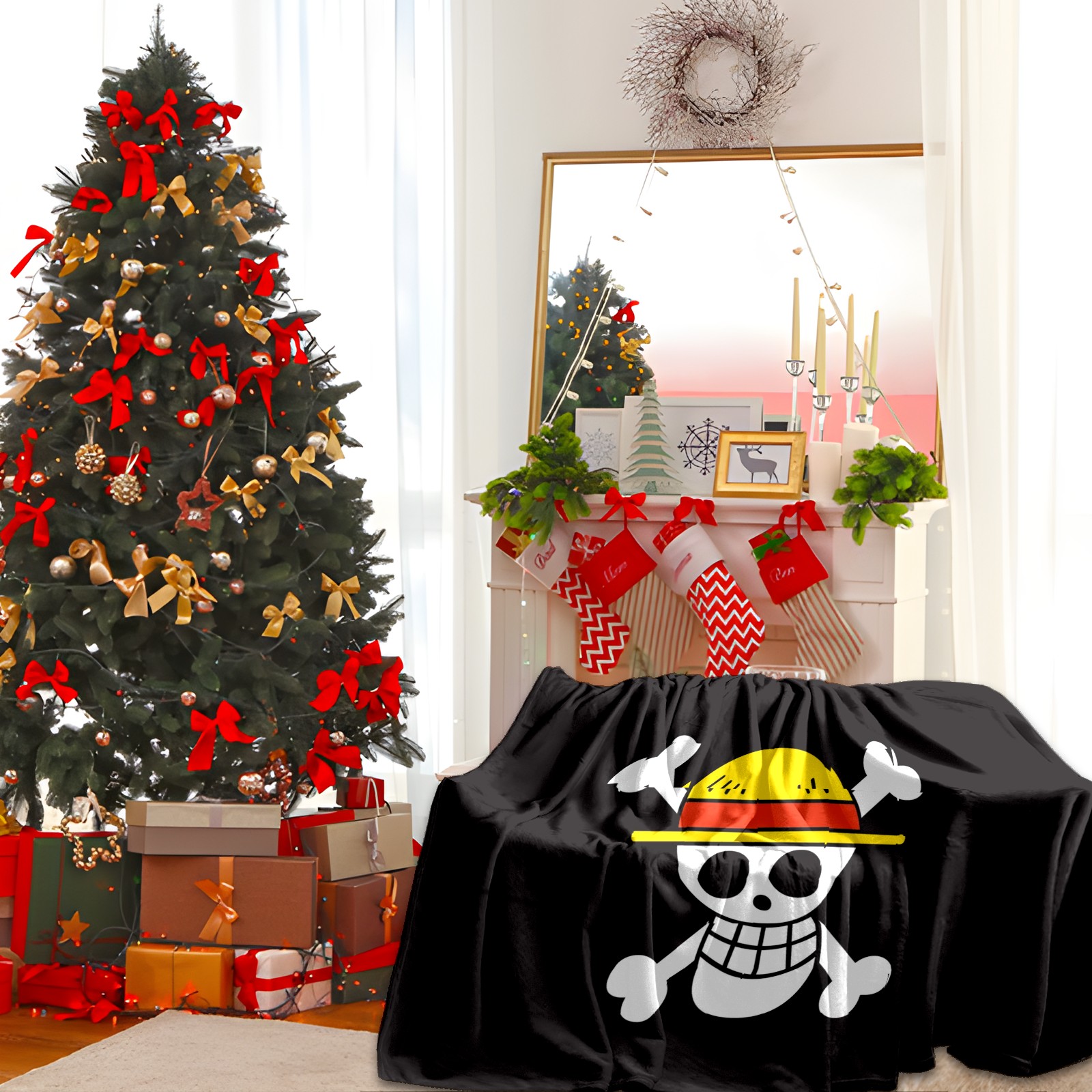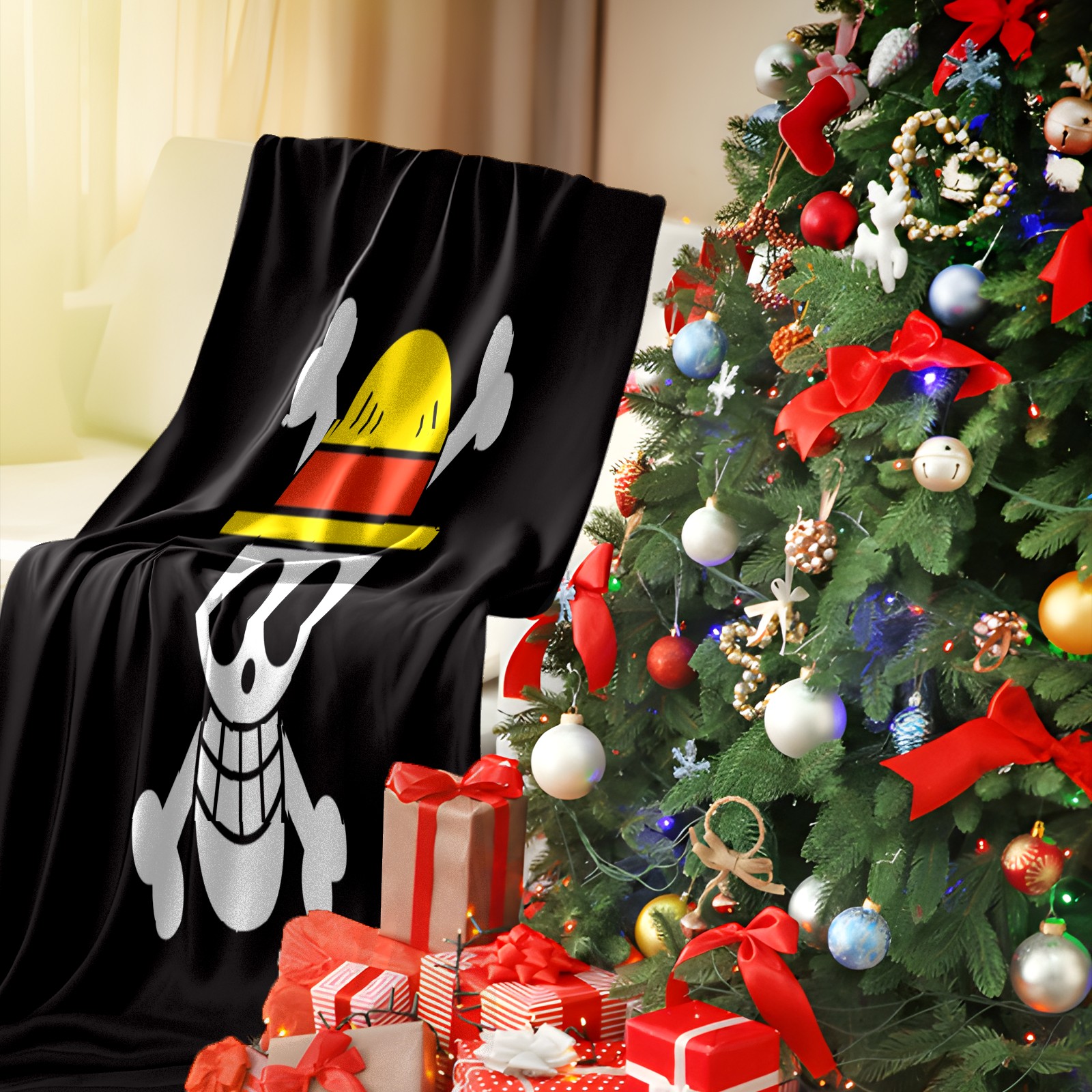 Премиальная фланелевая одеяло One Piece Luffy Anime