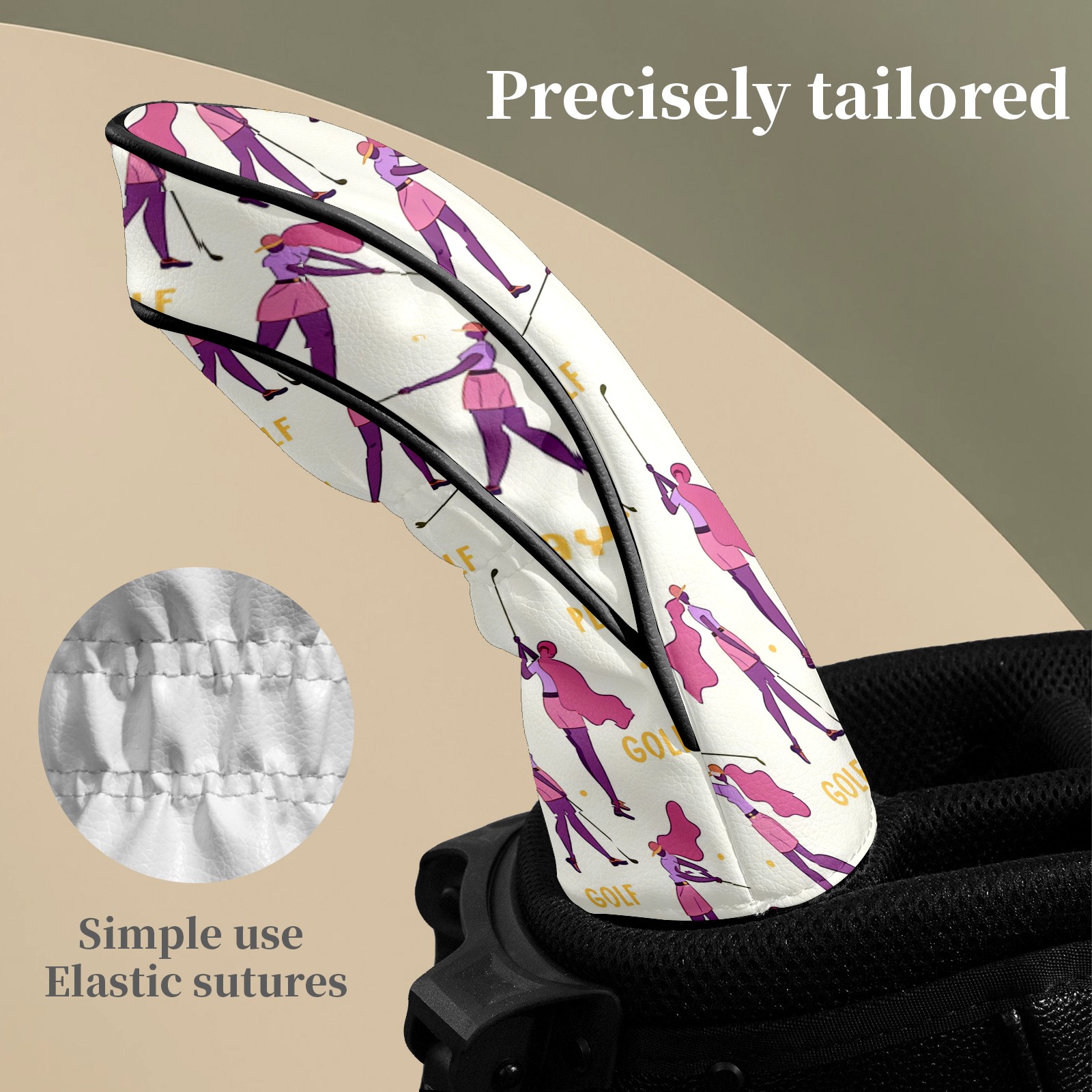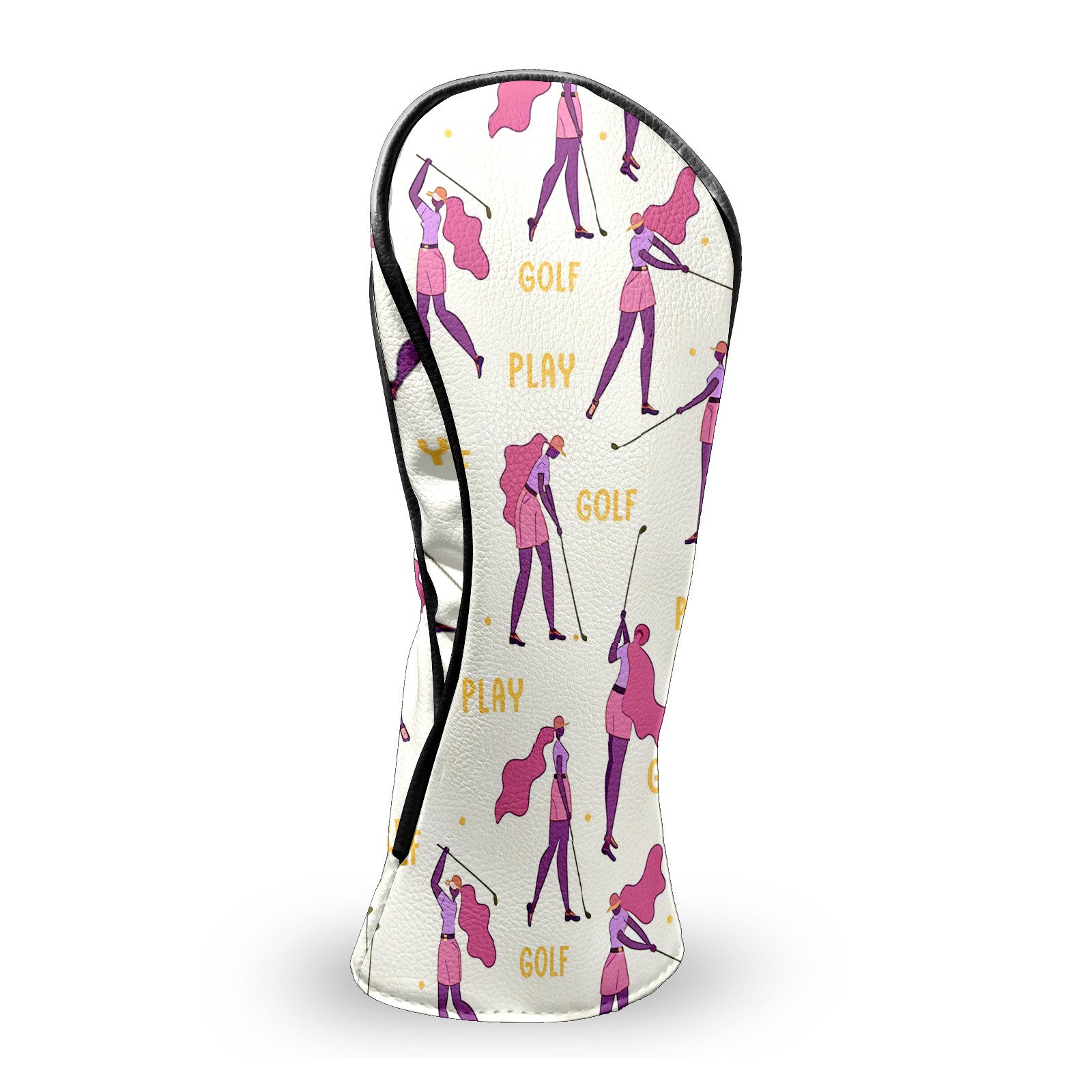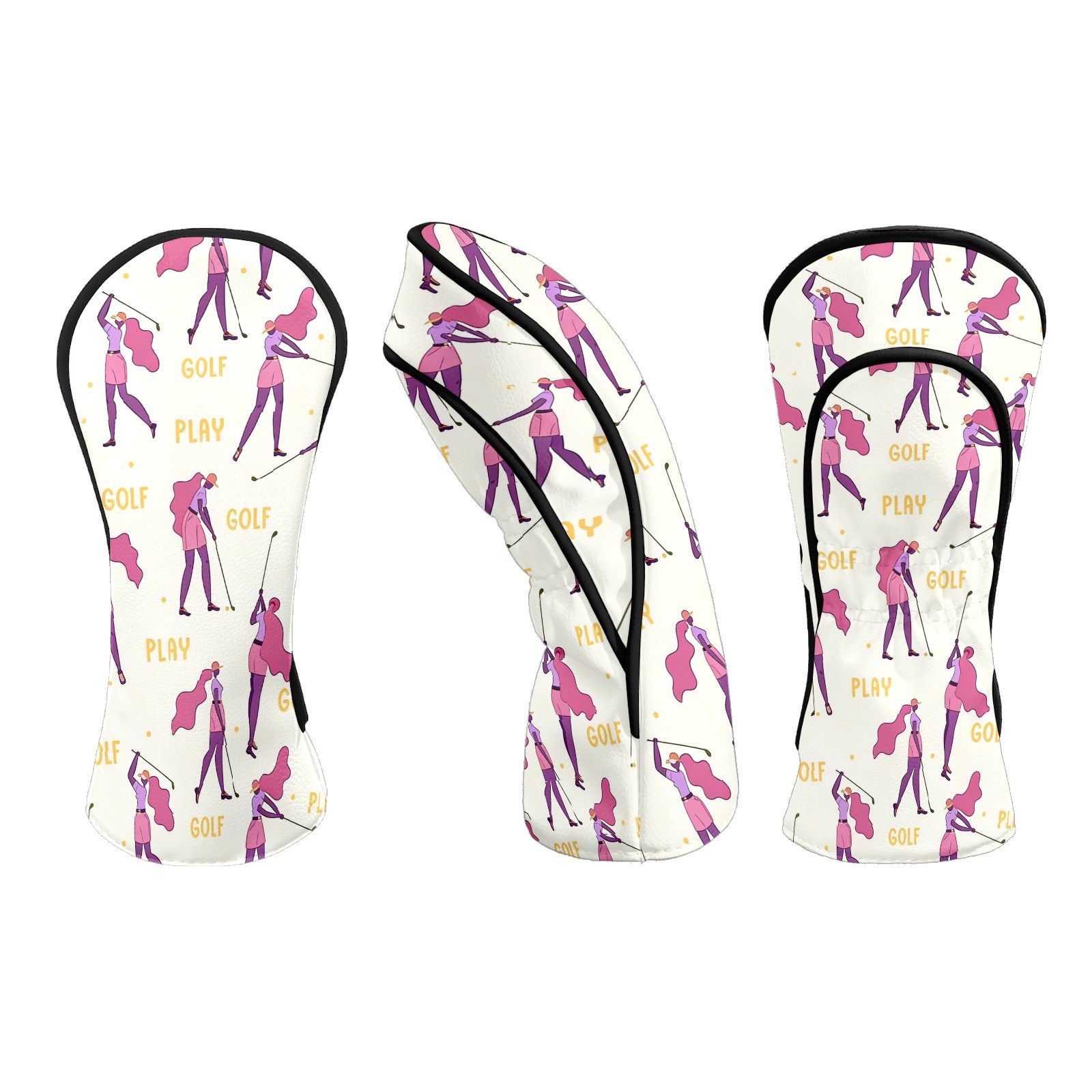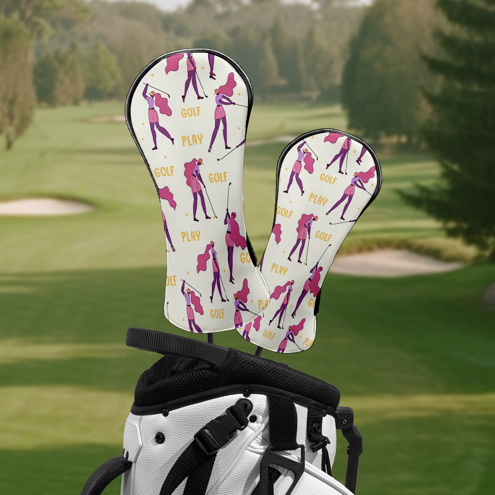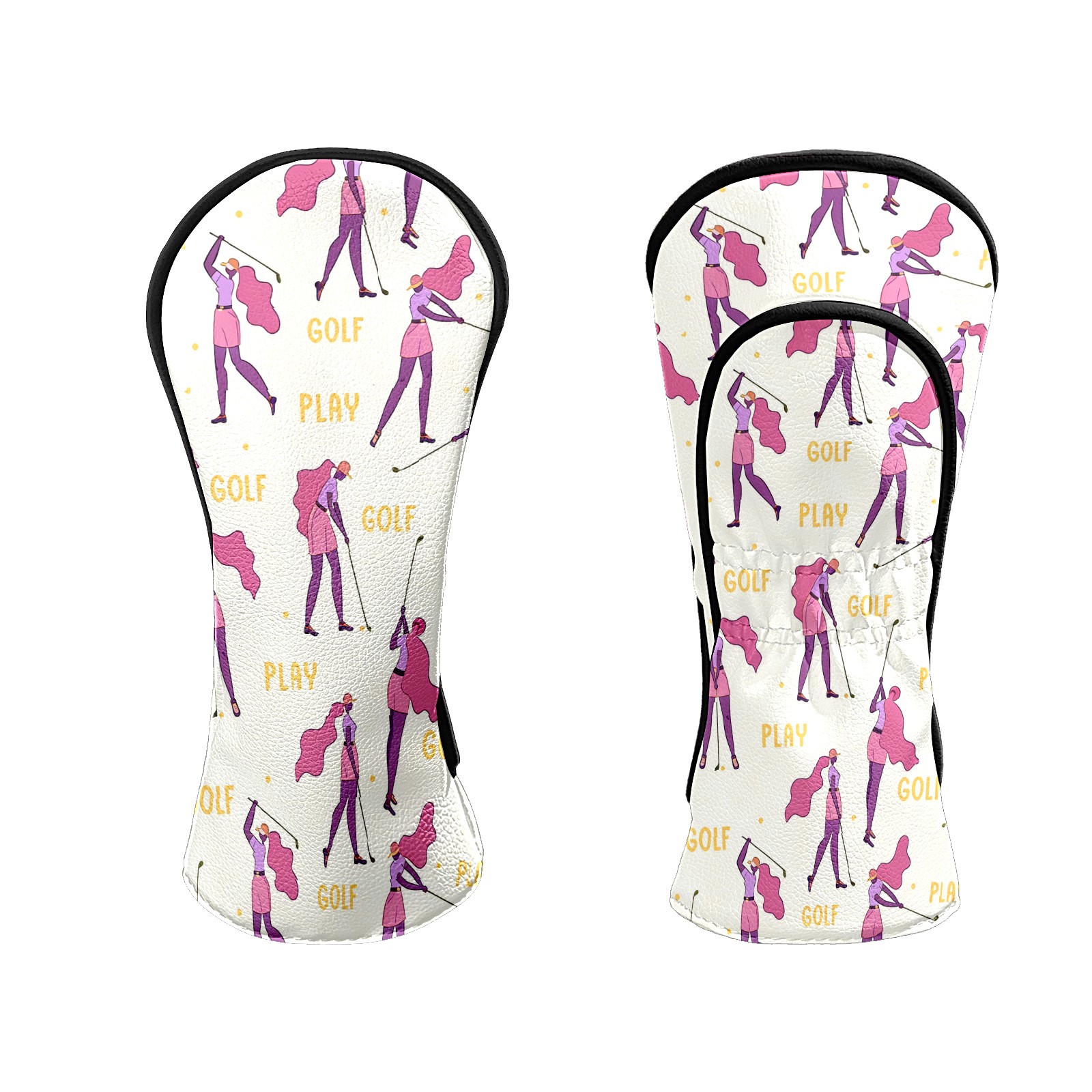 Counullo Golf Club Headcovers - Golf Player Pink Premium PU Leather with Plush Lining for Driver & Fairway Woods, No-Slip Fit for All Clubs, Novelty Gift for Men & Women