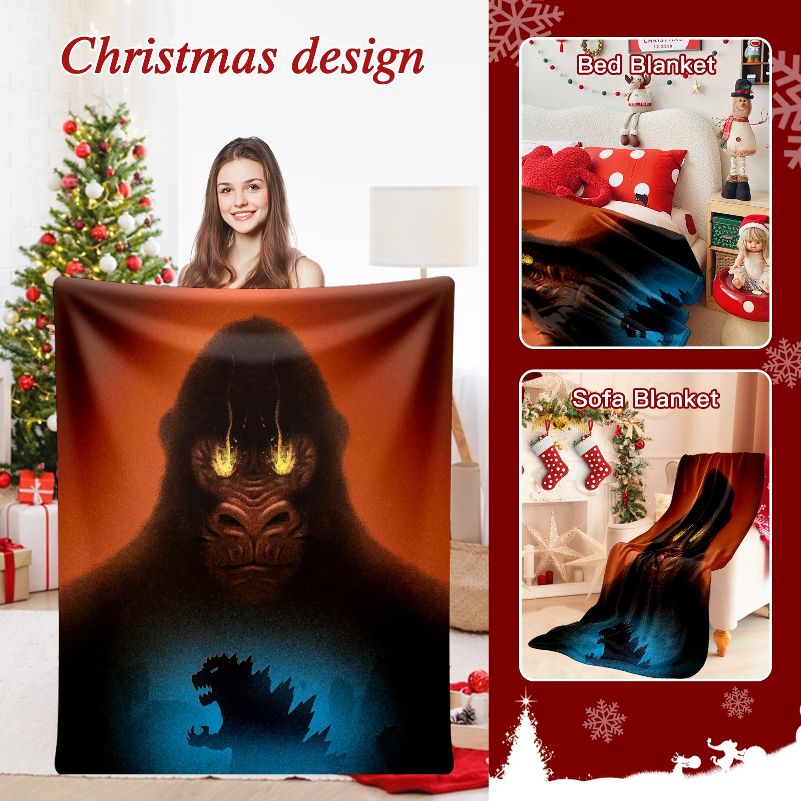 Премиальная фланелевая одеяло Godzilla Monsters