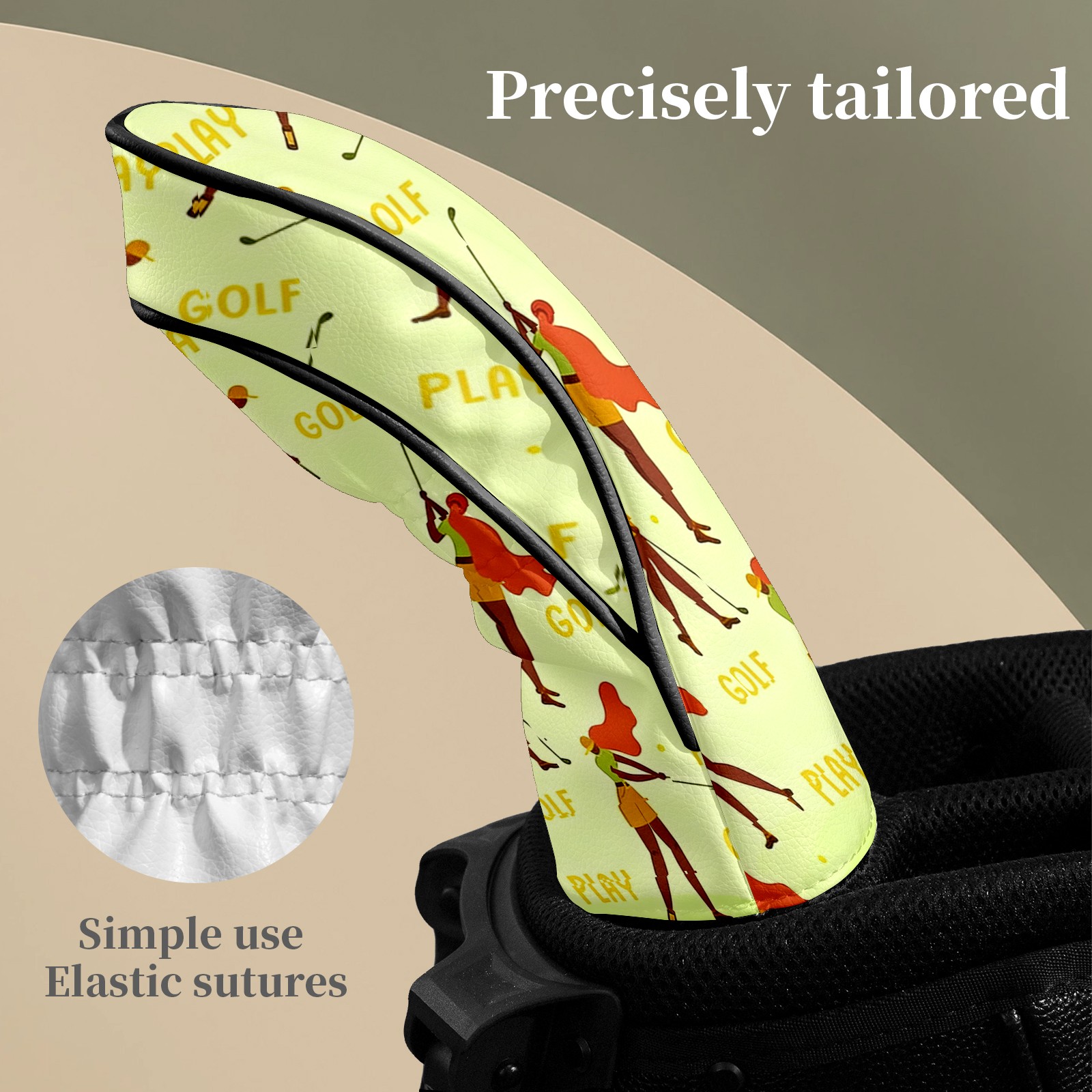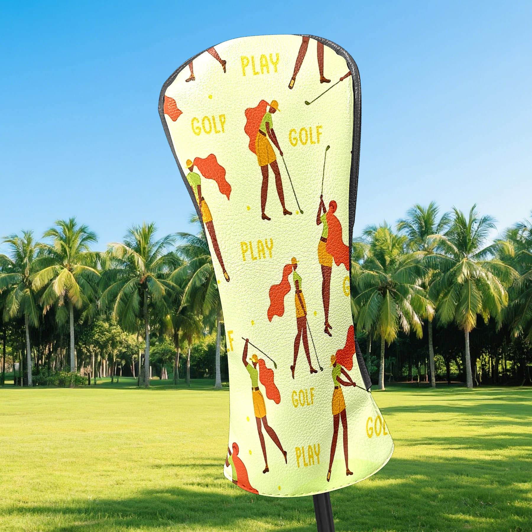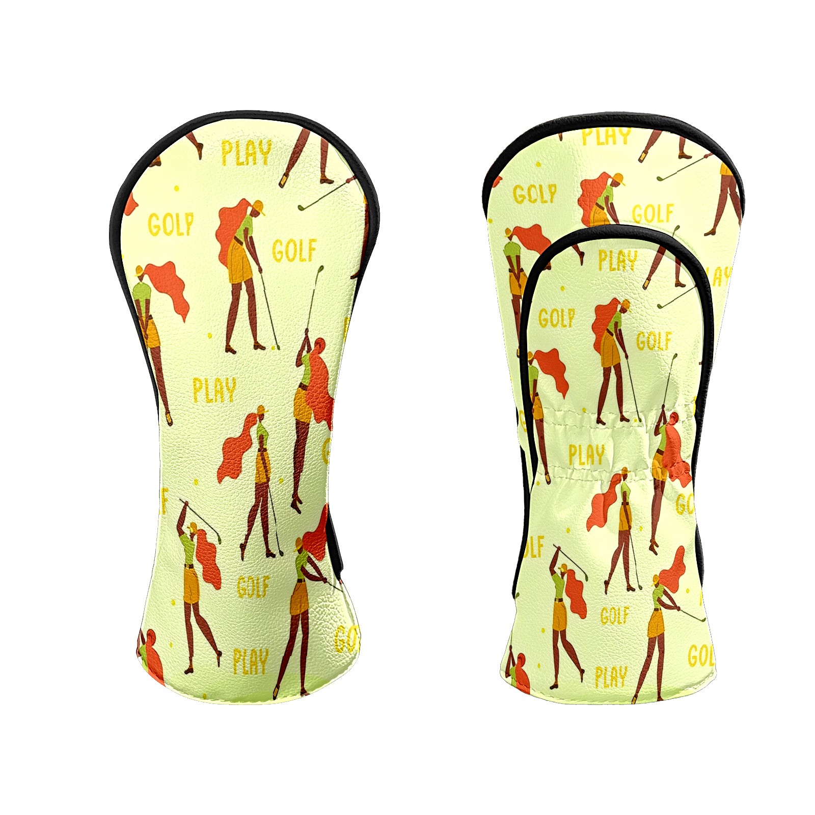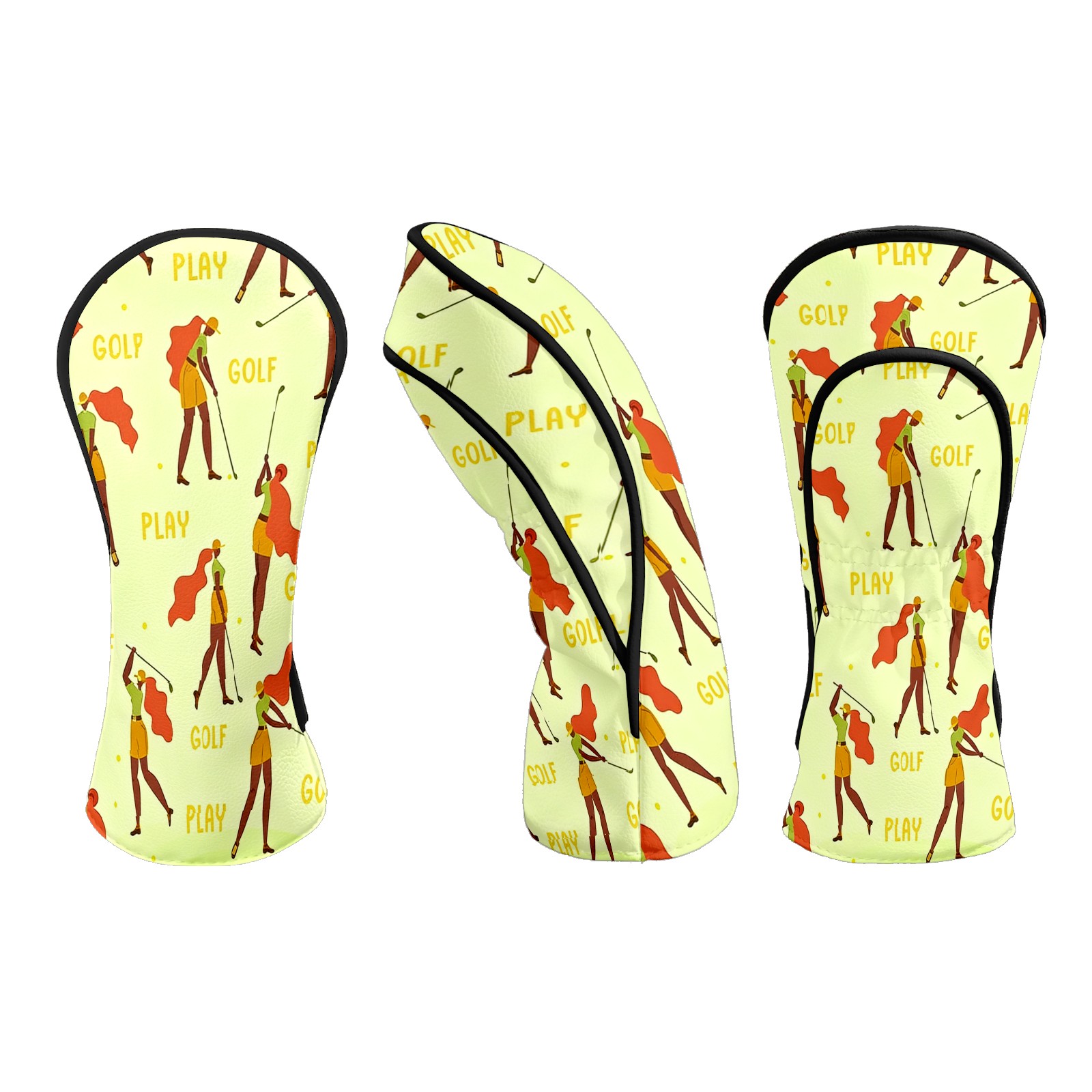 Counullo Golf Club Headcovers - Golf Player Yellow Premium PU Leather with Plush Lining for Driver & Fairway Woods, No-Slip Fit for All Clubs, Novelty Gift for Men & Women