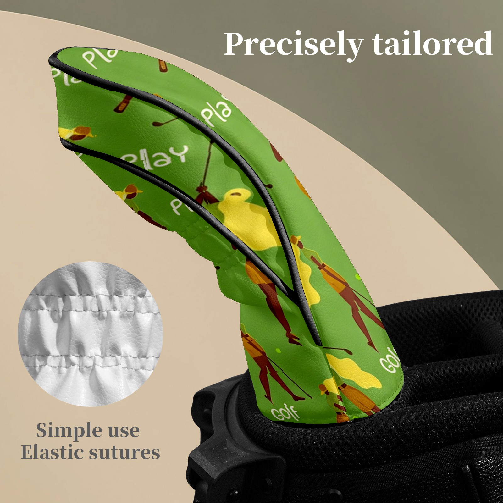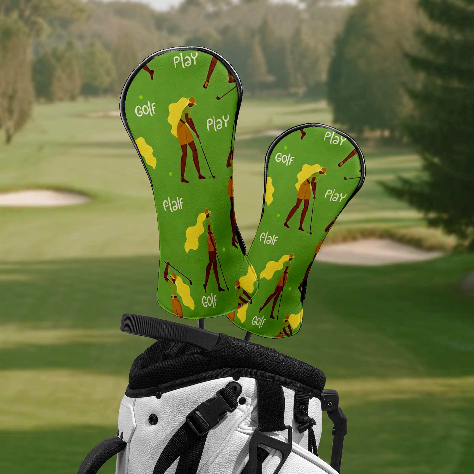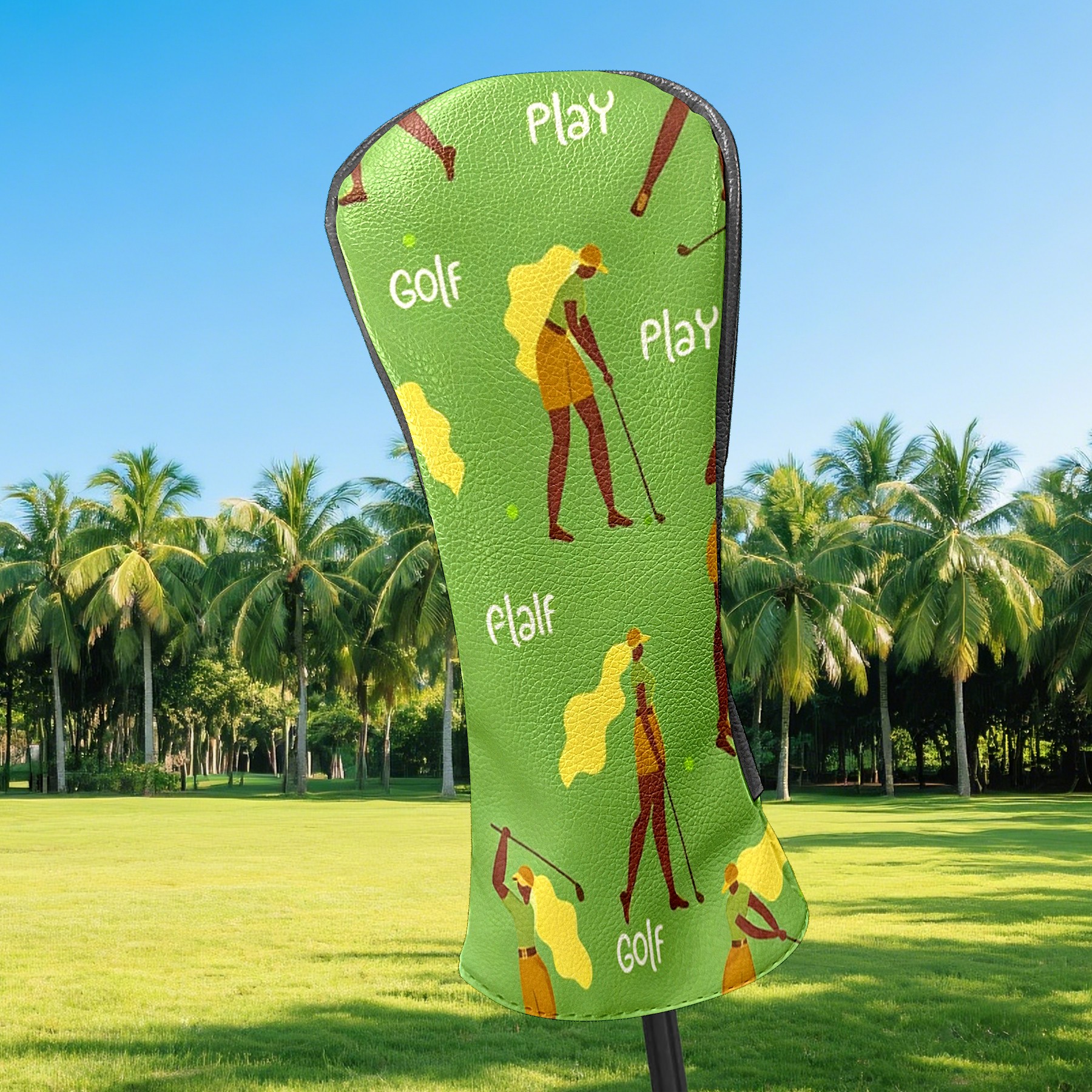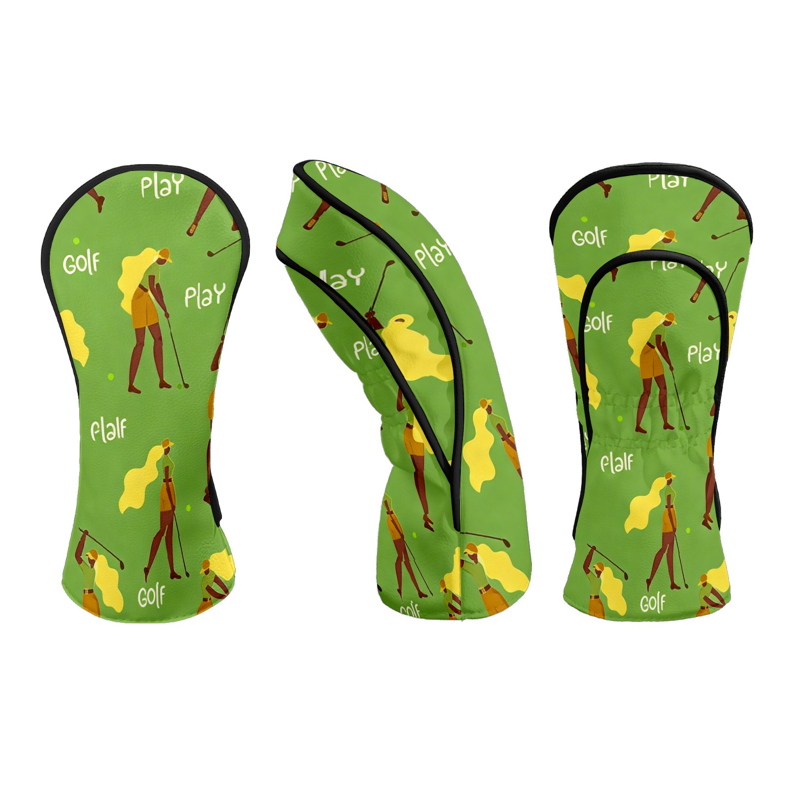 Counullo Golf Club Headcovers - Golf Player Green Premium PU Leather with Plush Lining for Driver & Fairway Woods, No-Slip Fit for All Clubs, Novelty Gift for Men & Women
