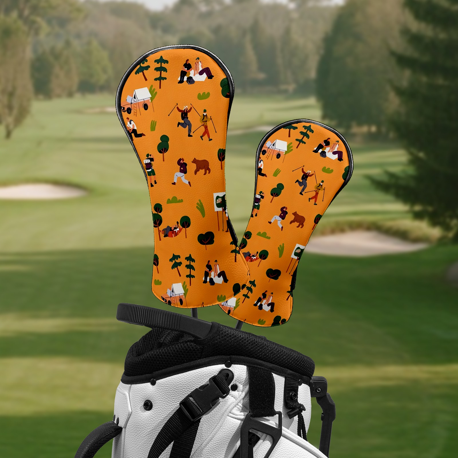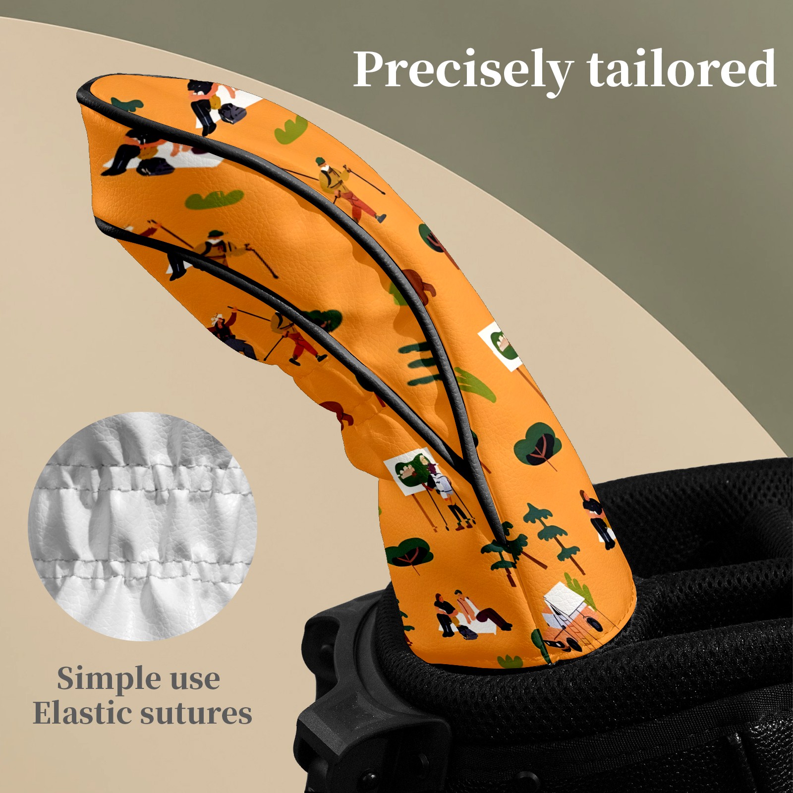 Counullo Golf Club Headcovers - Lively Sport Orange Premium PU Leather with Plush Lining for Driver & Fairway Woods, No-Slip Fit for All Clubs, Novelty Gift for Men & Women
