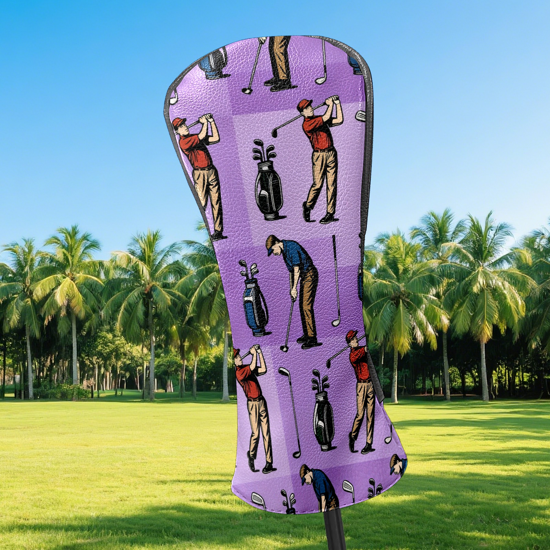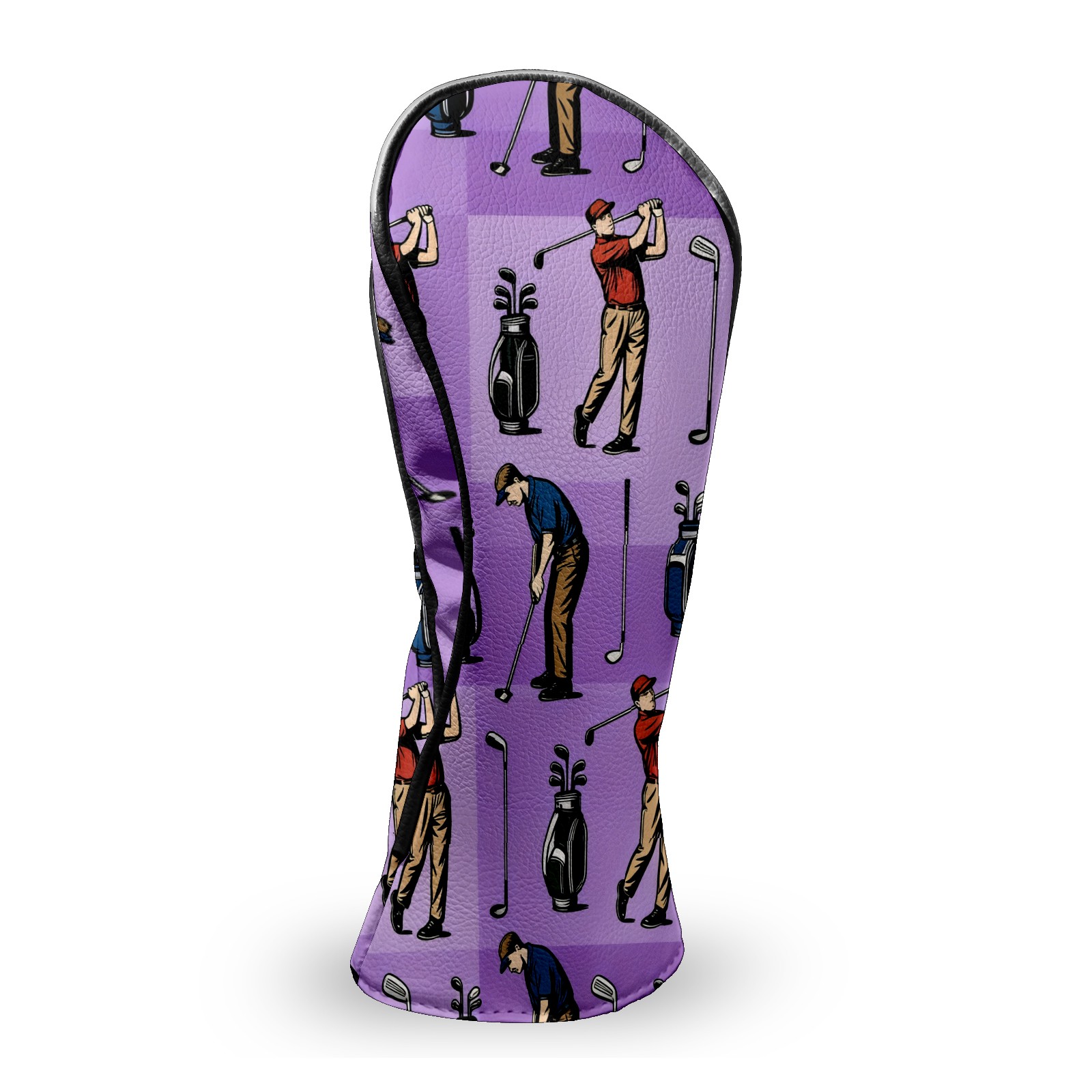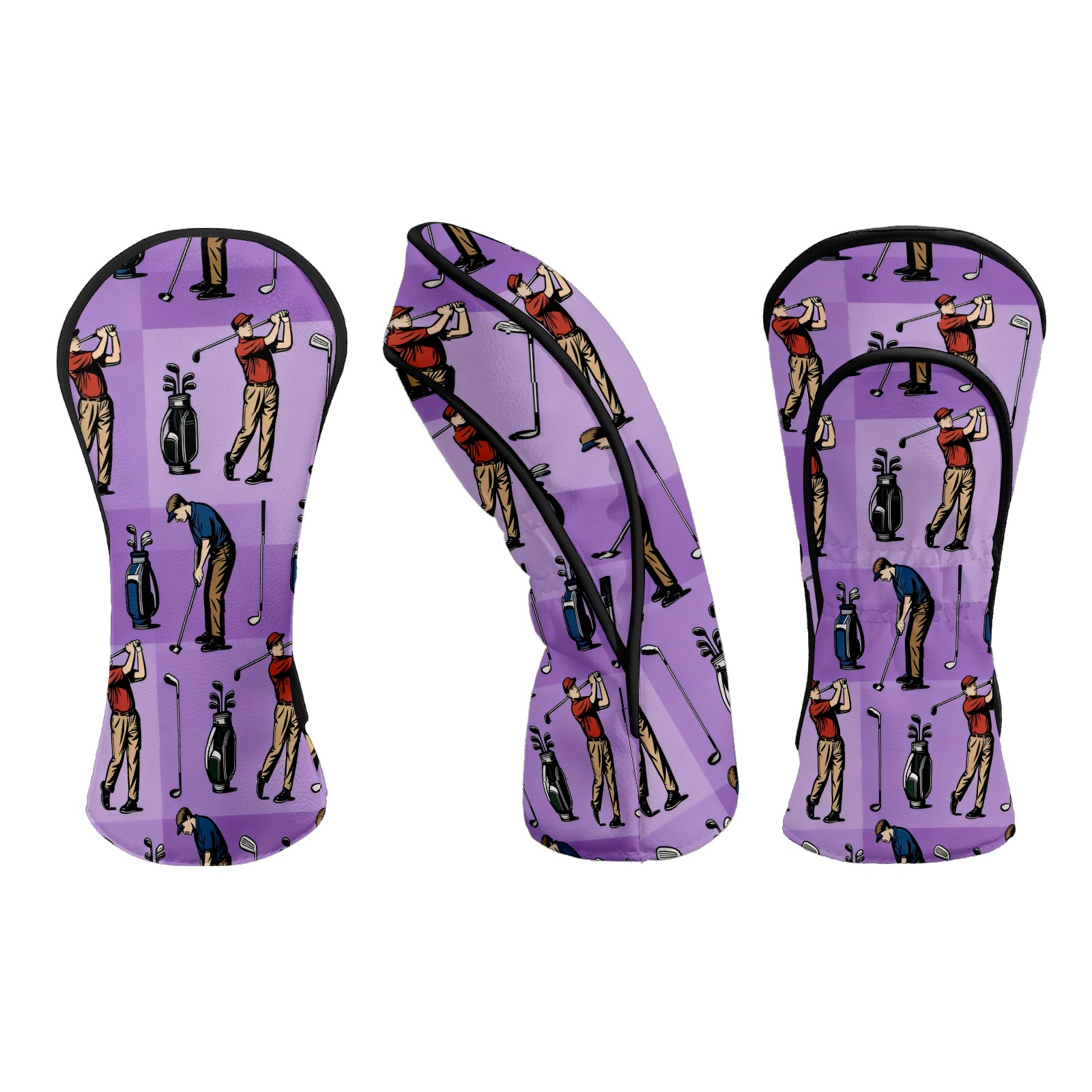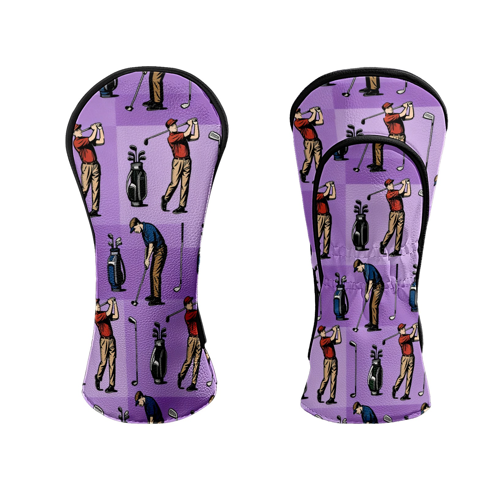 Counullo Golf Club Headcovers - Golf Player Purple Premium PU Leather with Plush Lining for Driver & Fairway Woods, No-Slip Fit for All Clubs, Novelty Gift for Men & Women