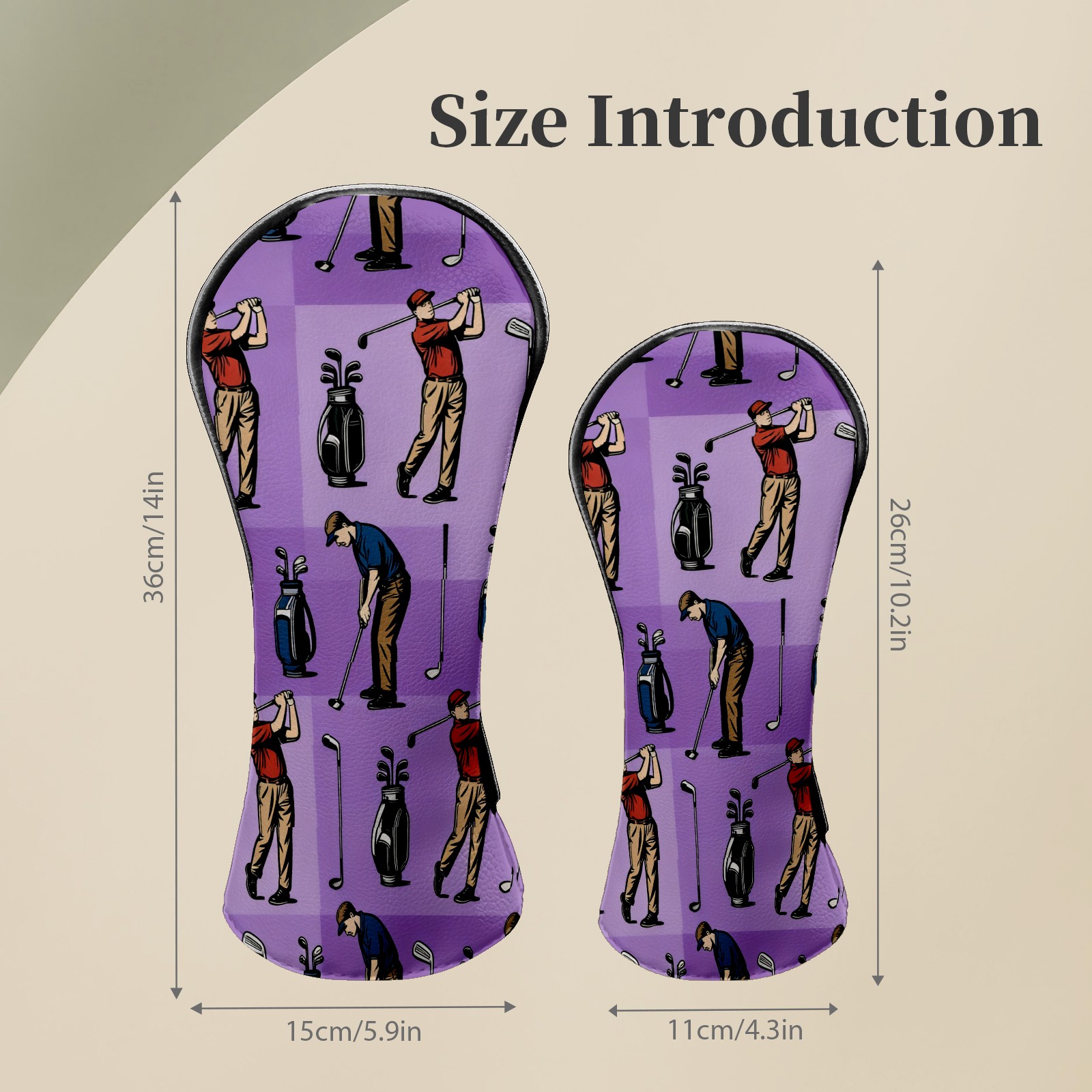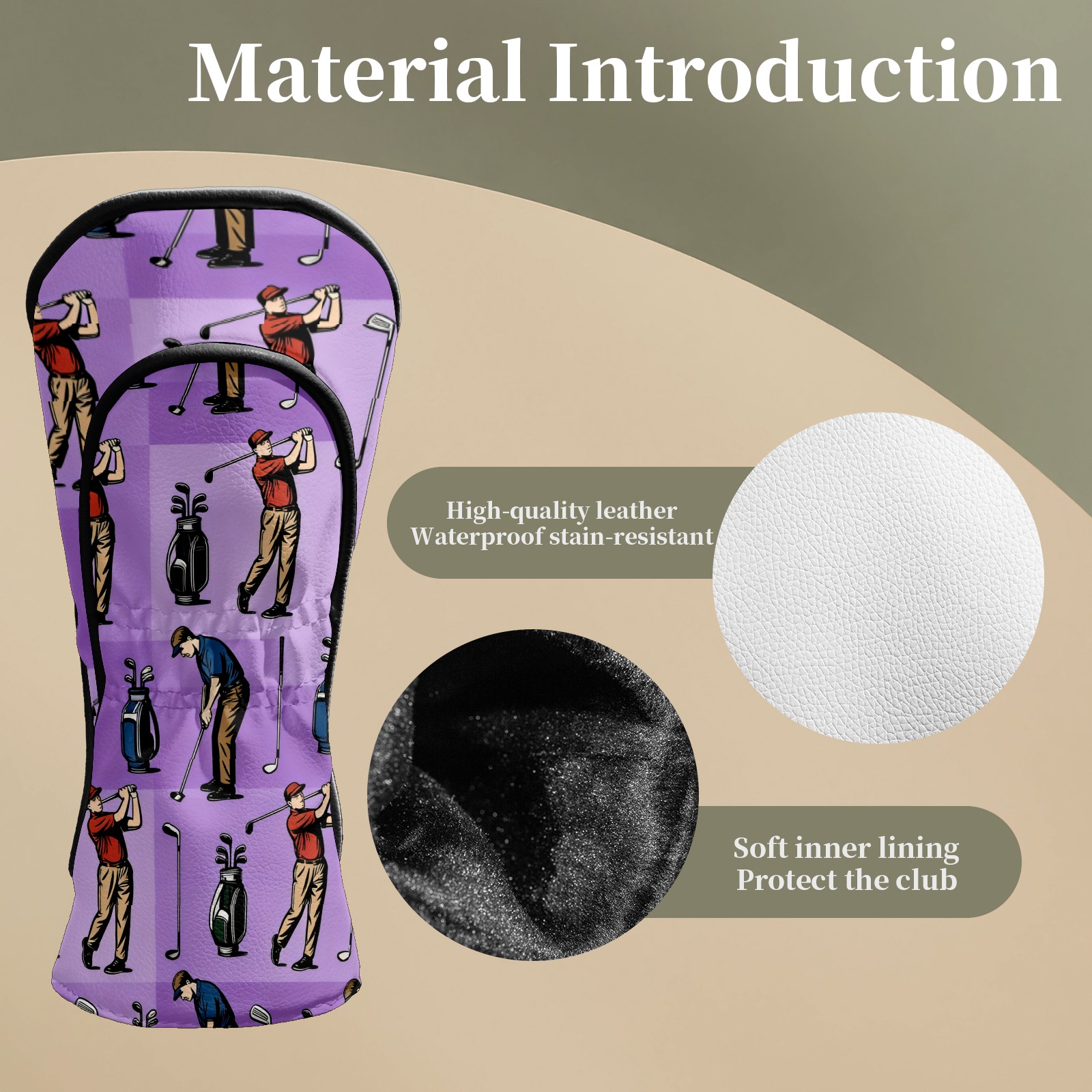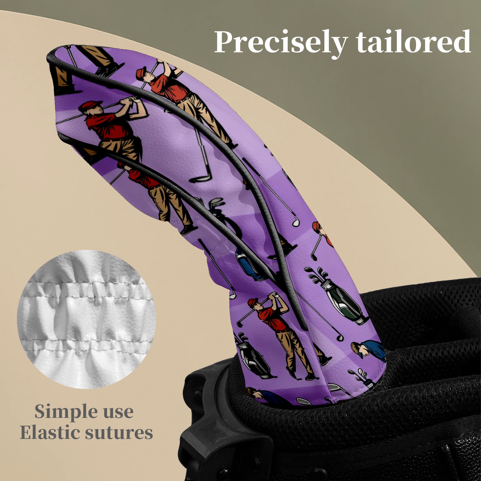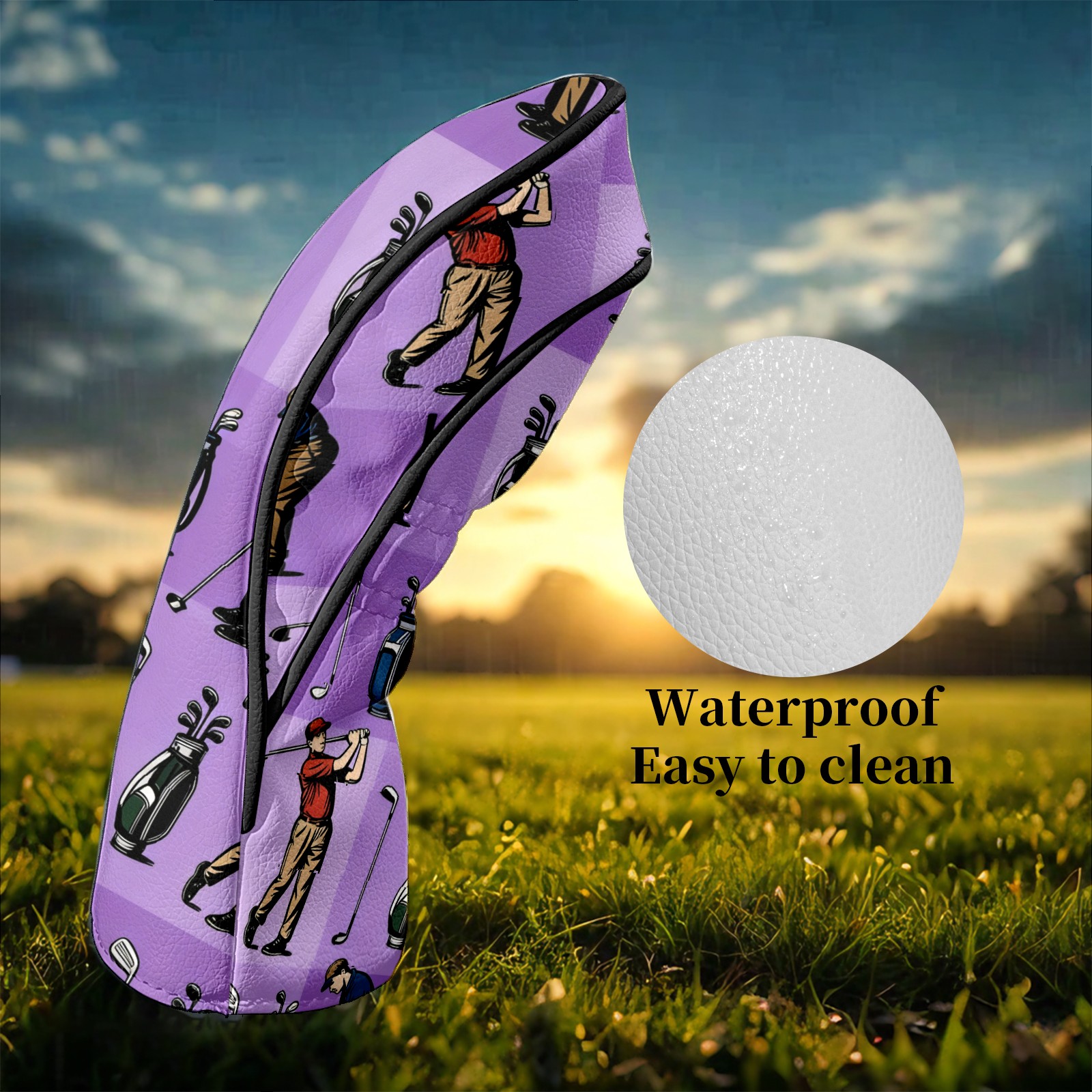 Counullo Golf Club Headcovers - Golf Player Purple Premium PU Leather with Plush Lining for Driver & Fairway Woods, No-Slip Fit for All Clubs, Novelty Gift for Men & Women