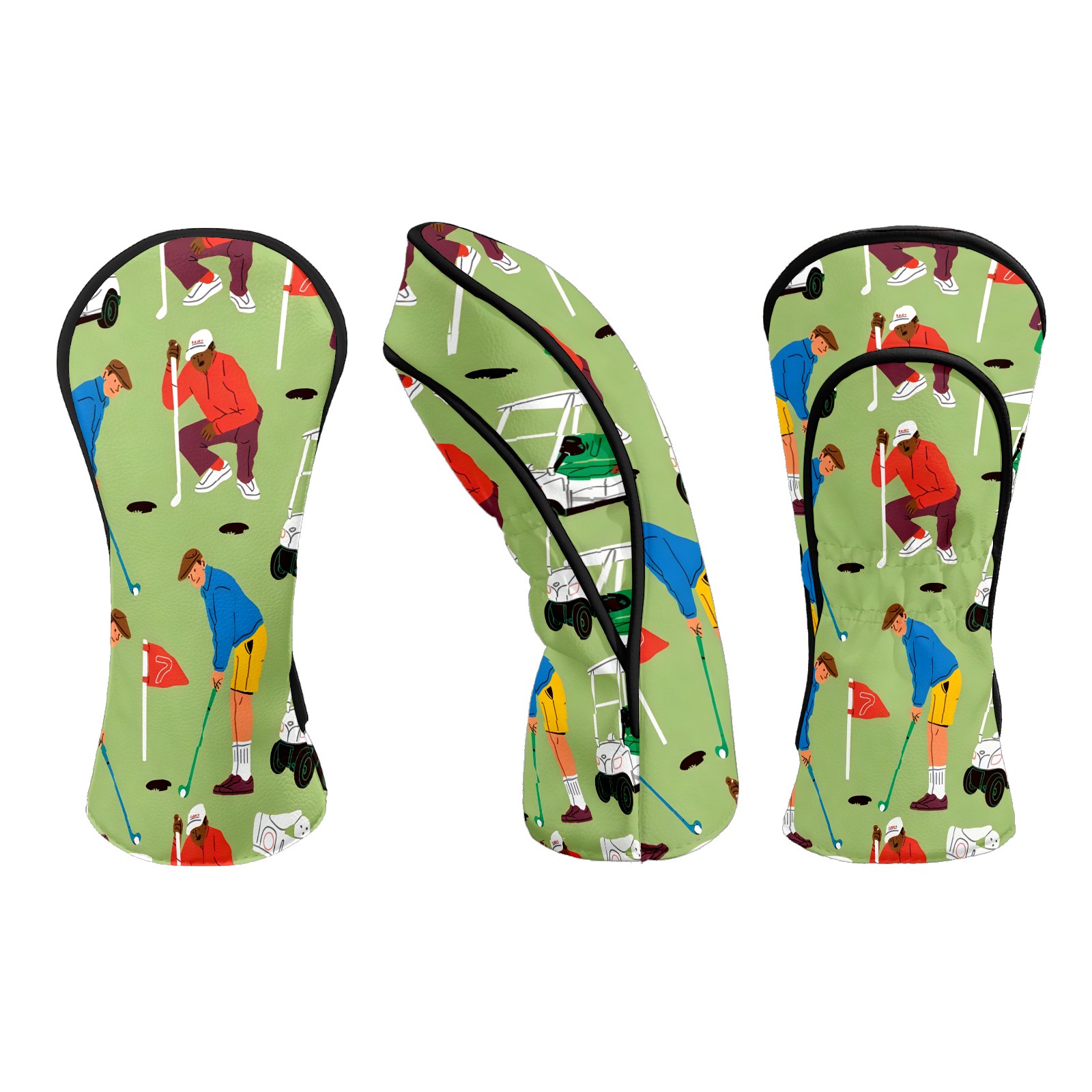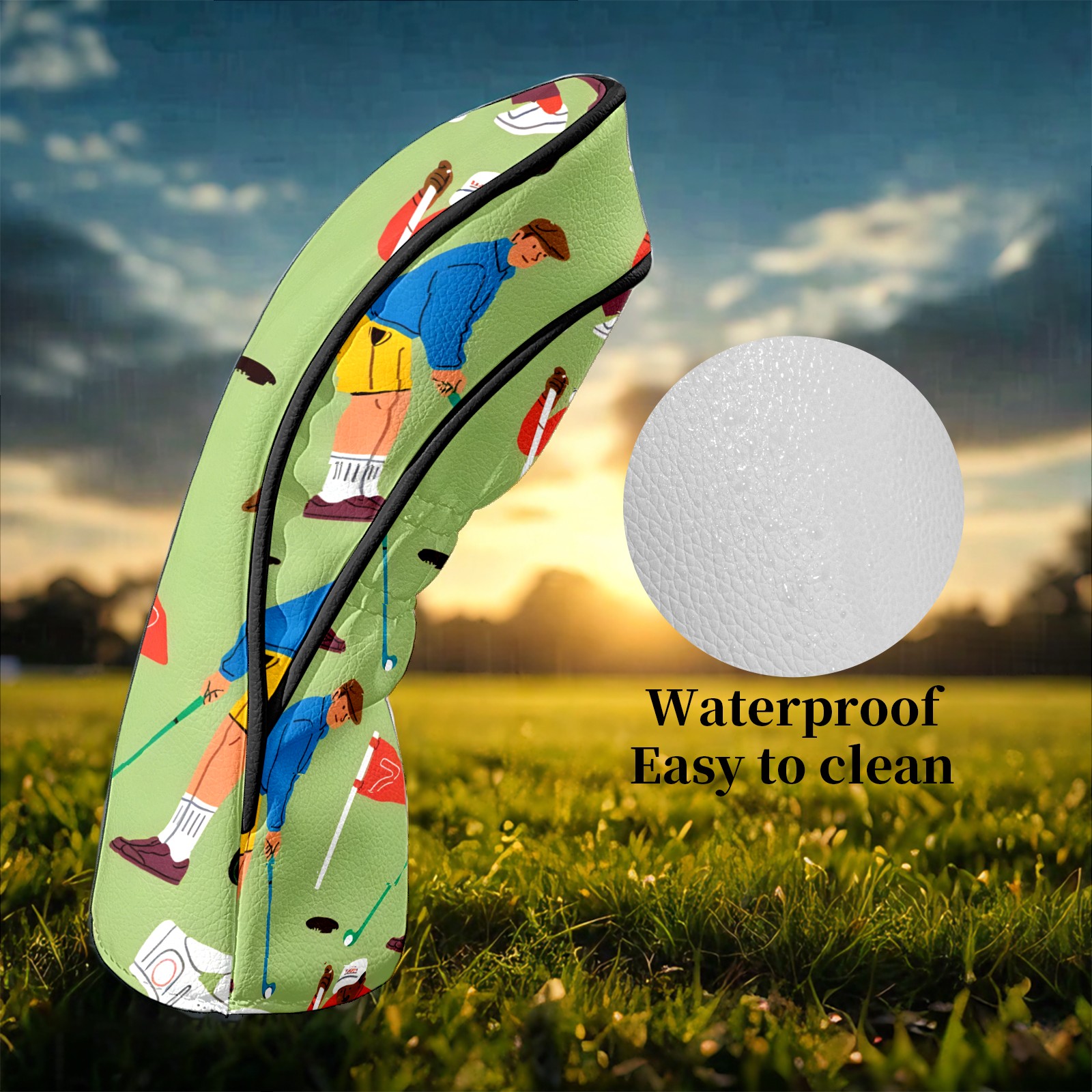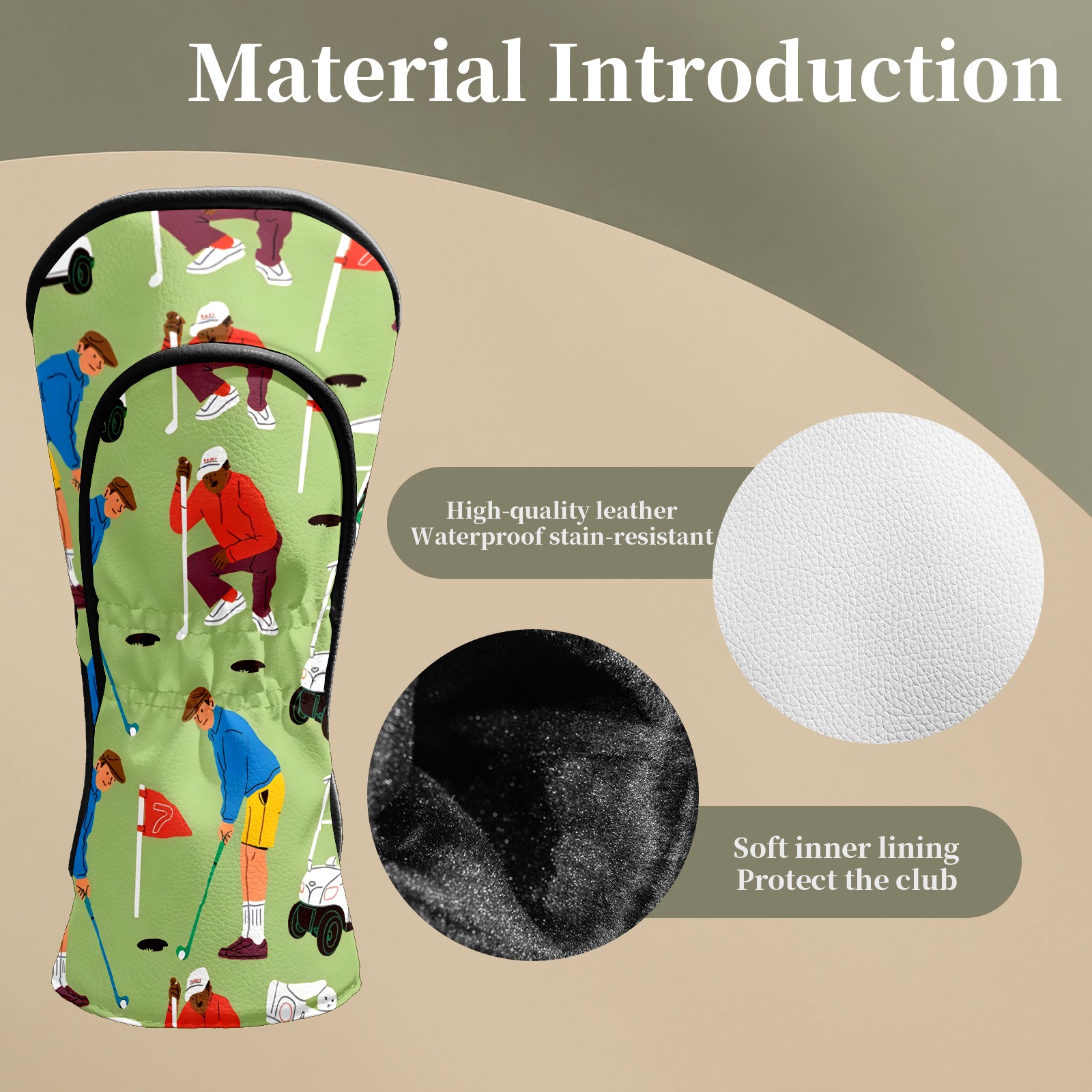 Counullo Golf Club Headcovers - Golf Element Green Premium PU Leather with Plush Lining for Driver & Fairway Woods, No-Slip Fit for All Clubs, Novelty Gift for Men & Women