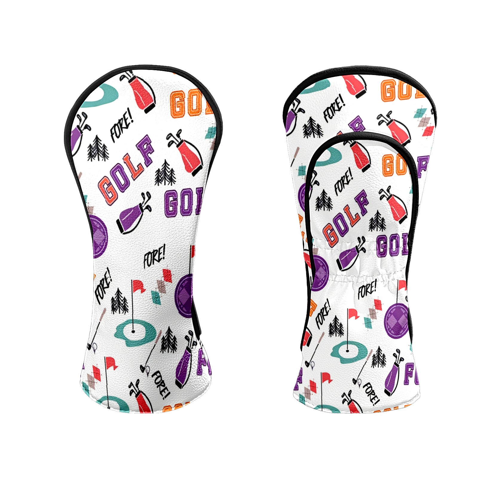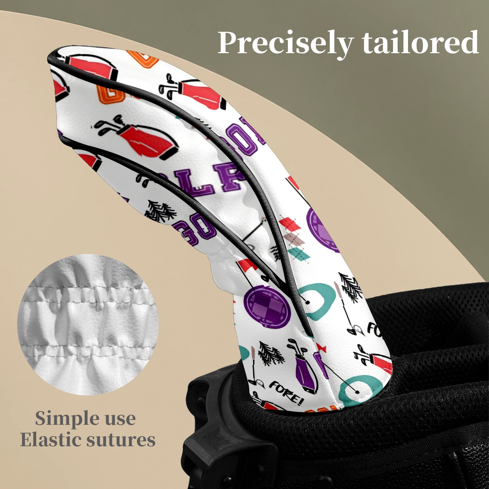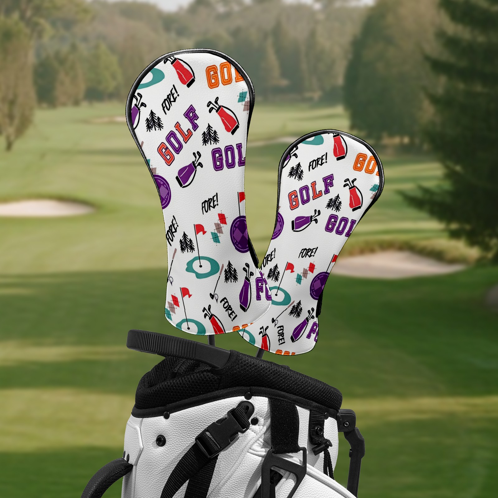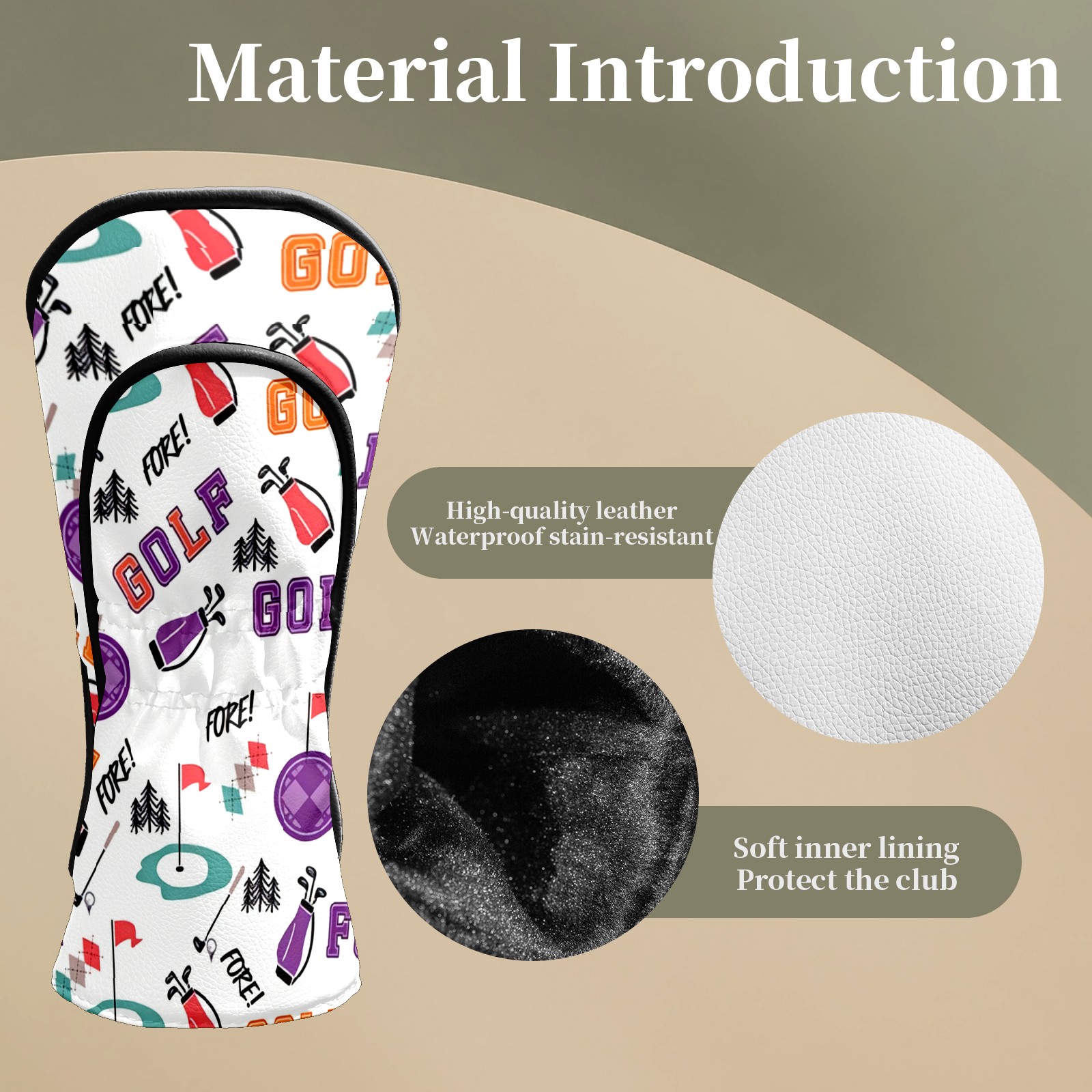 Counullo Golf Club Headcovers - Golf Text Multi Premium PU Leather with Plush Lining for Driver & Fairway Woods, No-Slip Fit for All Clubs, Novelty Gift for Men & Women