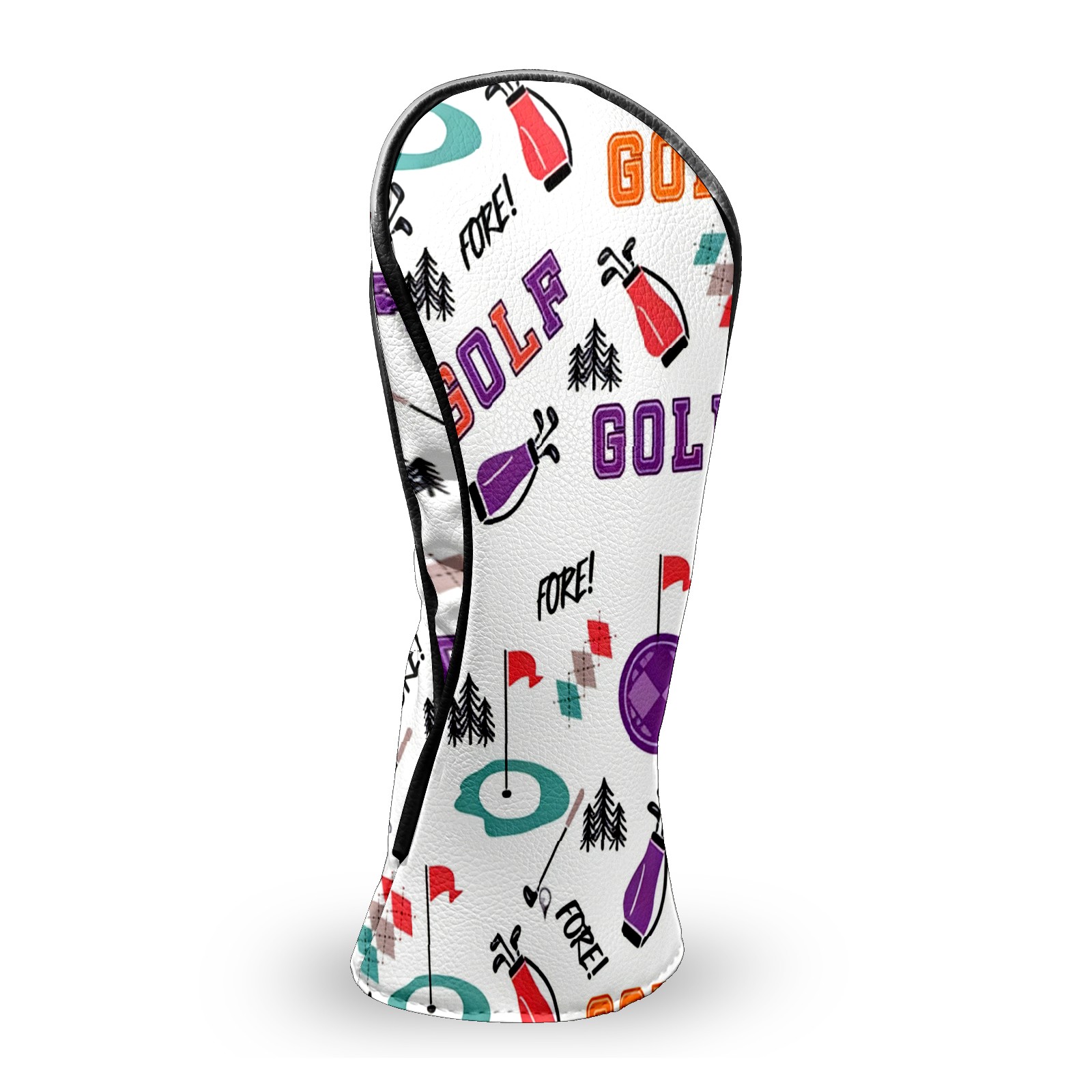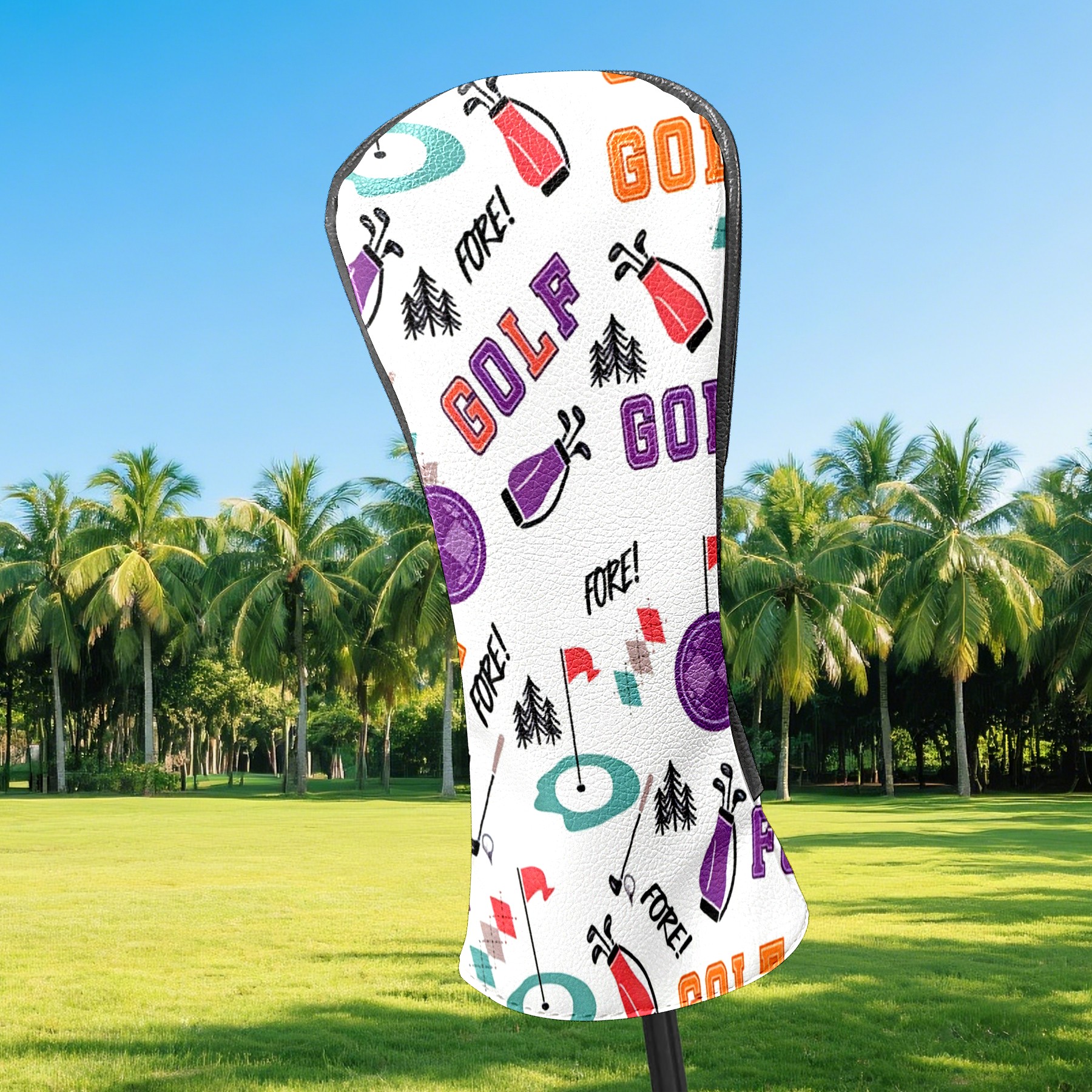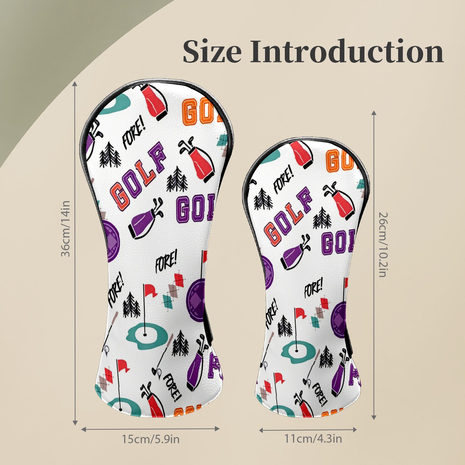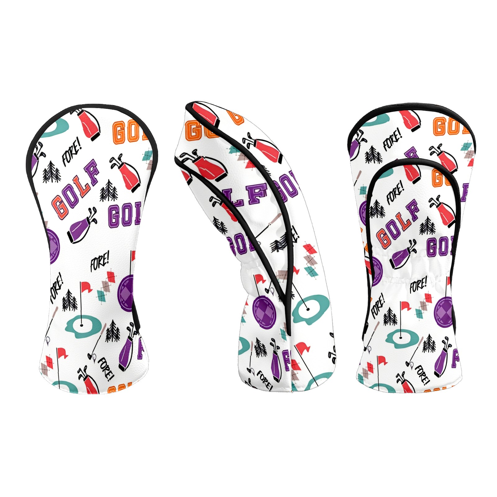 Counullo Golf Club Headcovers - Golf Text Multi Premium PU Leather with Plush Lining for Driver & Fairway Woods, No-Slip Fit for All Clubs, Novelty Gift for Men & Women