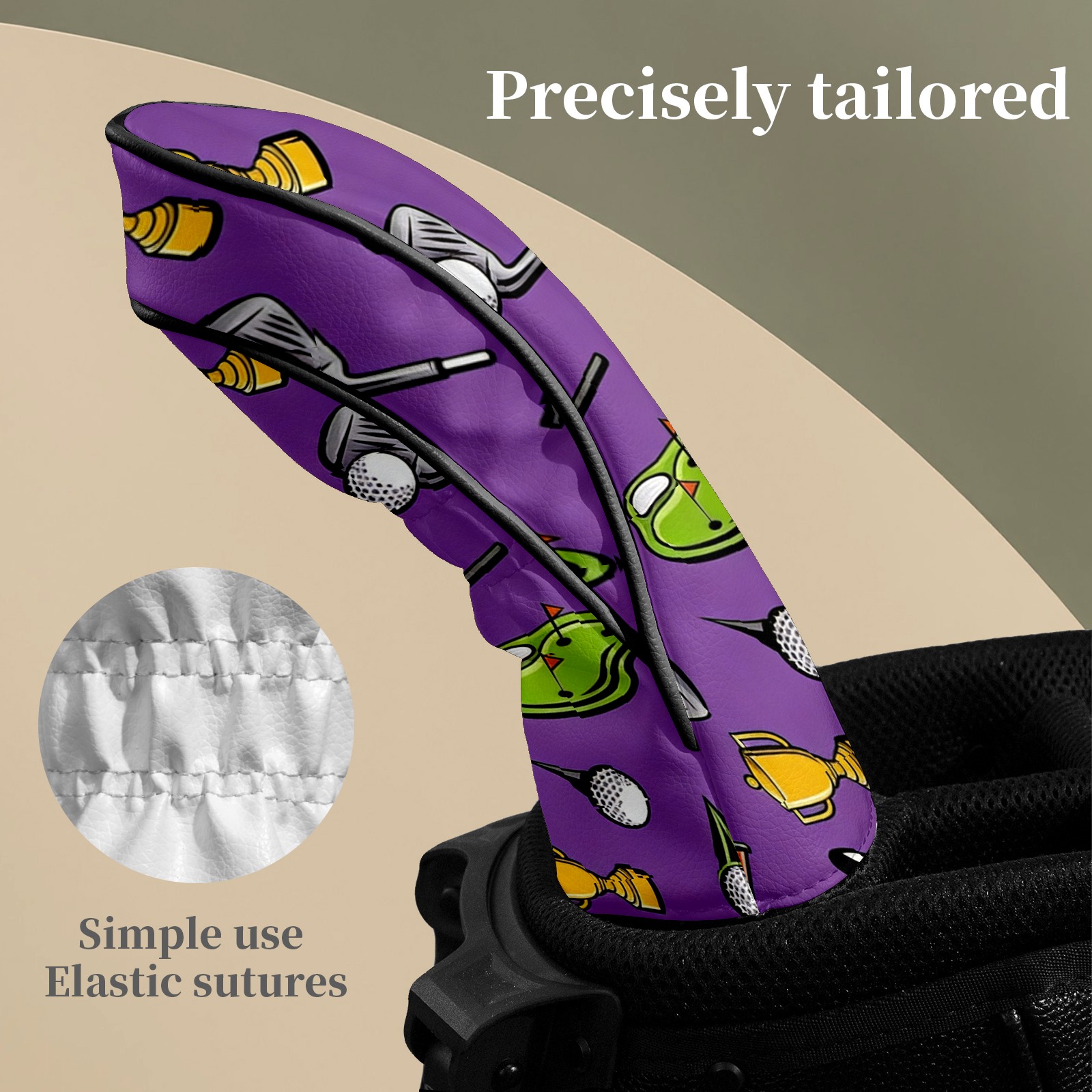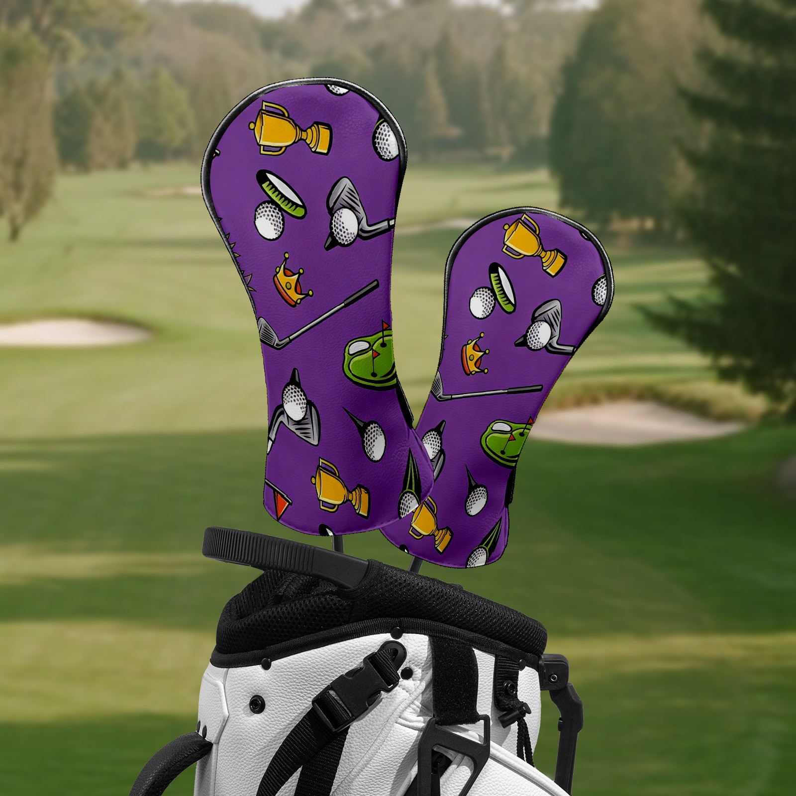 Counullo Golf Club Headcovers - Mysterious Golf Purple Premium PU Leather with Plush Lining for Driver & Fairway Woods, No-Slip Fit for All Clubs, Novelty Gift for Men & Women