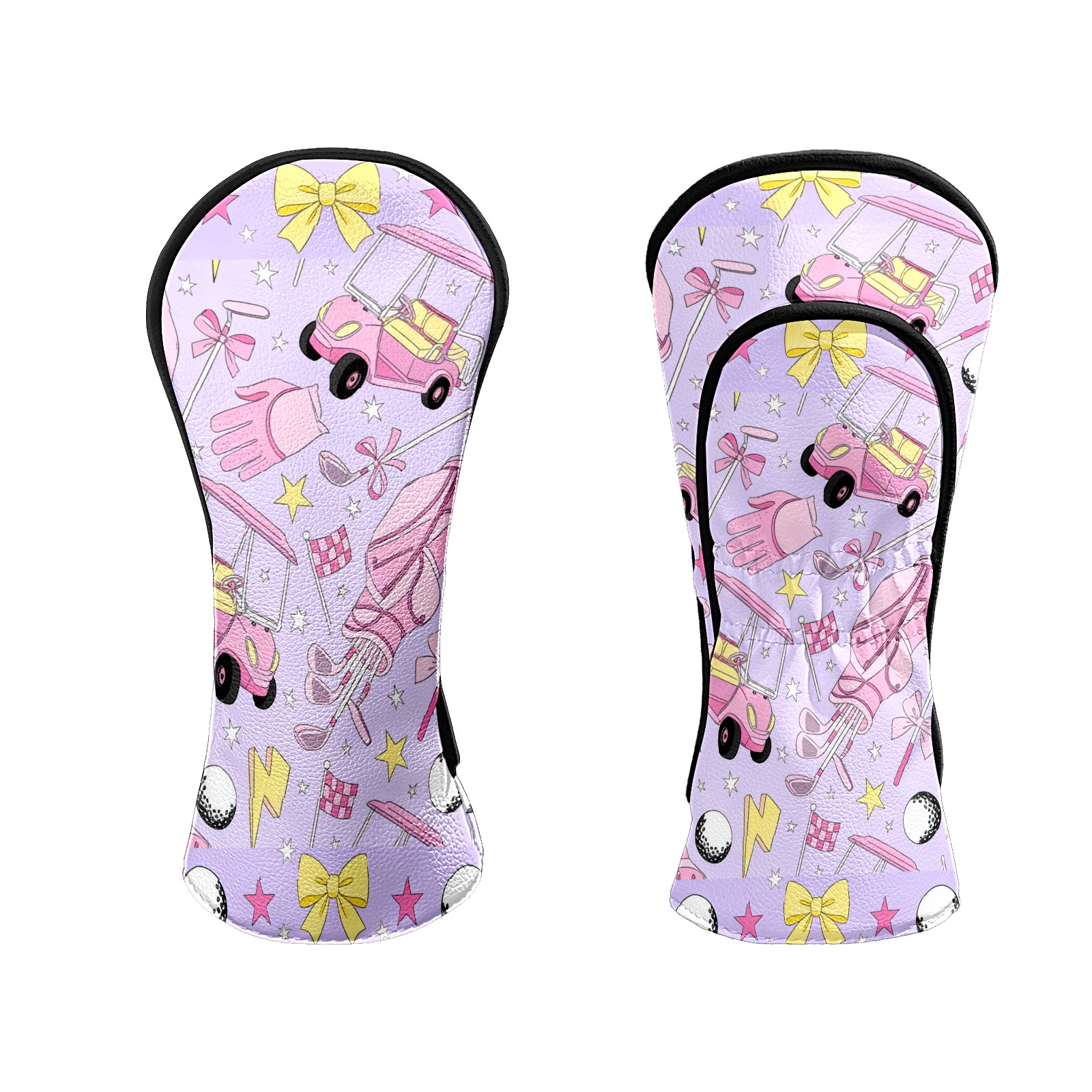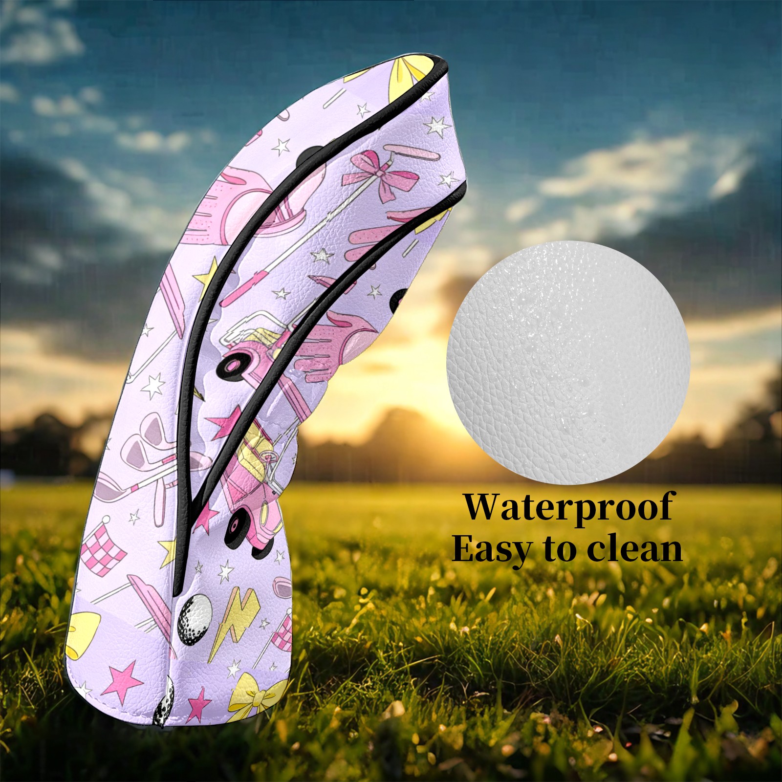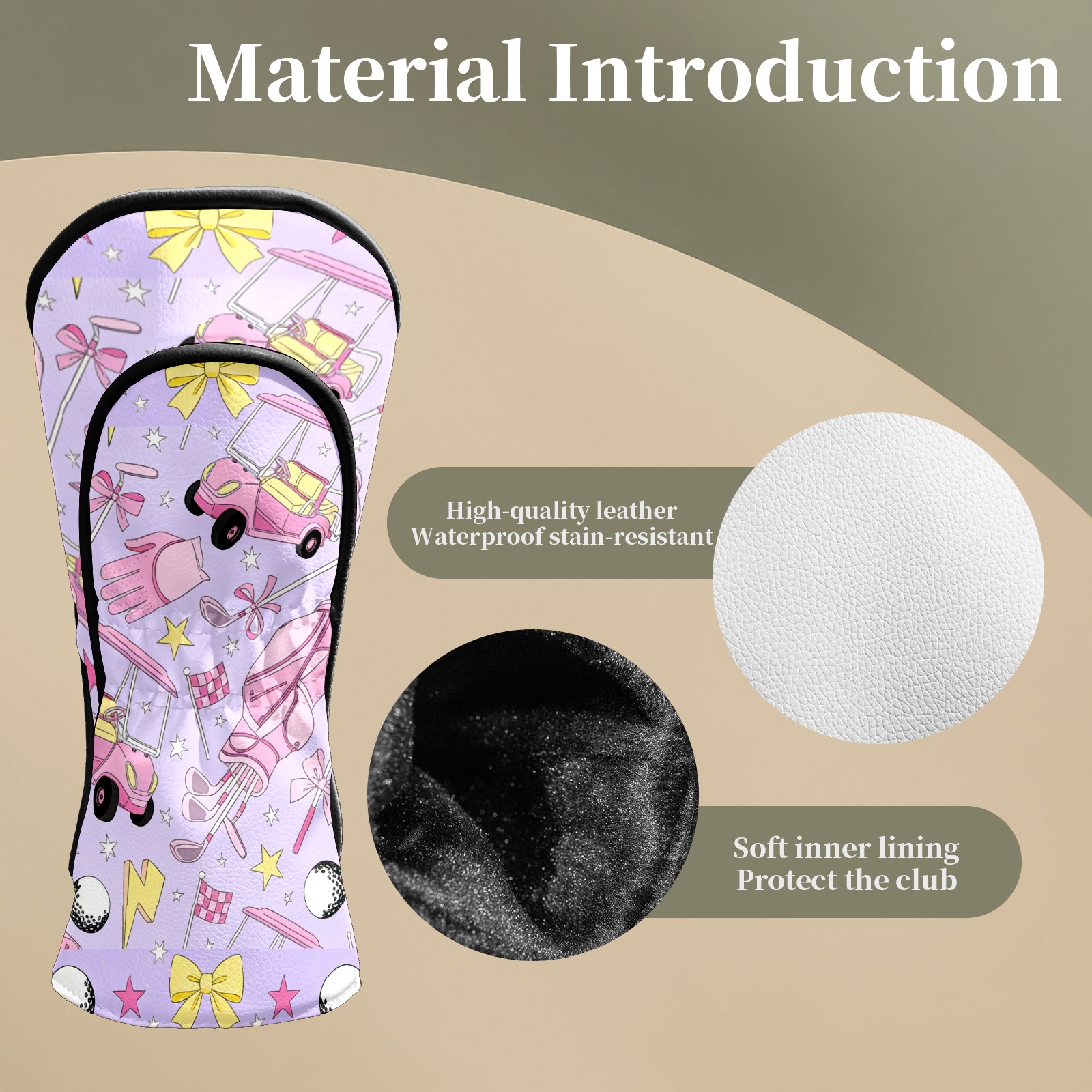 Counullo Golf Club Headcovers - Sweet Golf Pink Premium PU Leather with Plush Lining for Driver & Fairway Woods, No-Slip Fit for All Clubs, Novelty Gift for Men & Women
