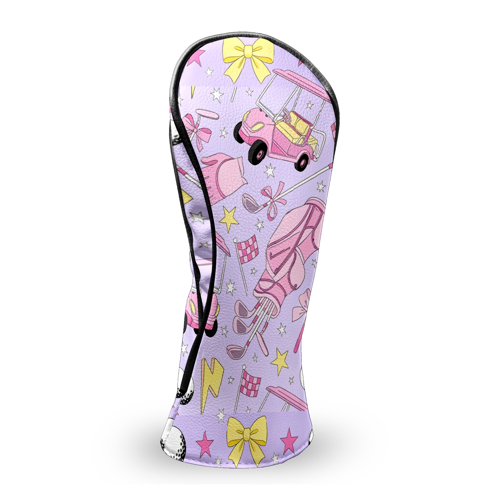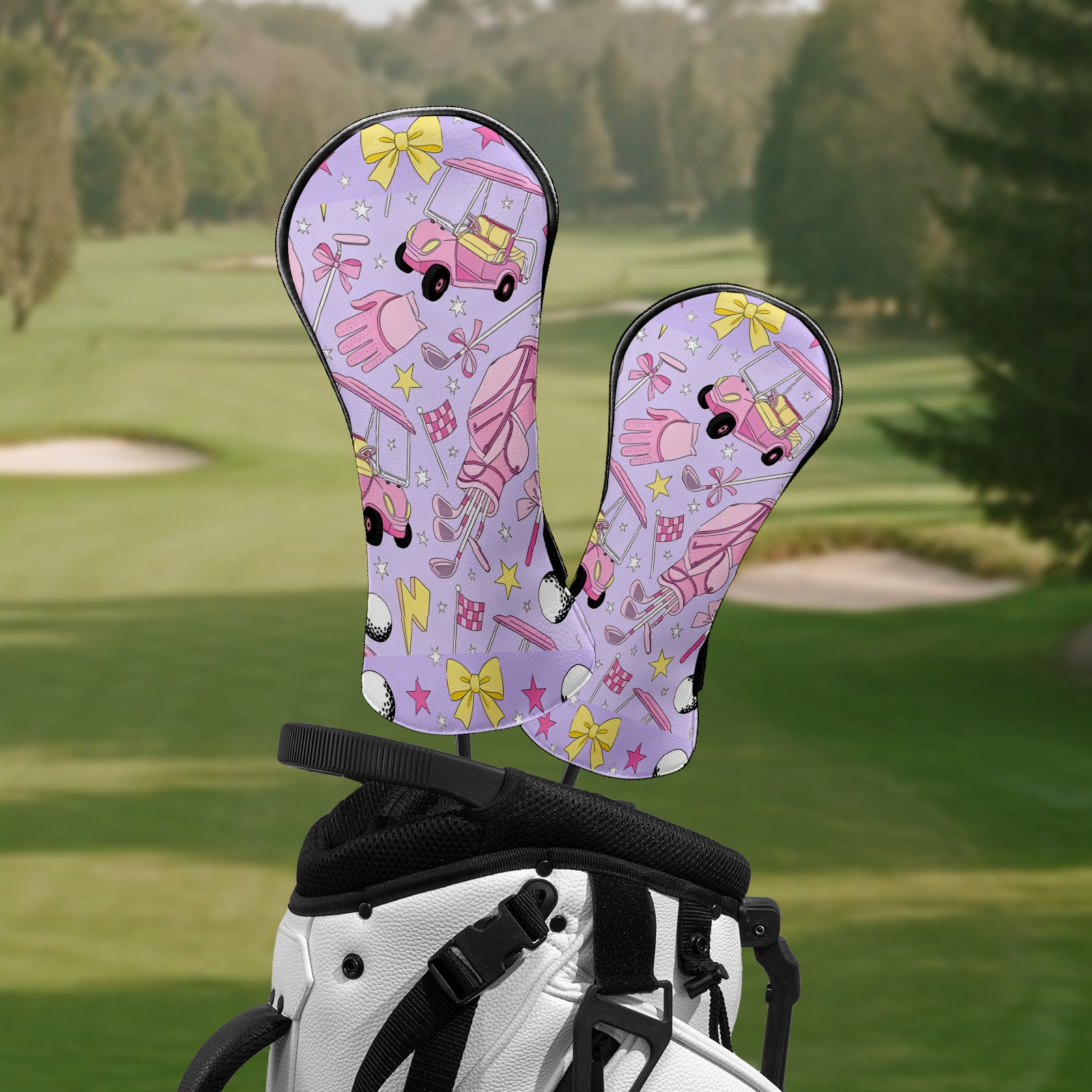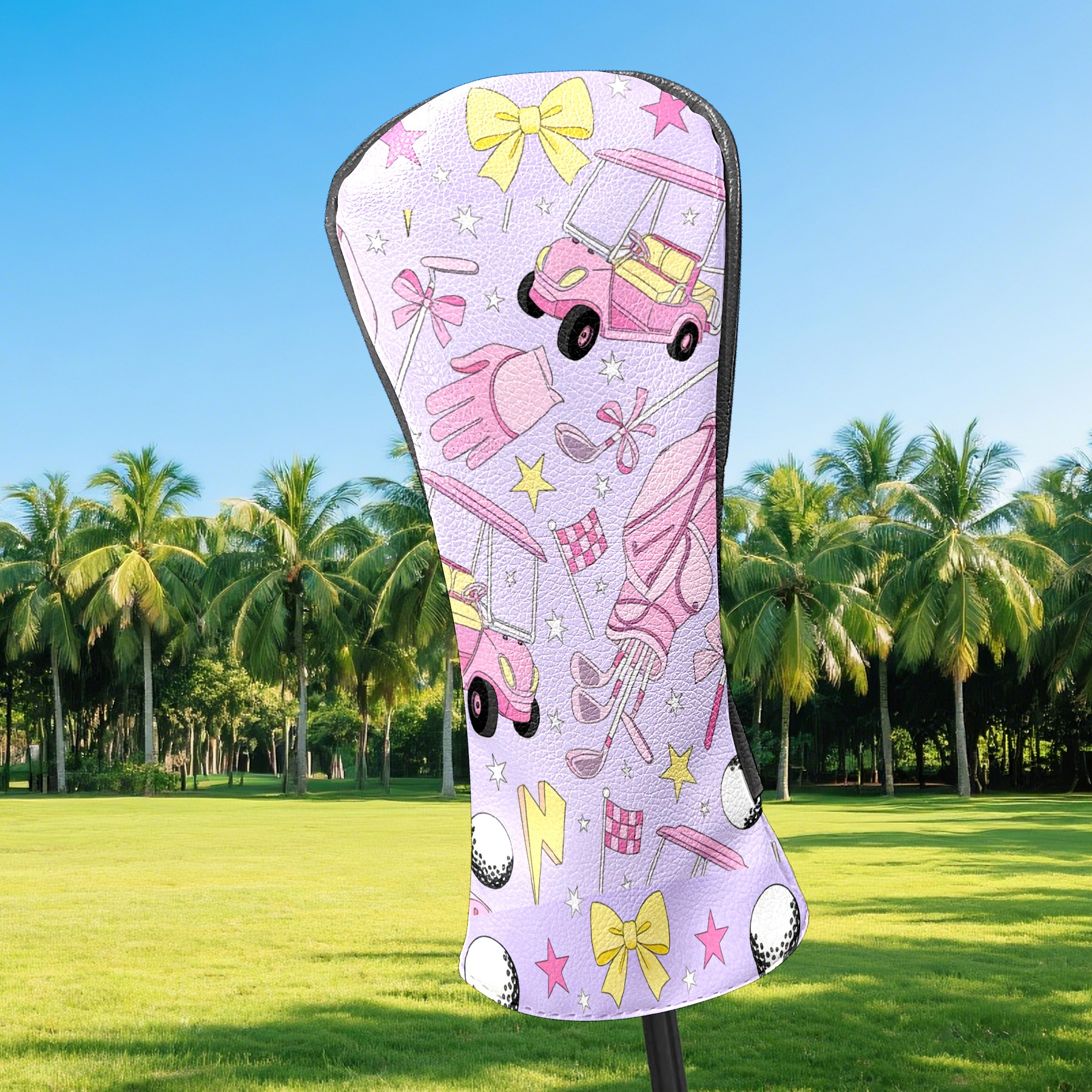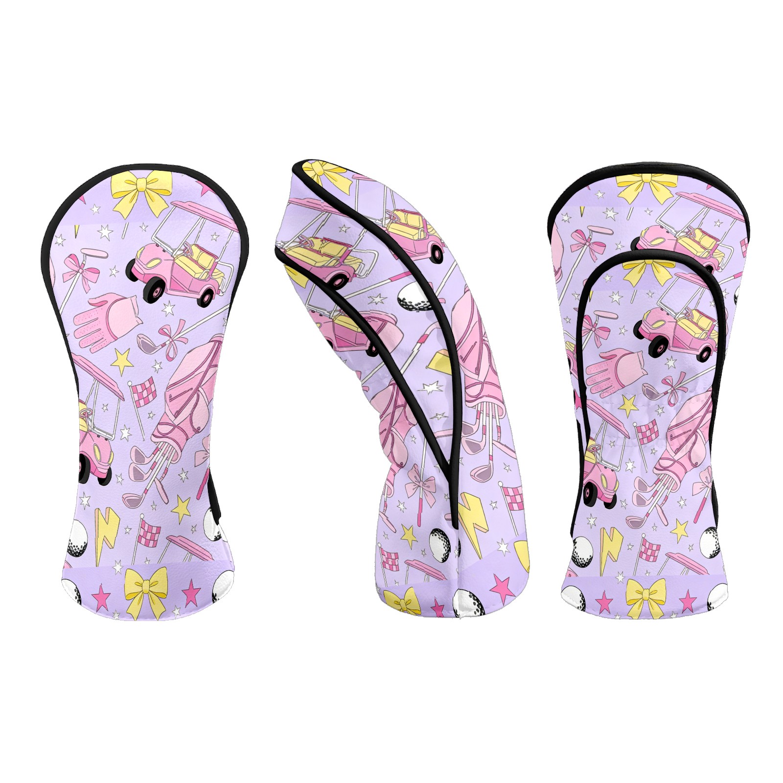 Counullo Golf Club Headcovers - Sweet Golf Pink Premium PU Leather with Plush Lining for Driver & Fairway Woods, No-Slip Fit for All Clubs, Novelty Gift for Men & Women