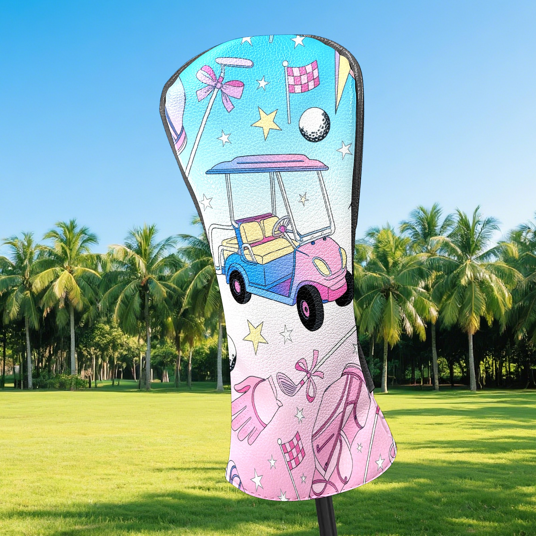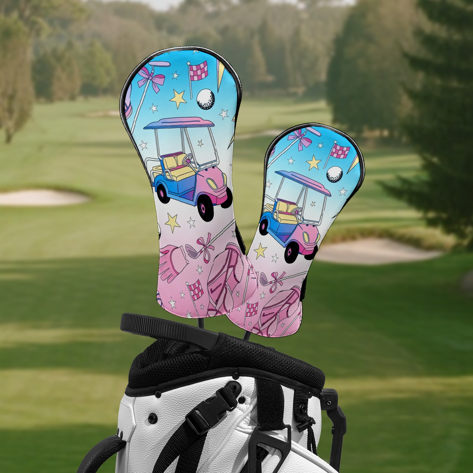 Counullo Golf Club Headcovers - Romantic Golf Pink Premium PU Leather with Plush Lining for Driver & Fairway Woods, No-Slip Fit for All Clubs, Novelty Gift for Men & Women