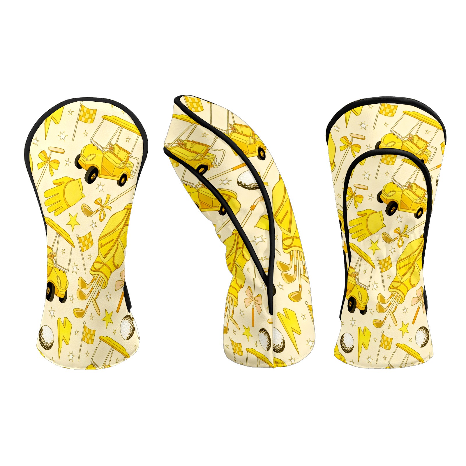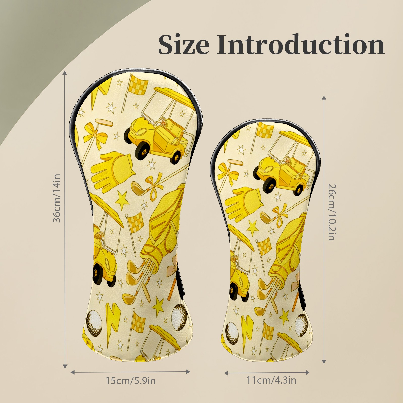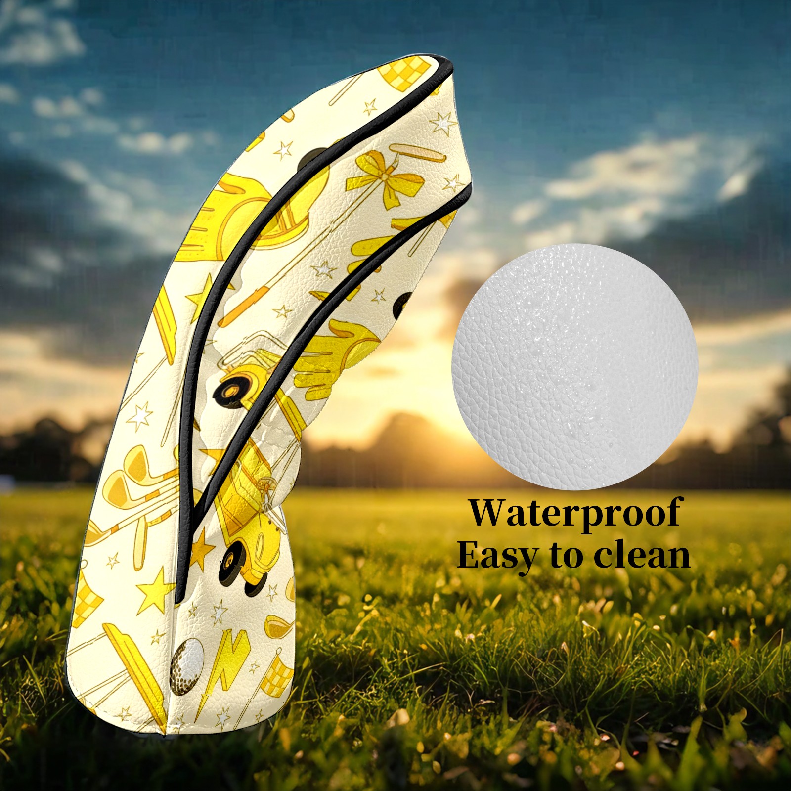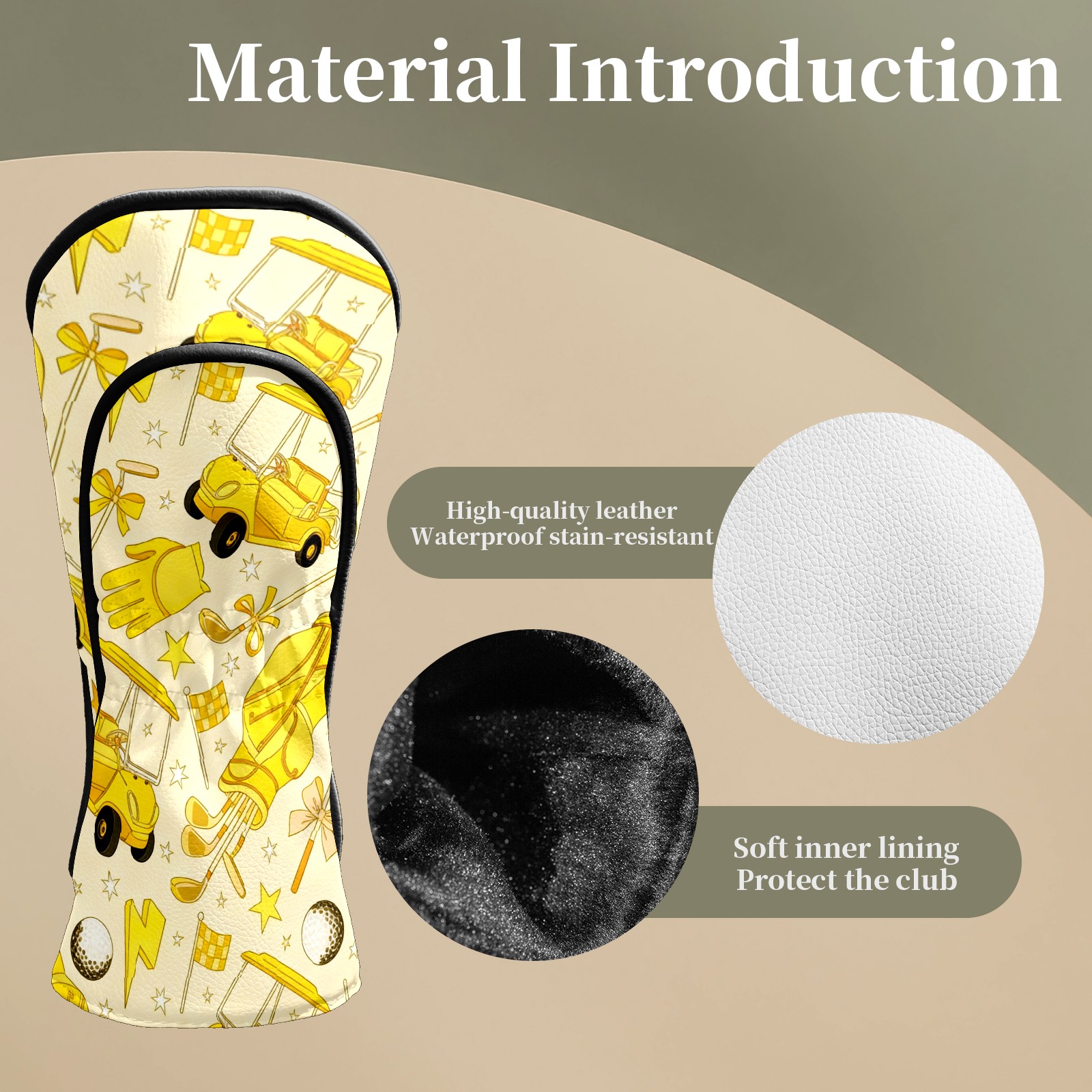 Counullo Golf Club Headcovers - Warm Golf Yellow Premium PU Leather with Plush Lining for Driver & Fairway Woods, No-Slip Fit for All Clubs, Novelty Gift for Men & Women