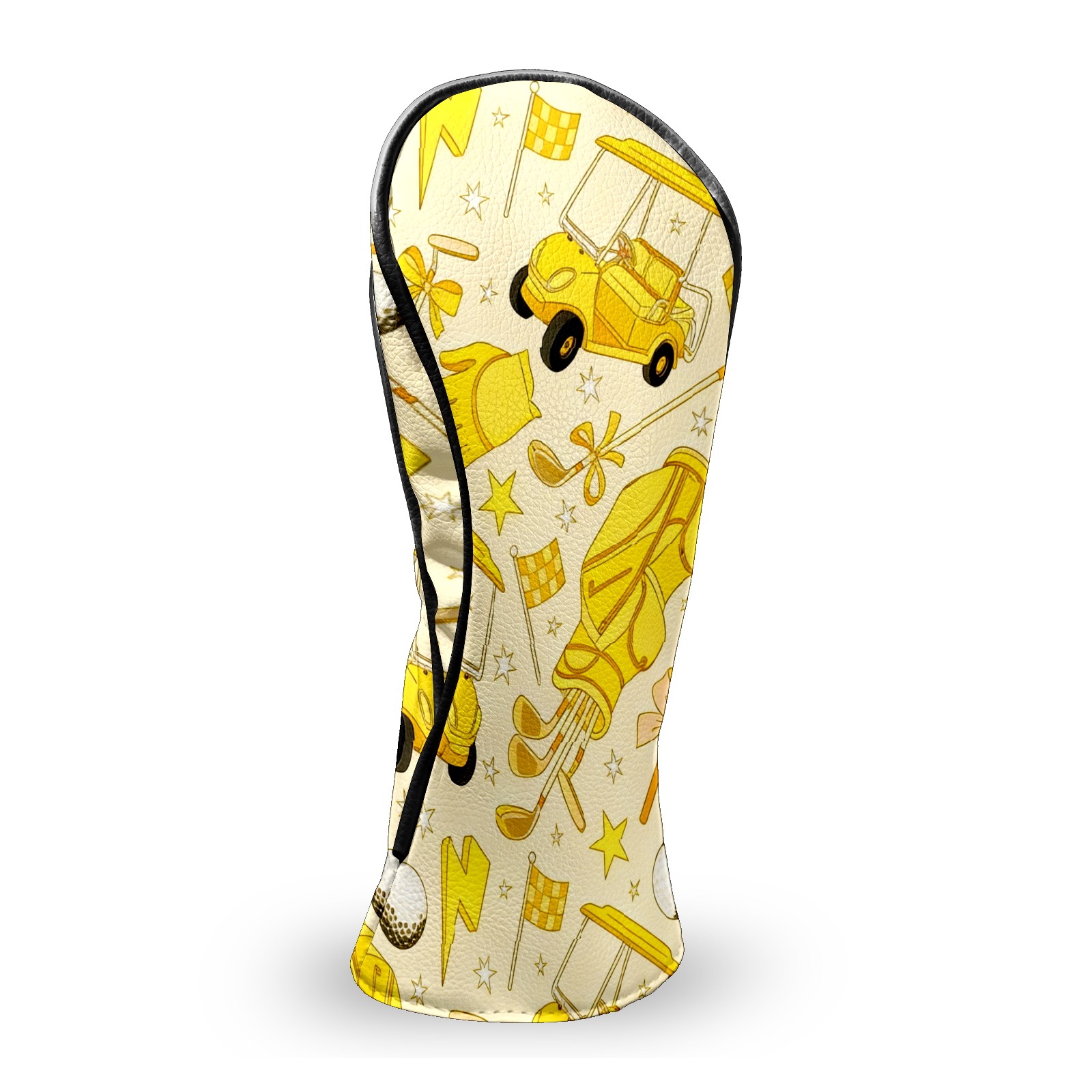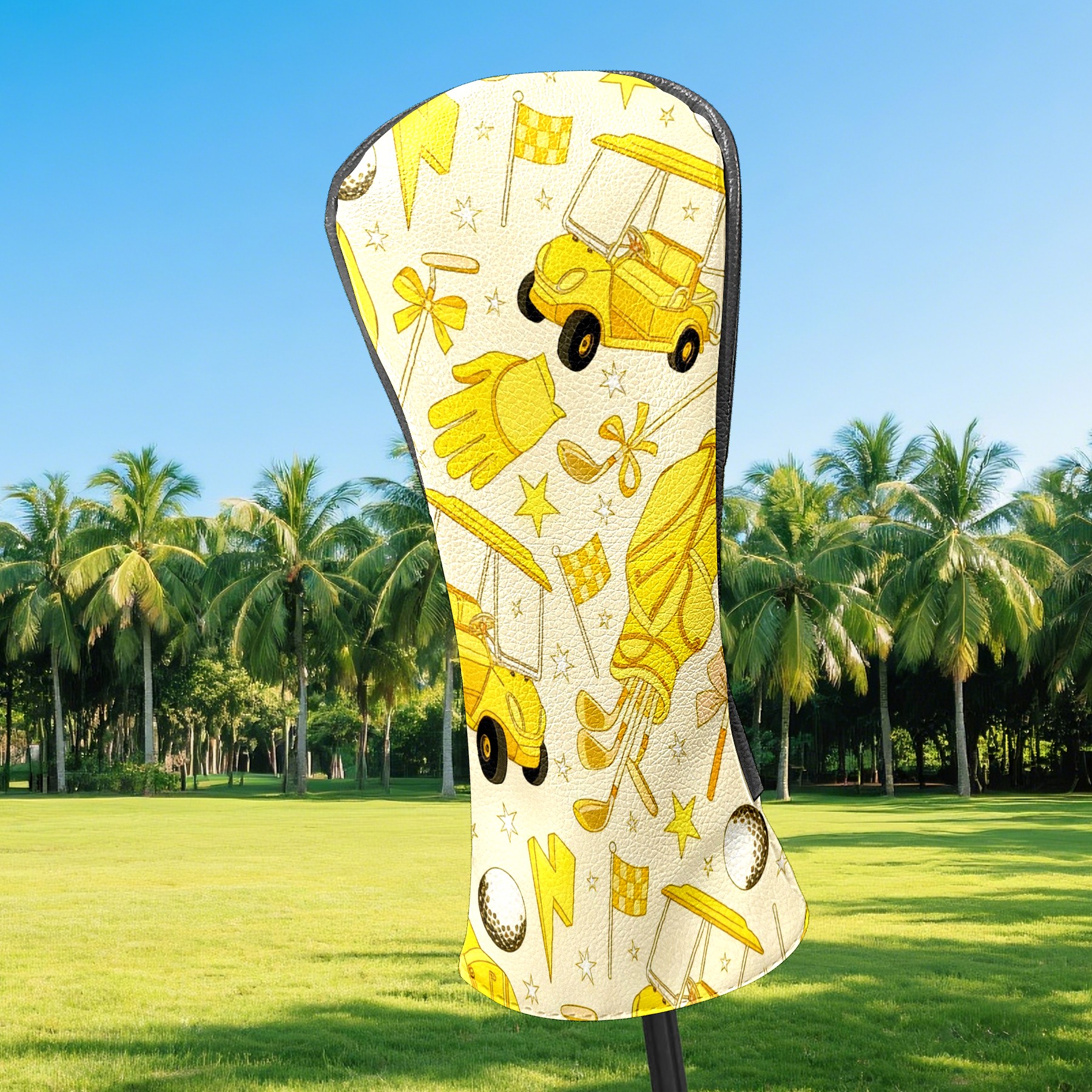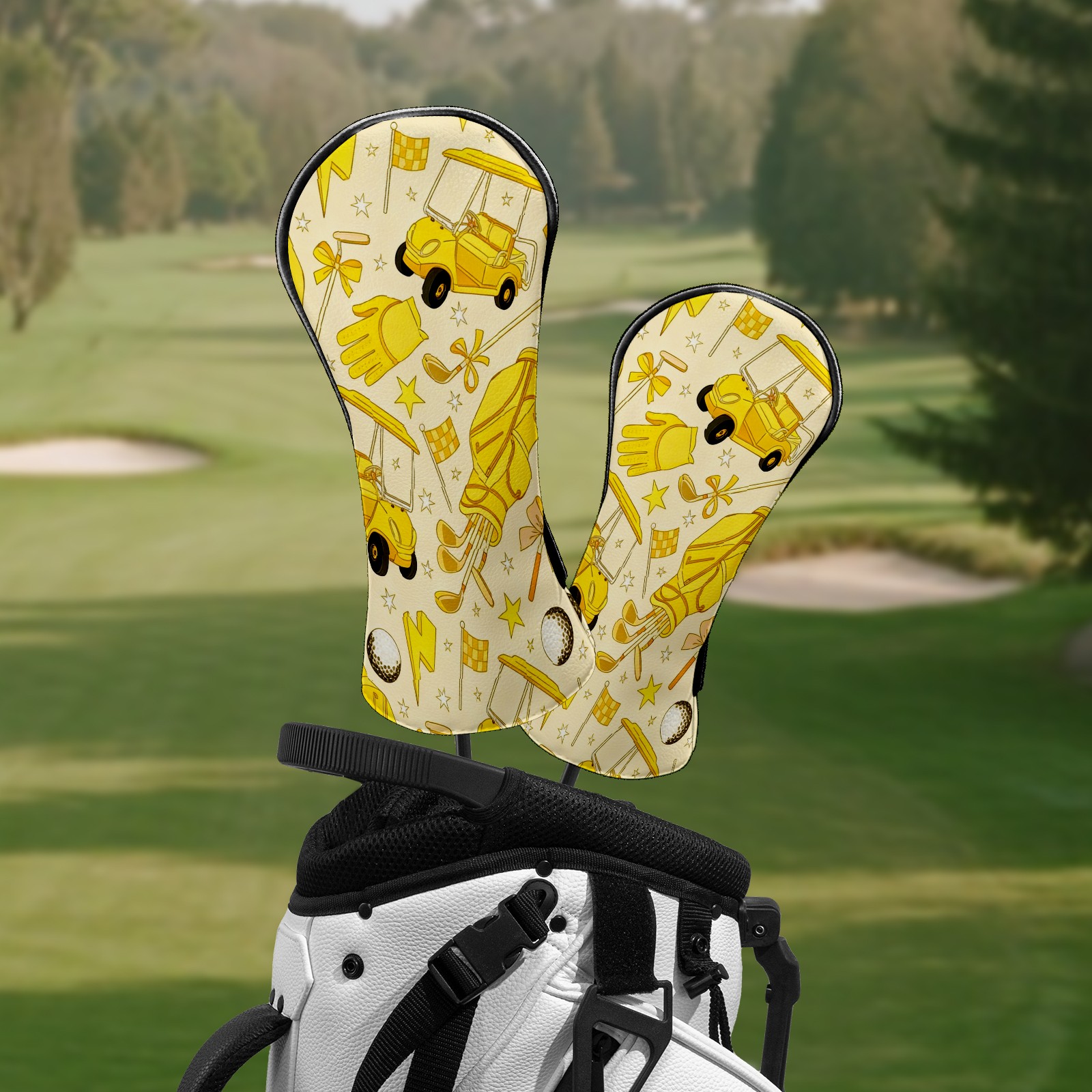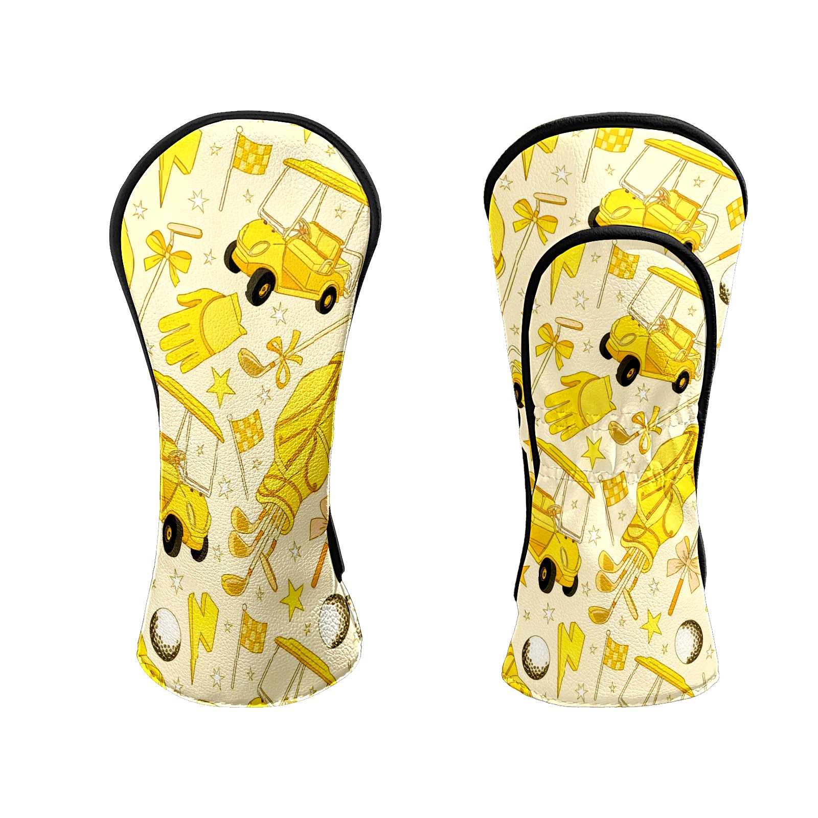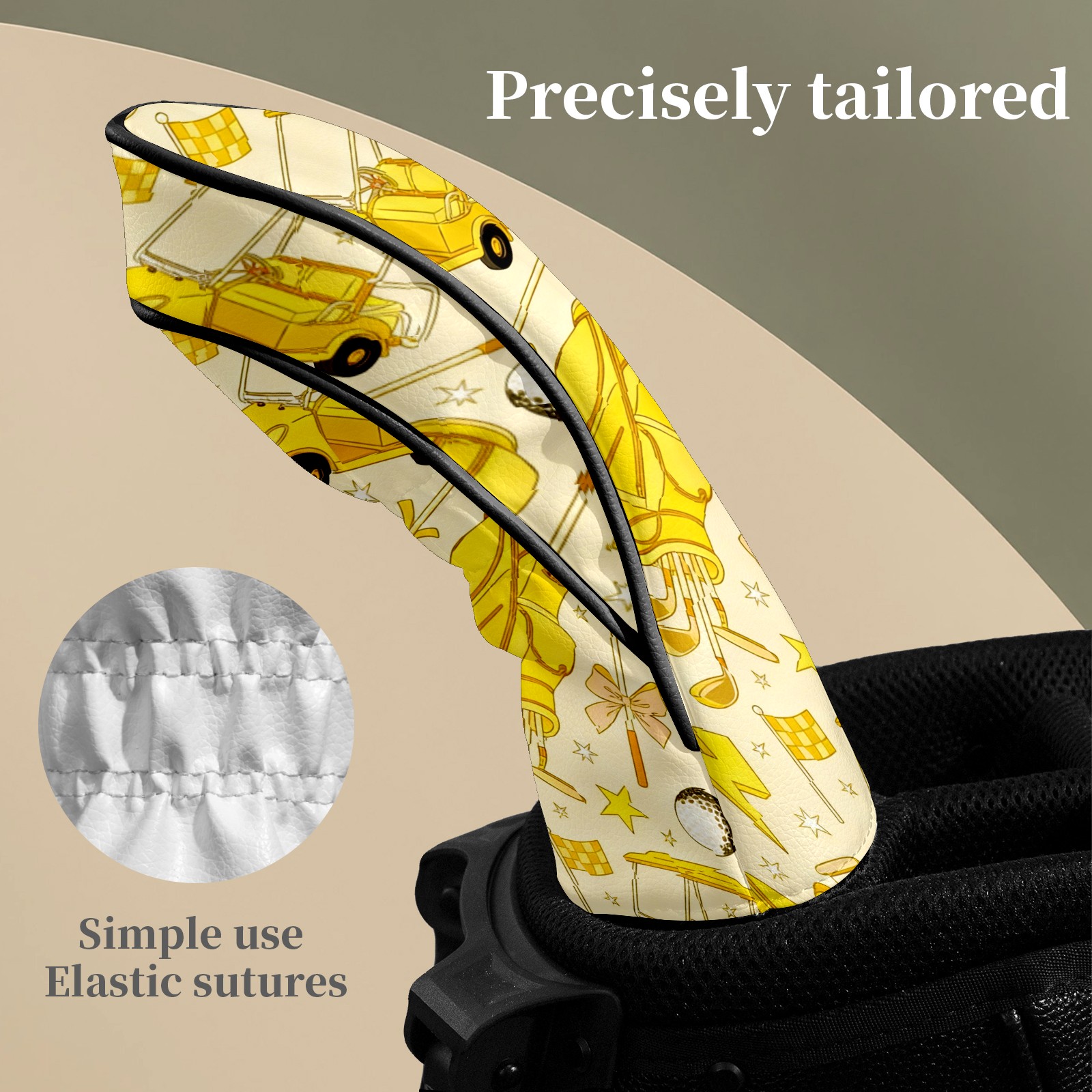 Counullo Golf Club Headcovers - Warm Golf Yellow Premium PU Leather with Plush Lining for Driver & Fairway Woods, No-Slip Fit for All Clubs, Novelty Gift for Men & Women