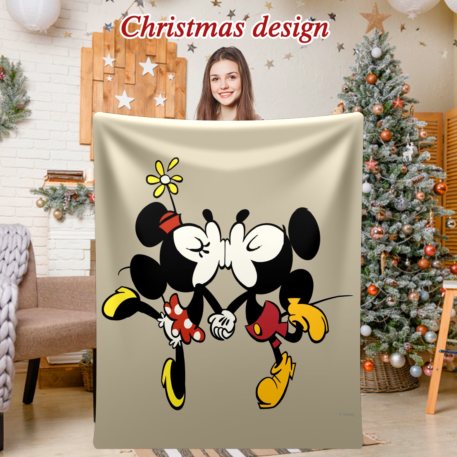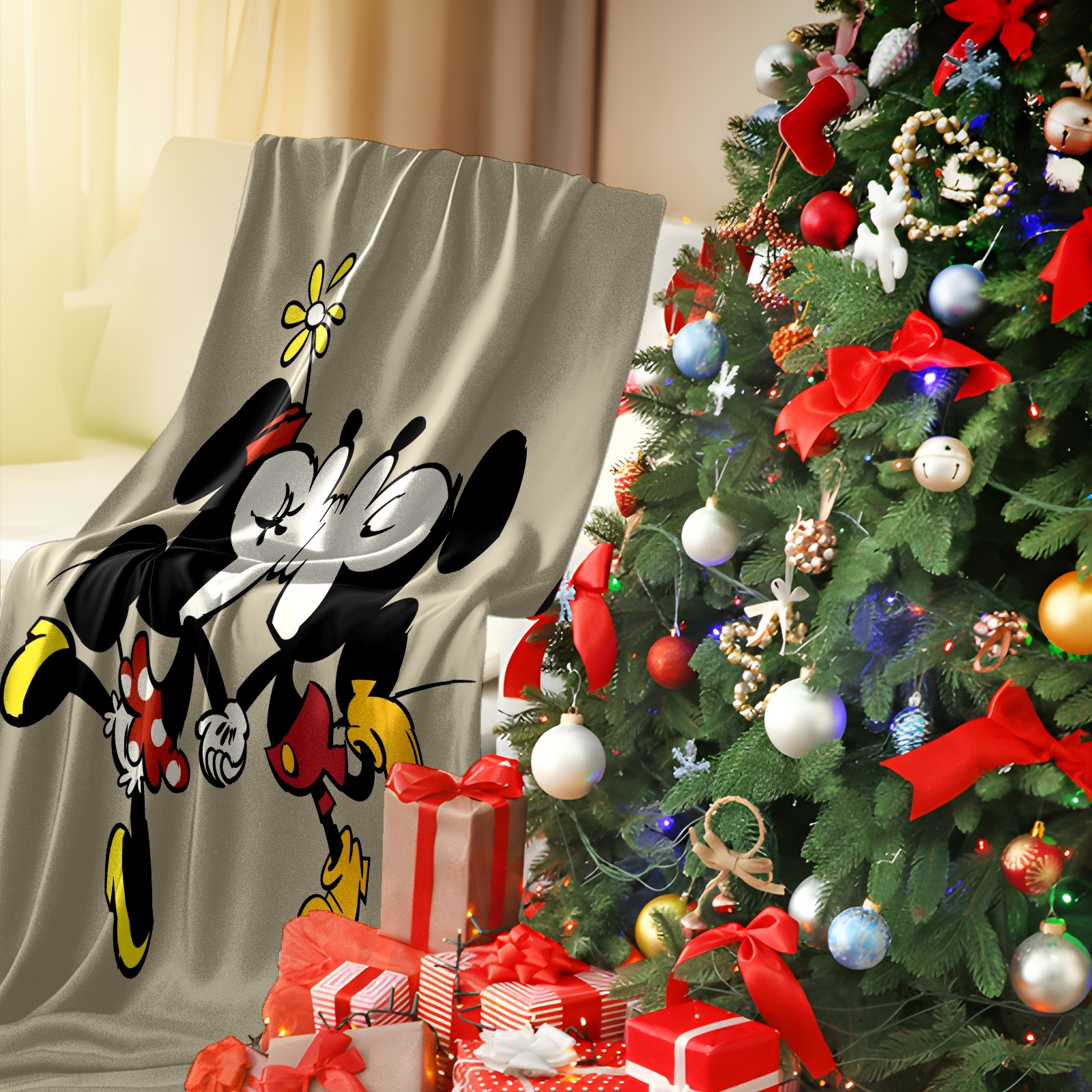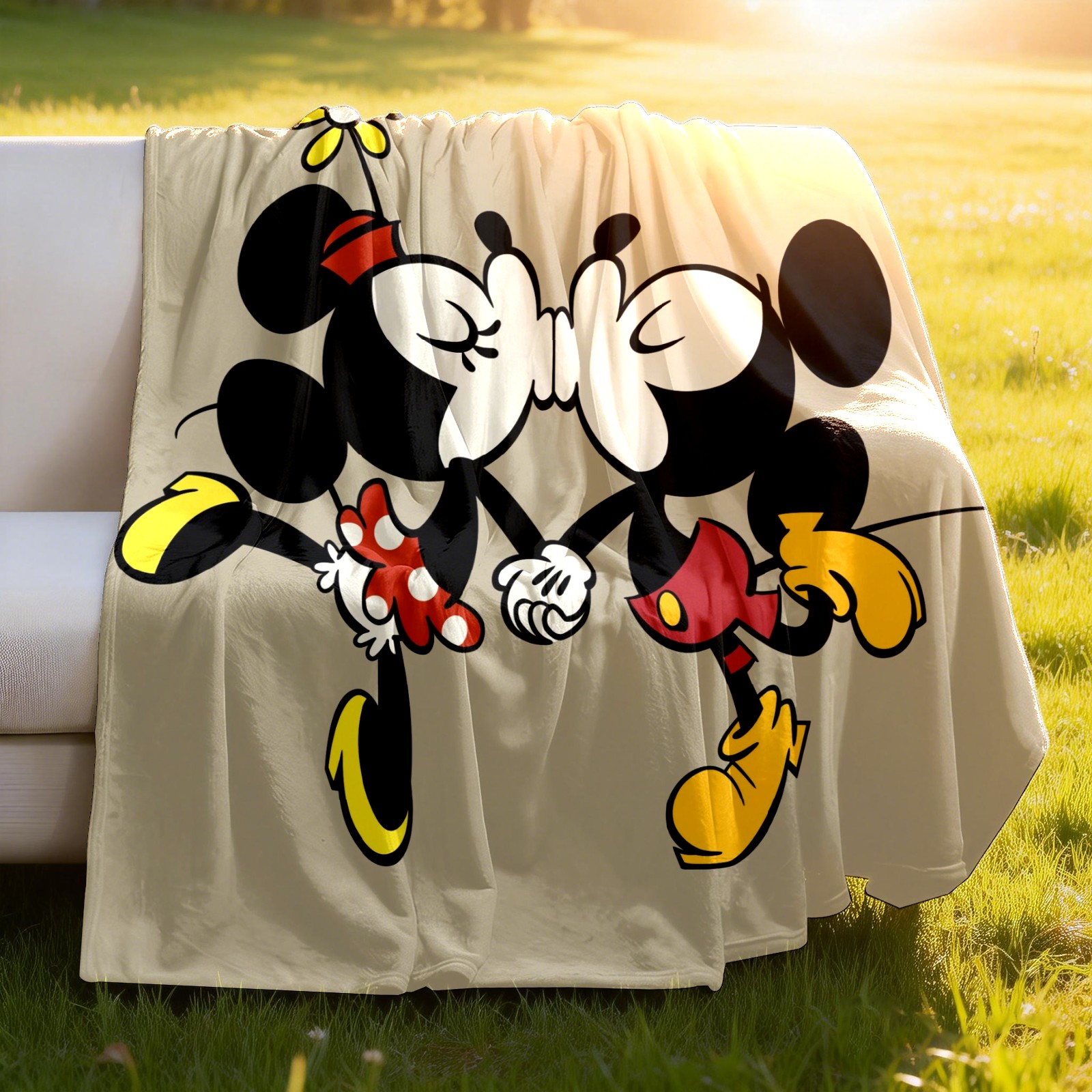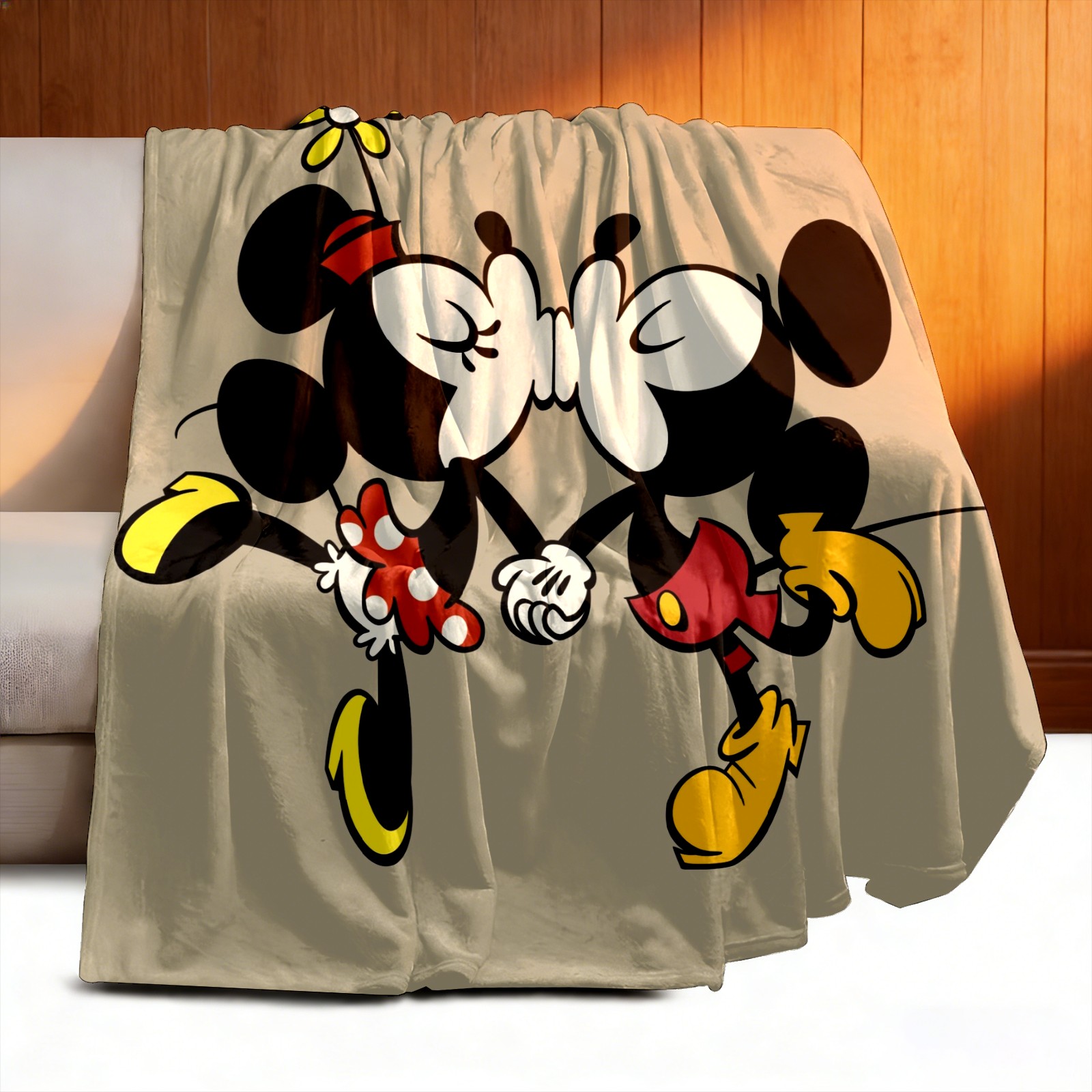 Премиальная фланелевая одеяло Cartoon Minnie Kissing Mickey Mouse