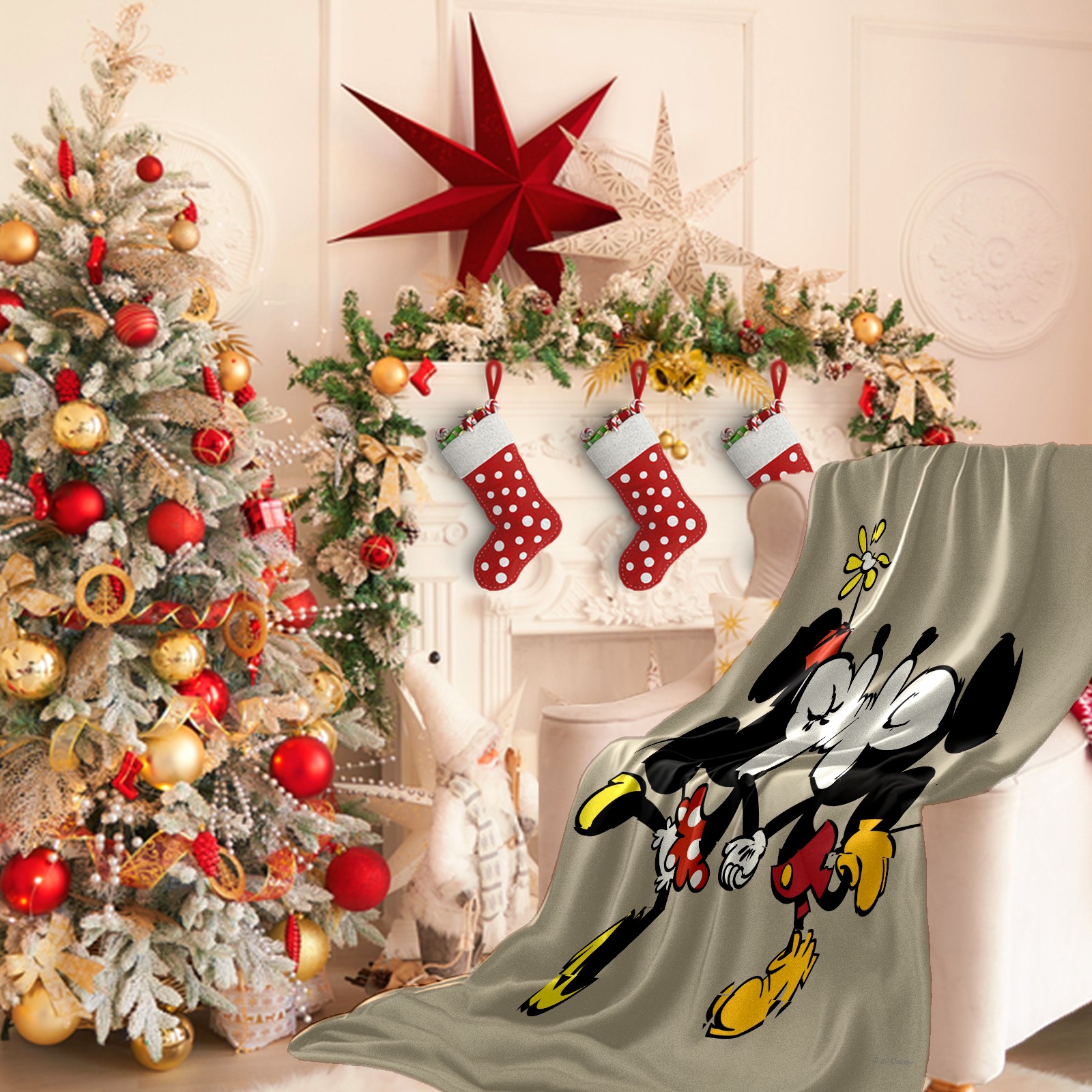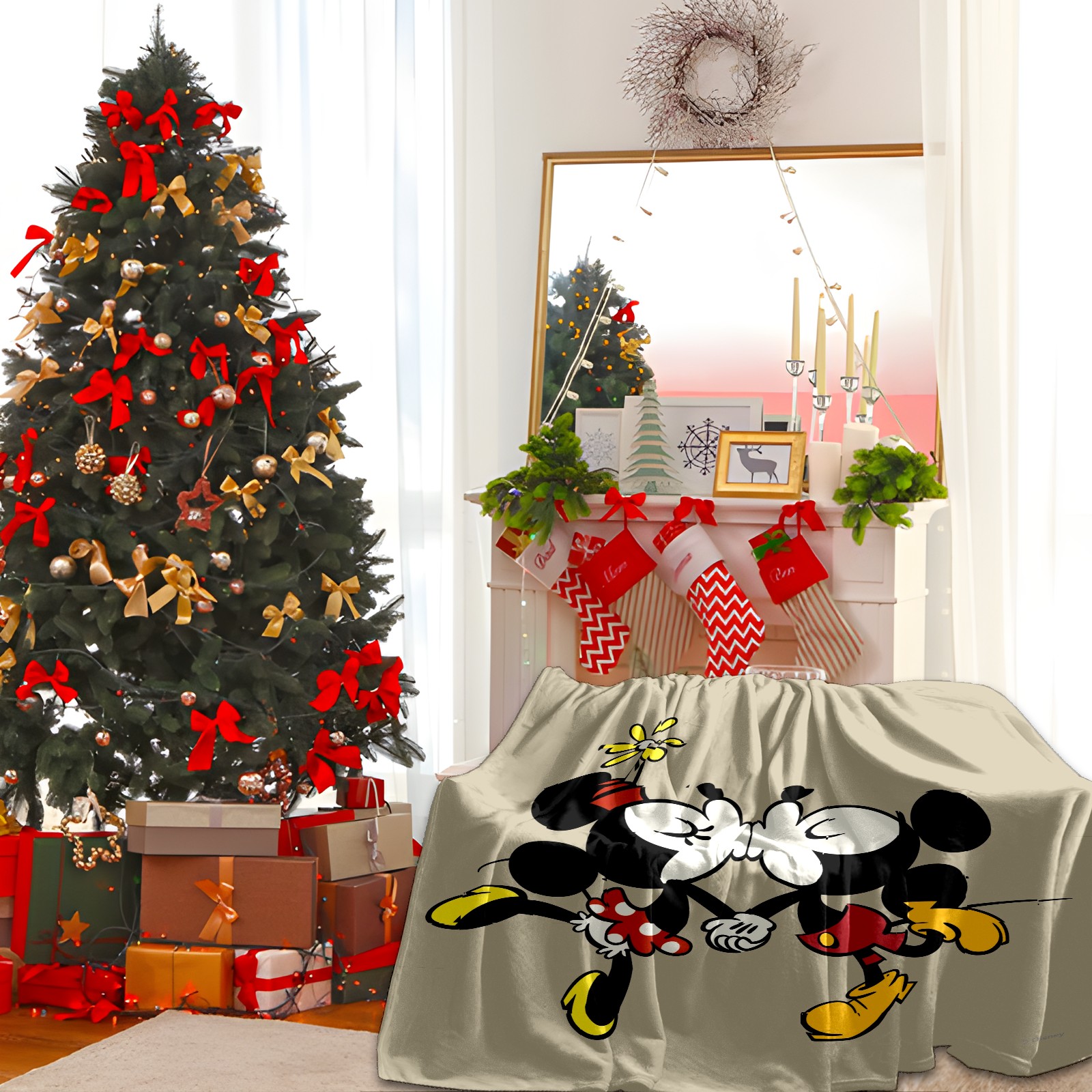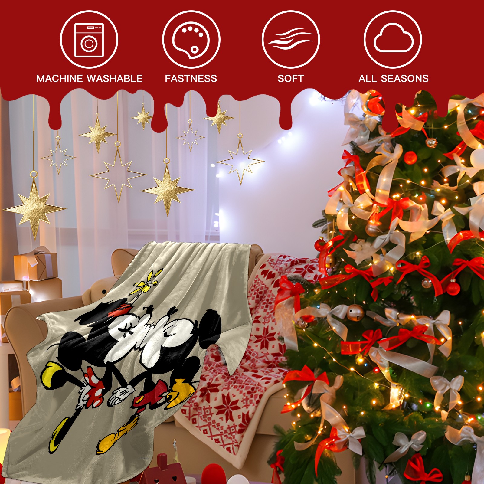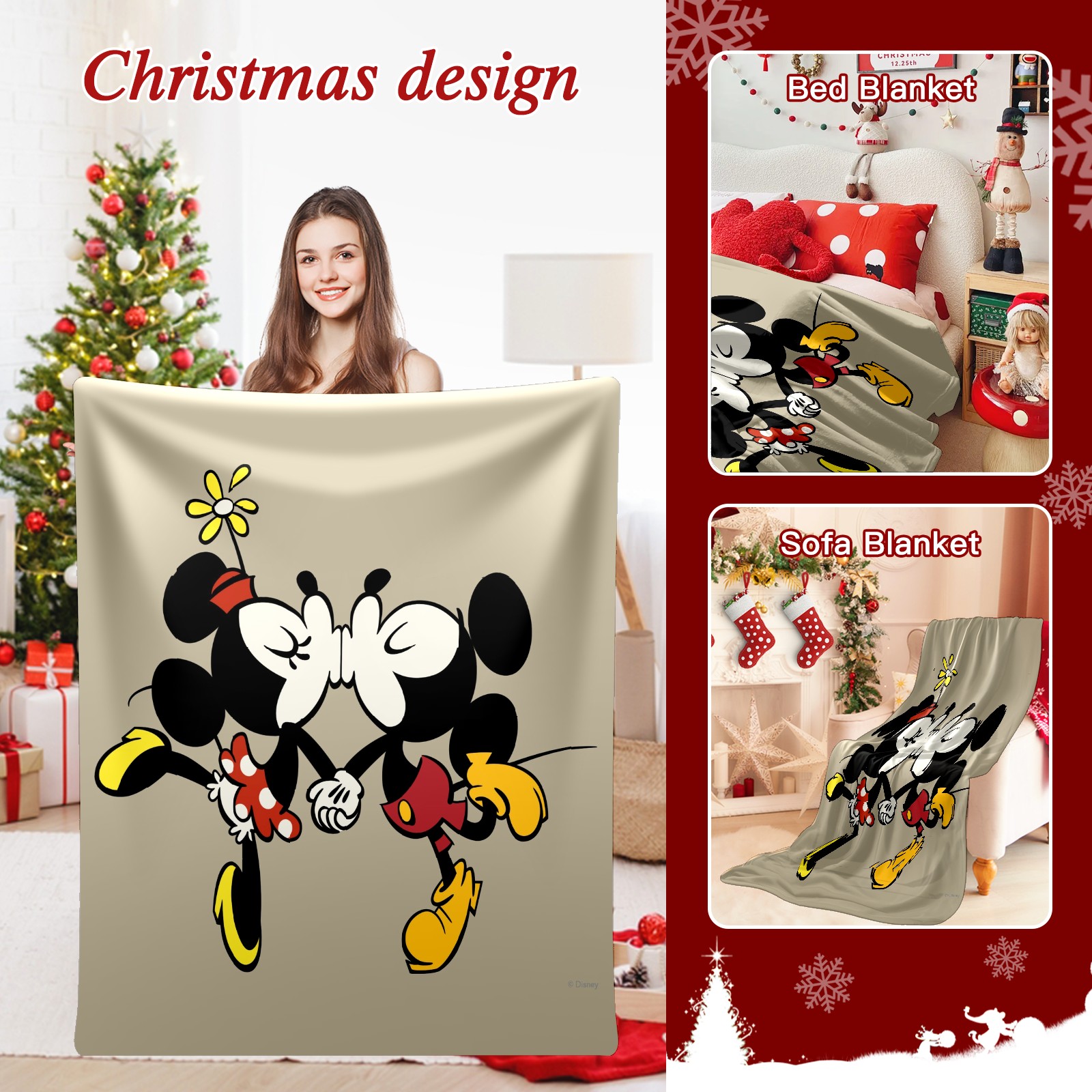 Премиальная фланелевая одеяло Cartoon Minnie Kissing Mickey Mouse