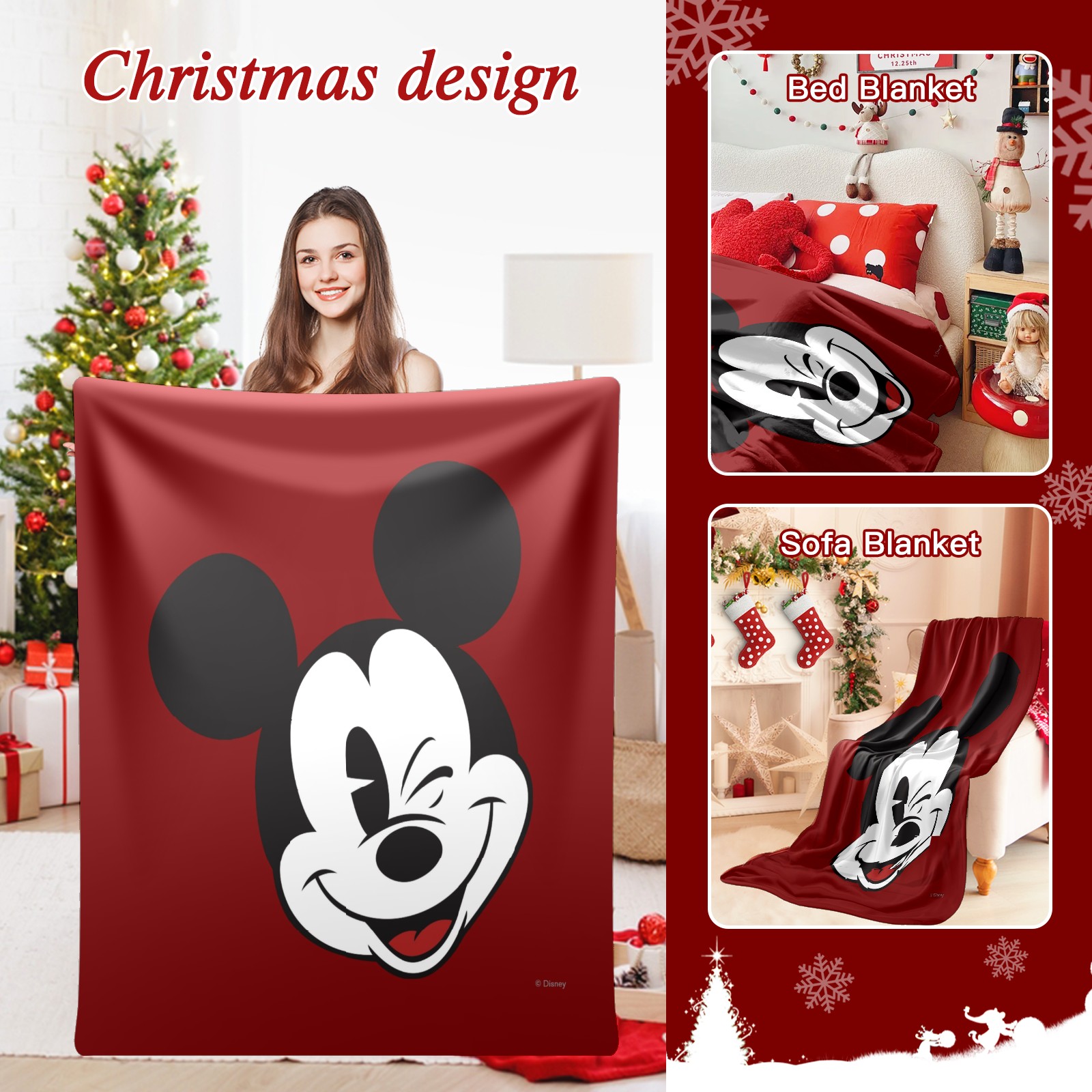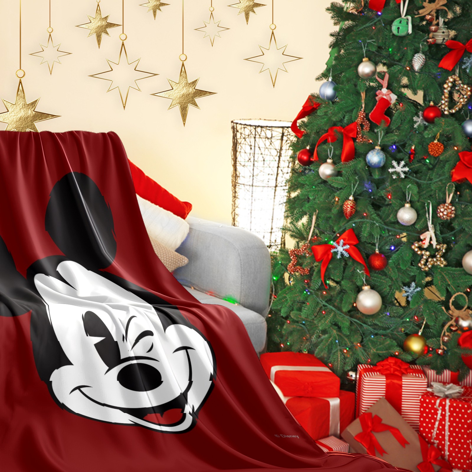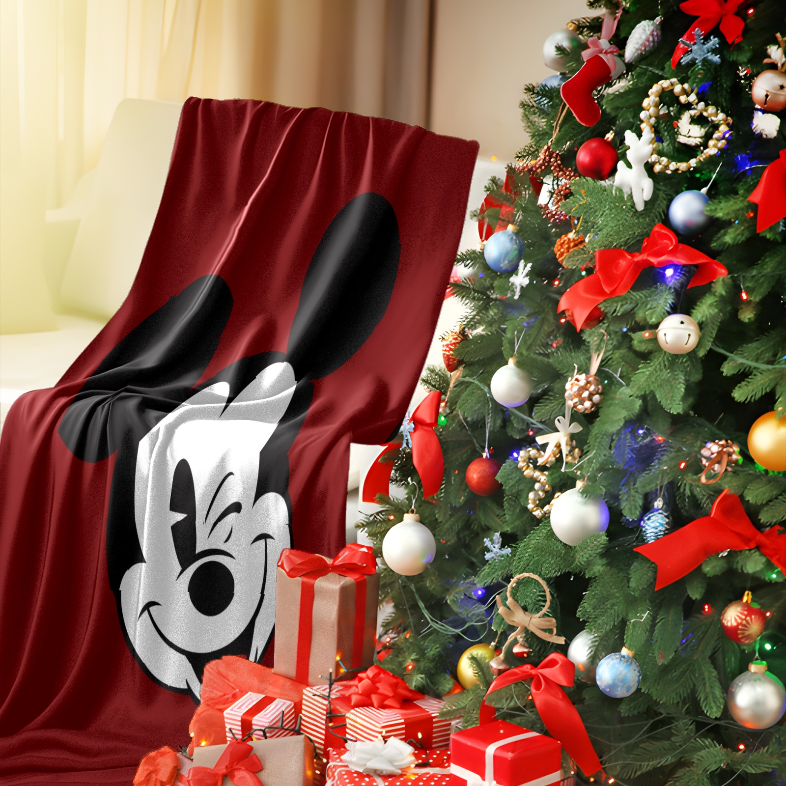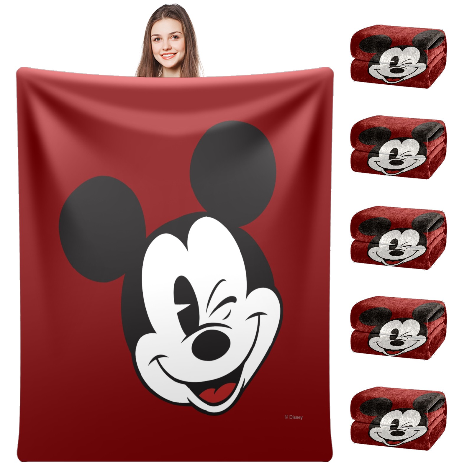 Премиальная фланелевая одеяло Classic Wink Mickey Mouse Red