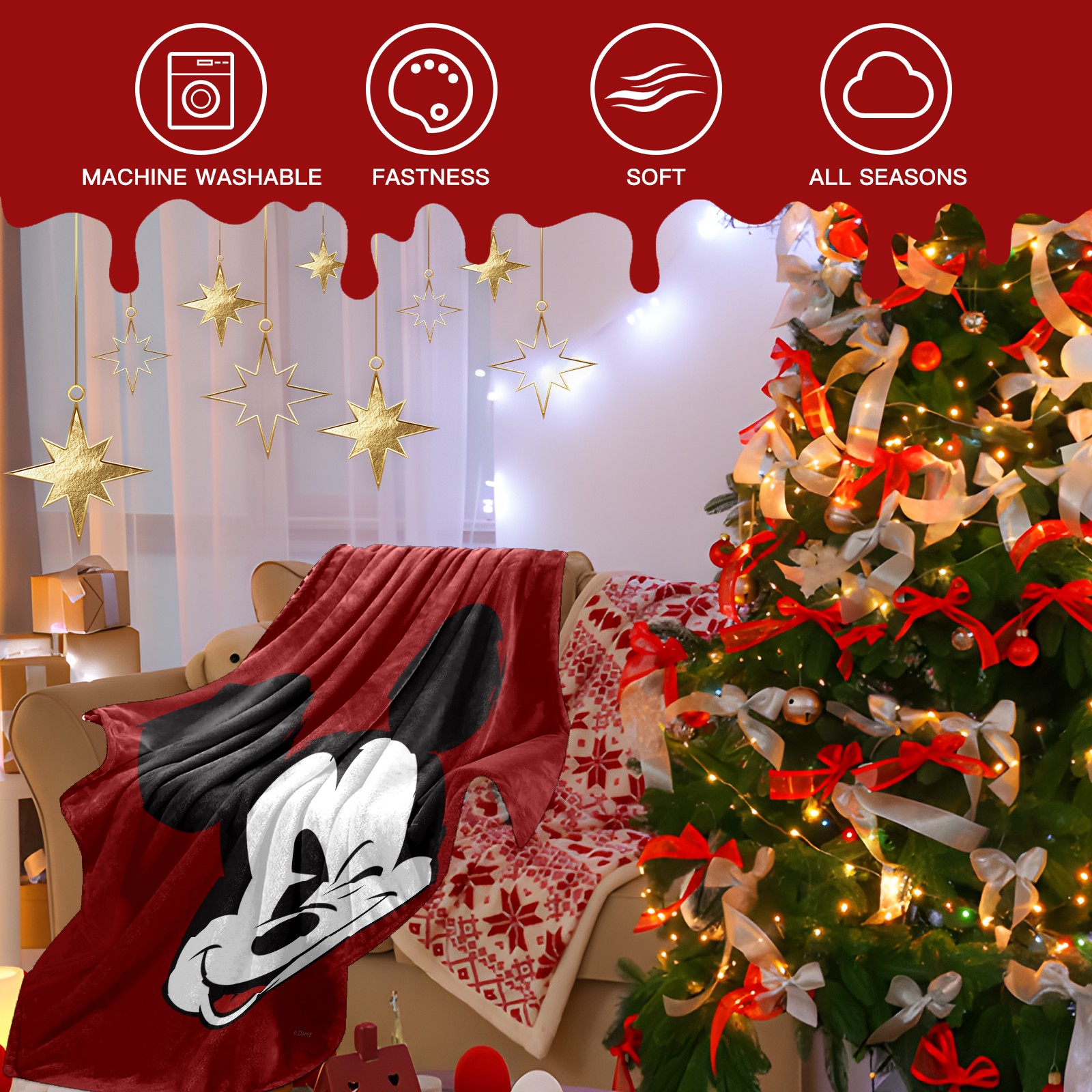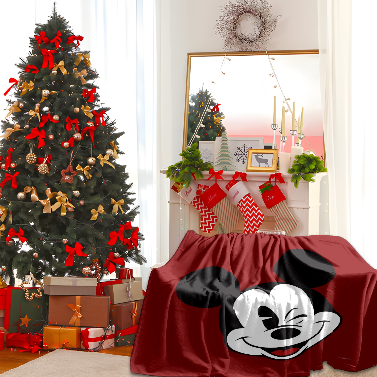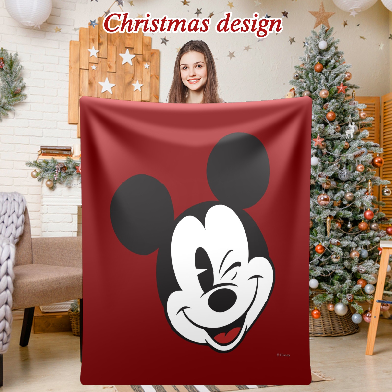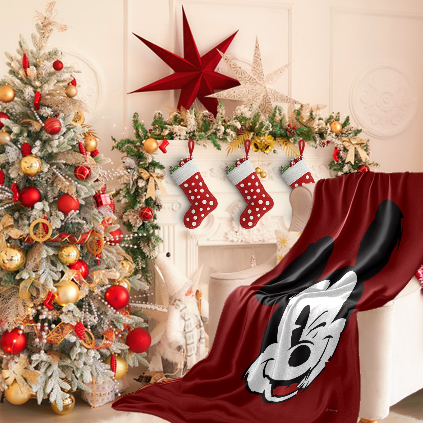 Премиальная фланелевая одеяло Classic Wink Mickey Mouse Red