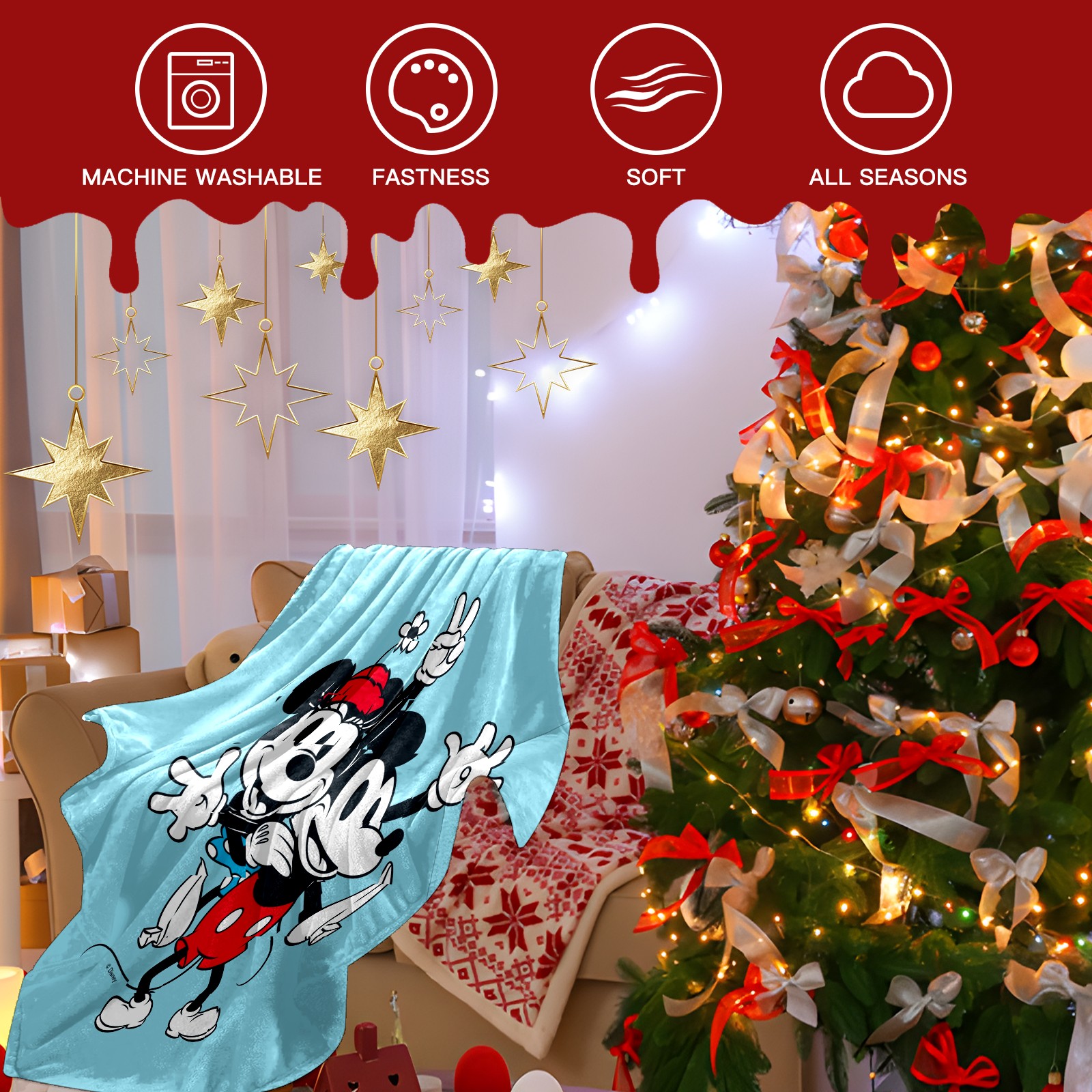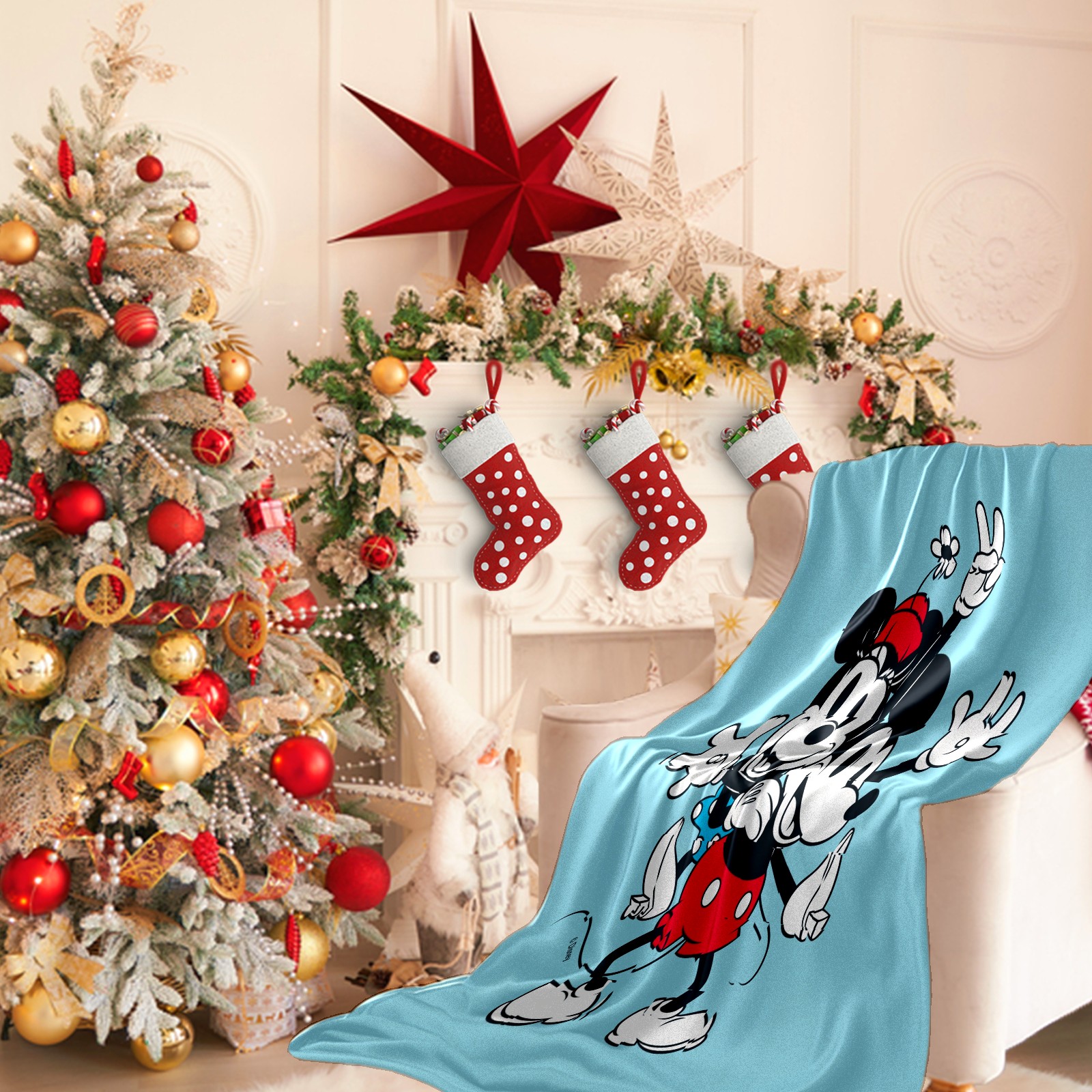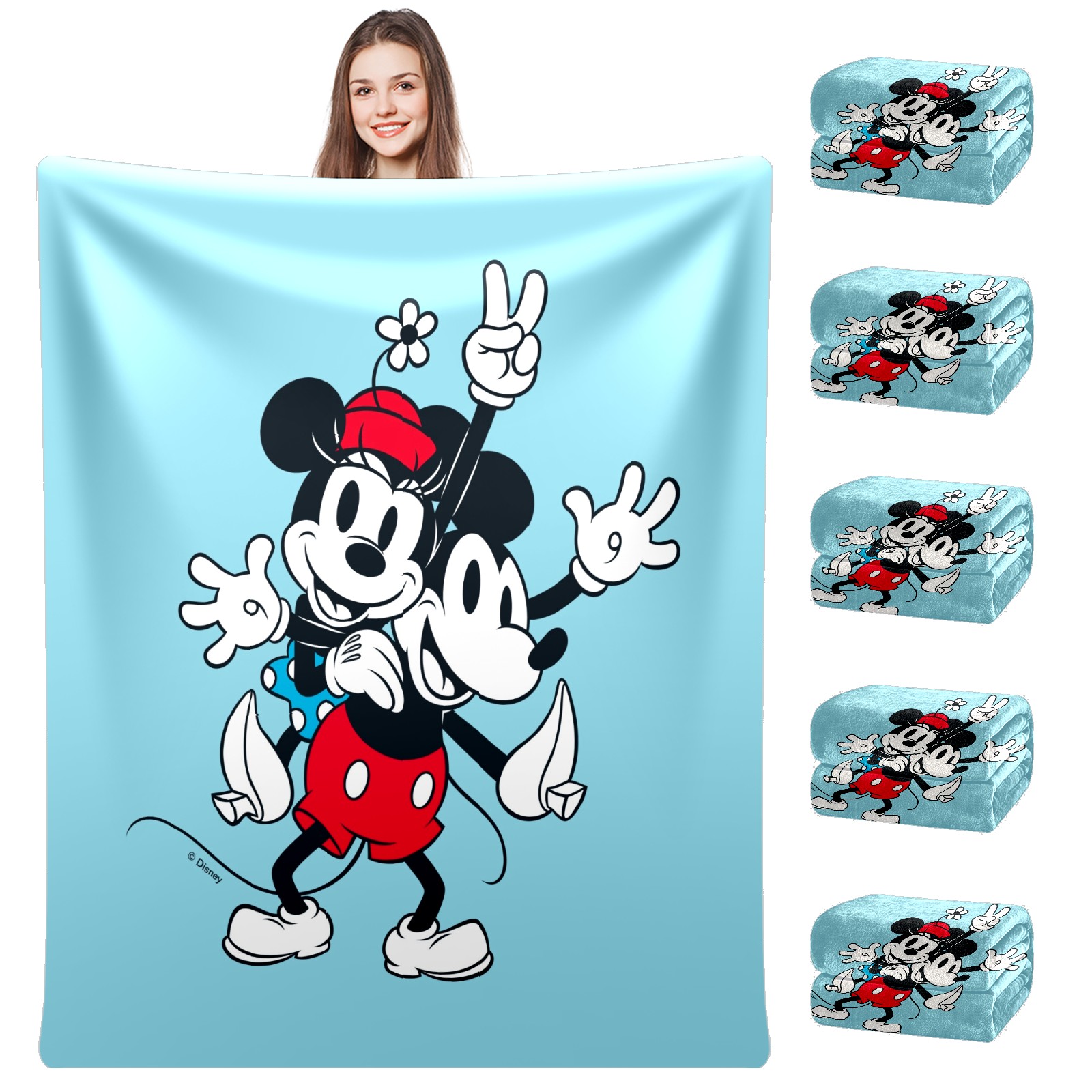 Премиальная фланелевая одеяло Blue Minnie Mickey Mouse Pattern