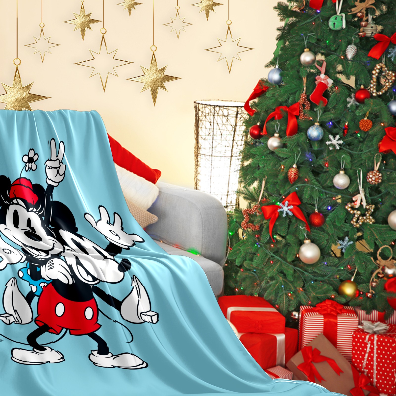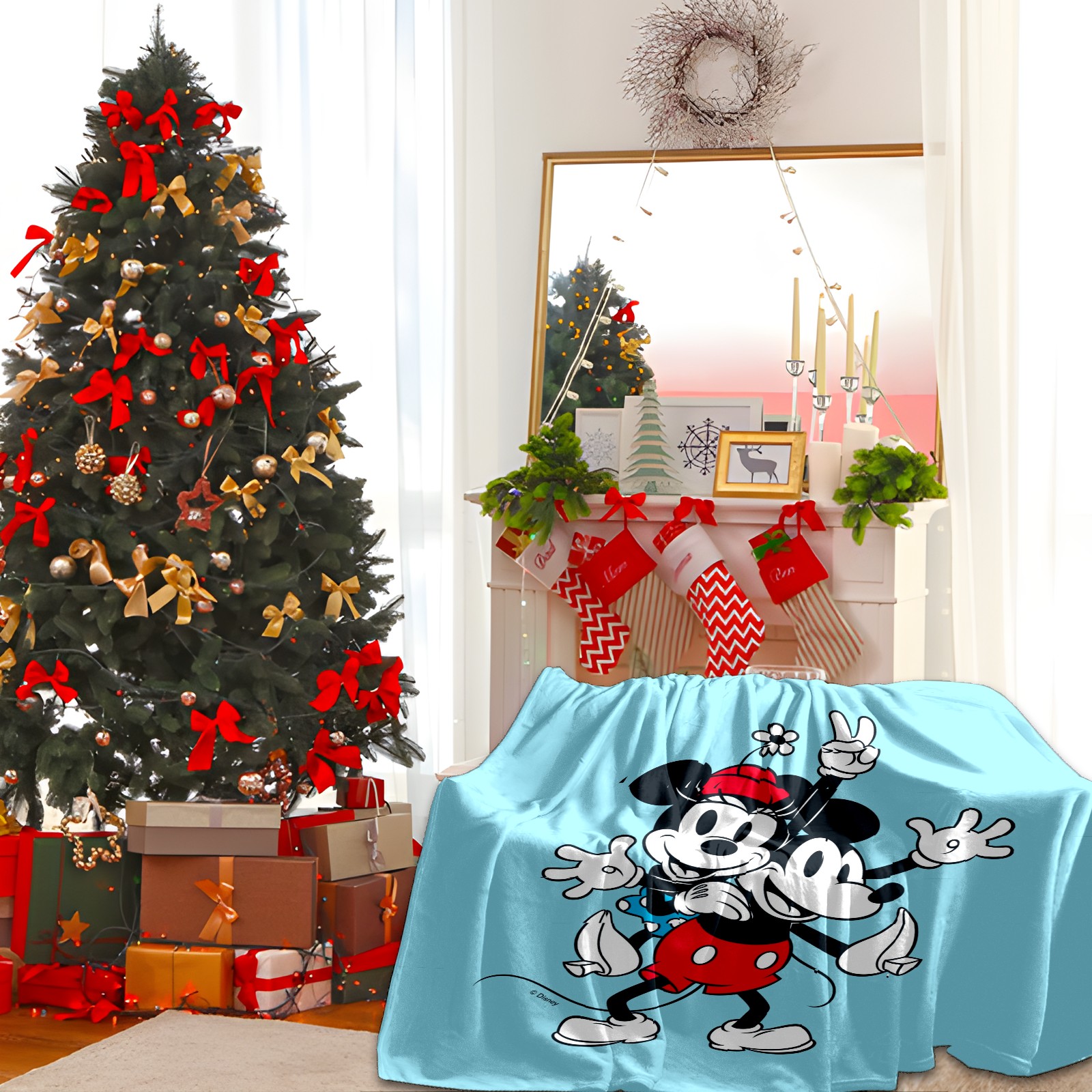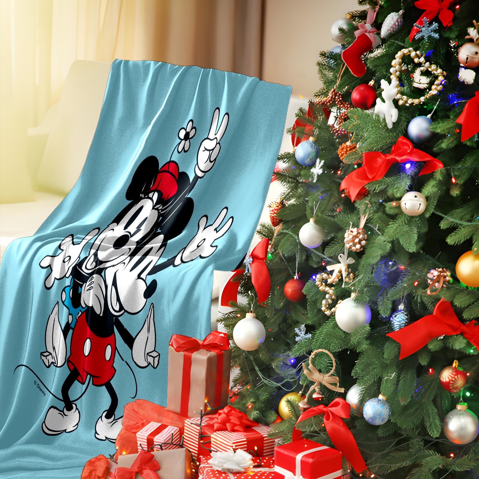 Премиальная фланелевая одеяло Blue Minnie Mickey Mouse Pattern