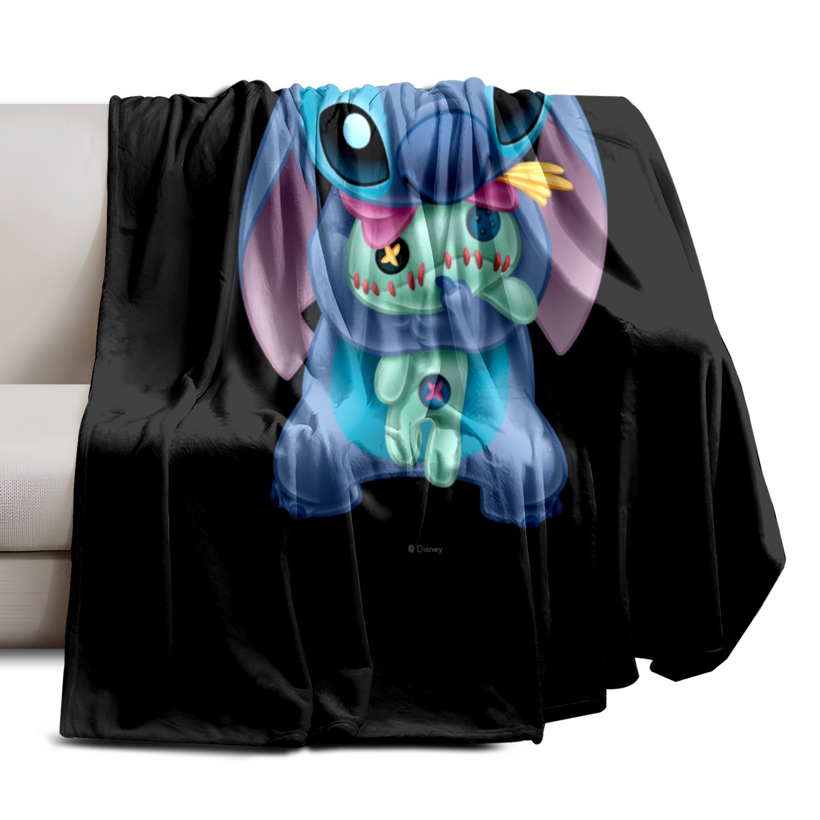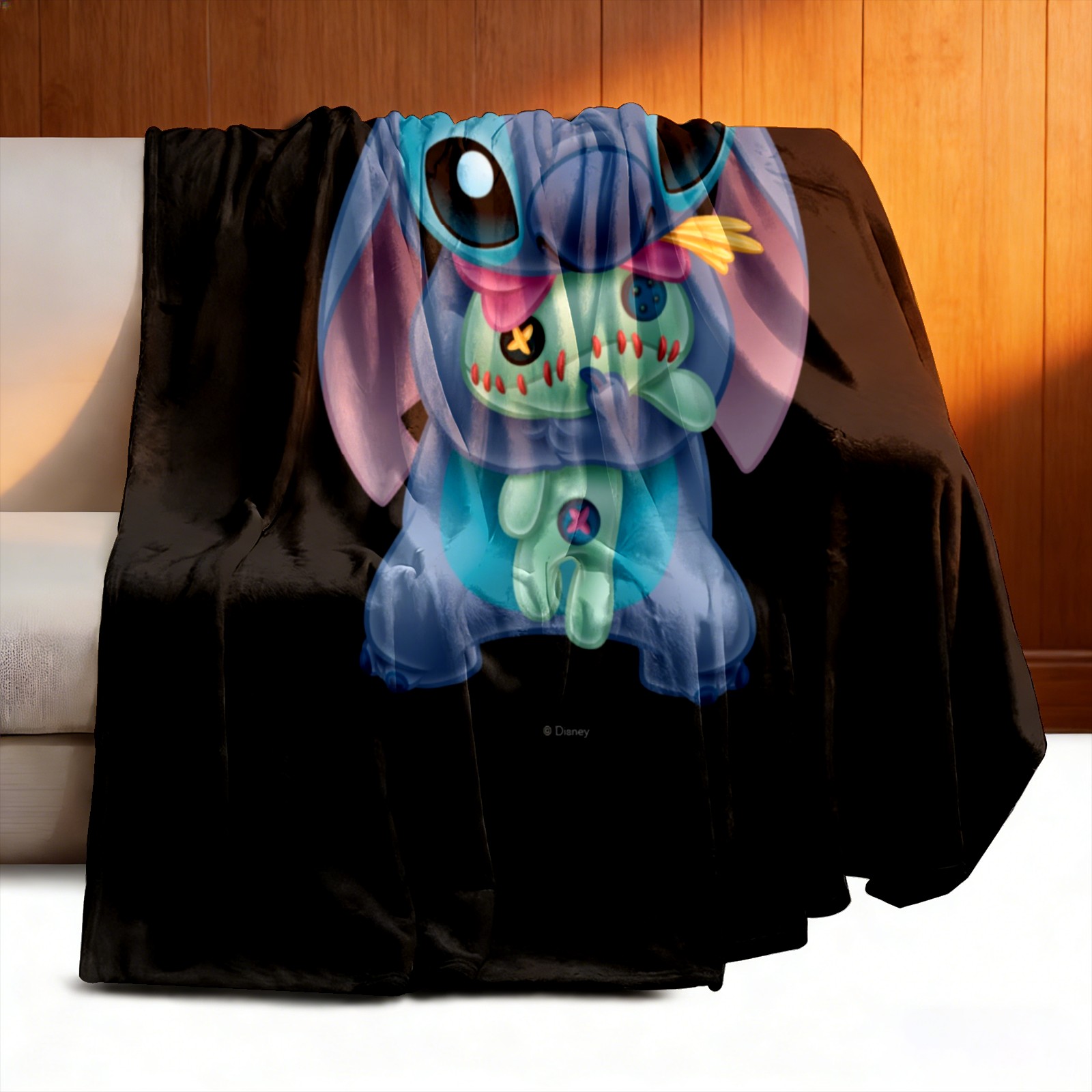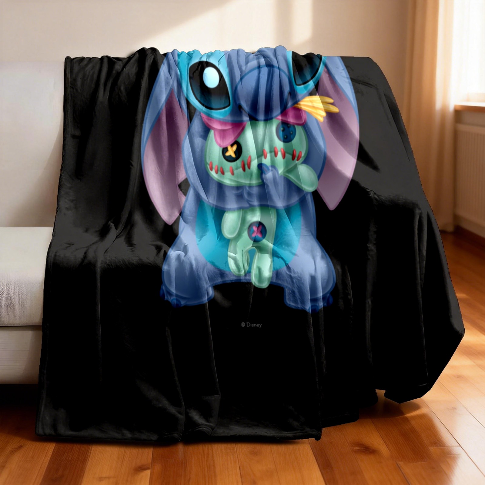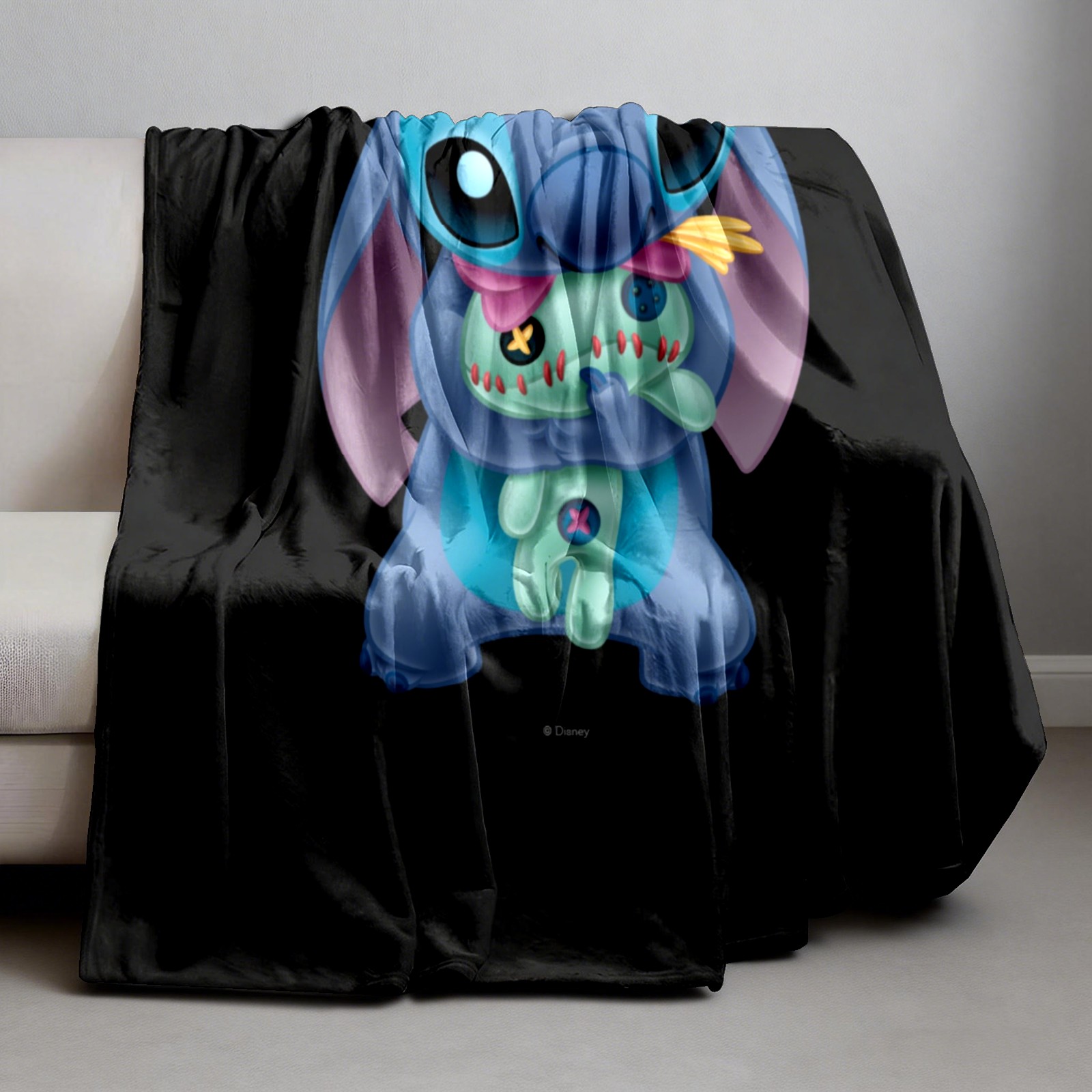 Премиальная фланелевая одеяло Lilo Stich Stitch With Ugly Doll Black