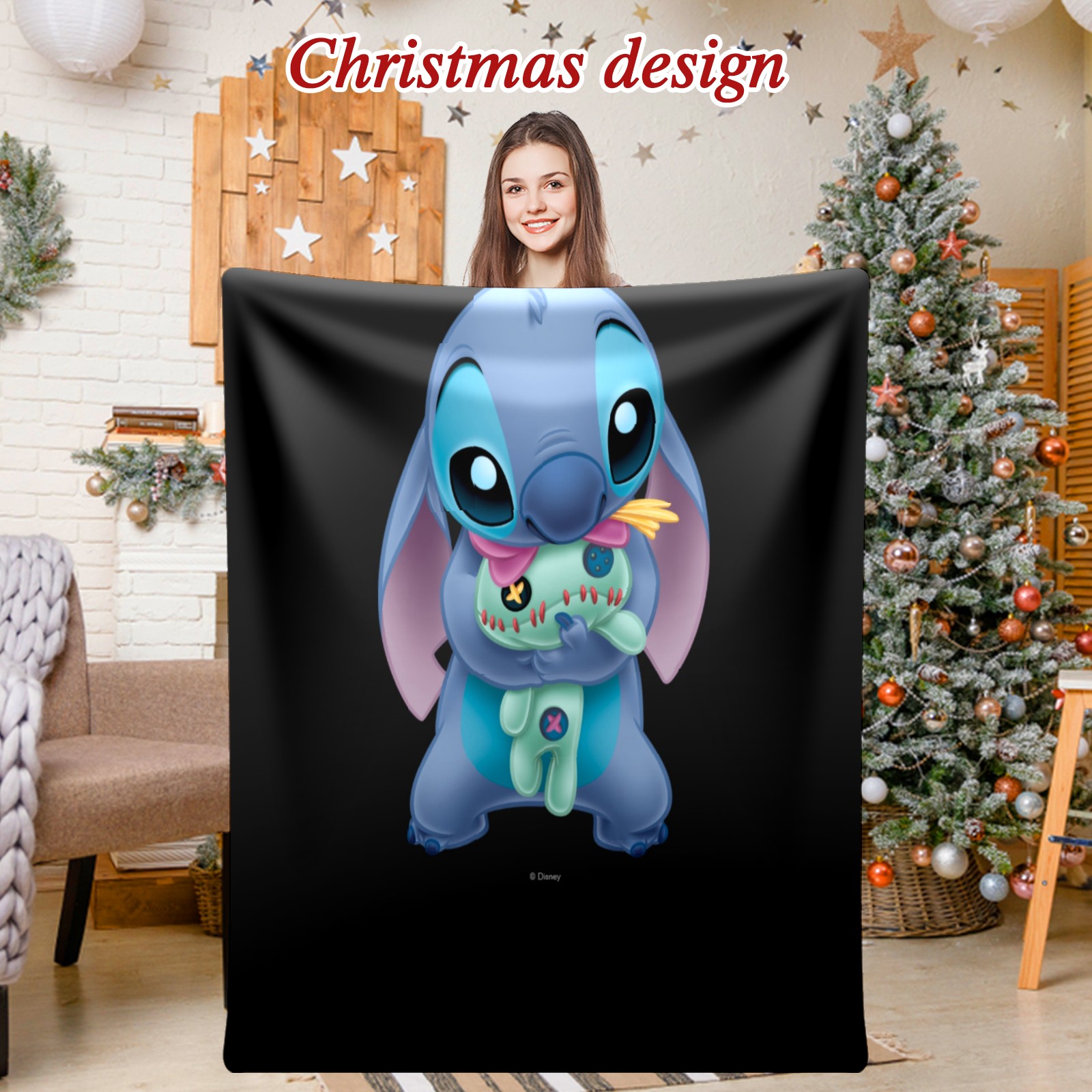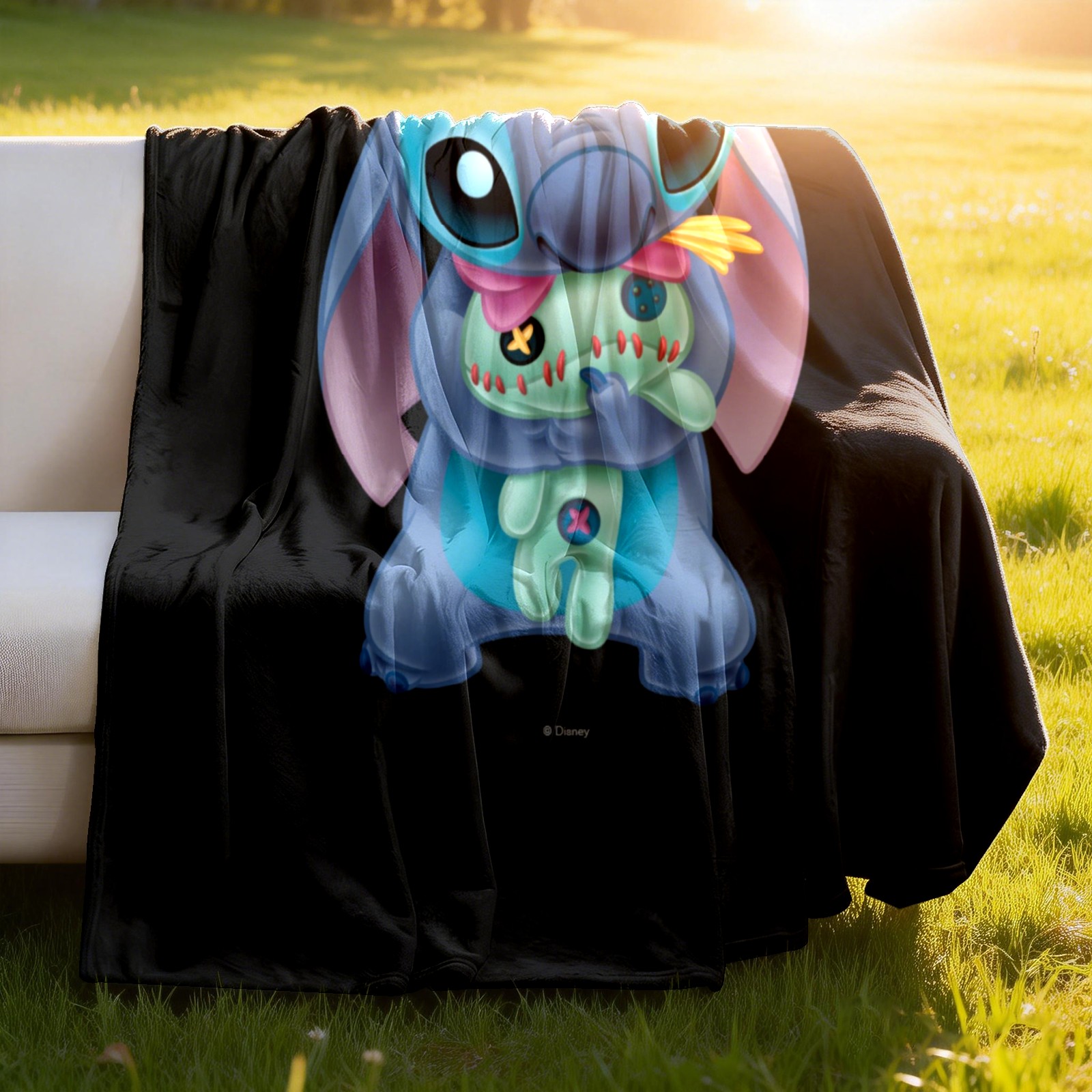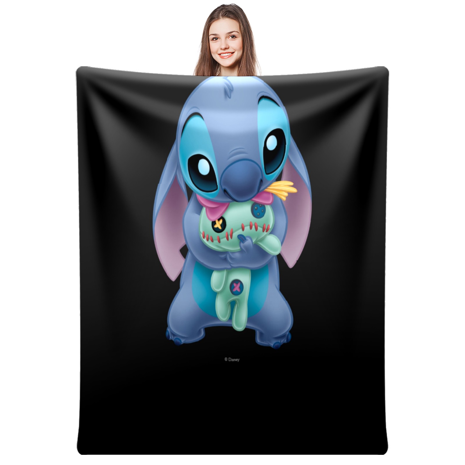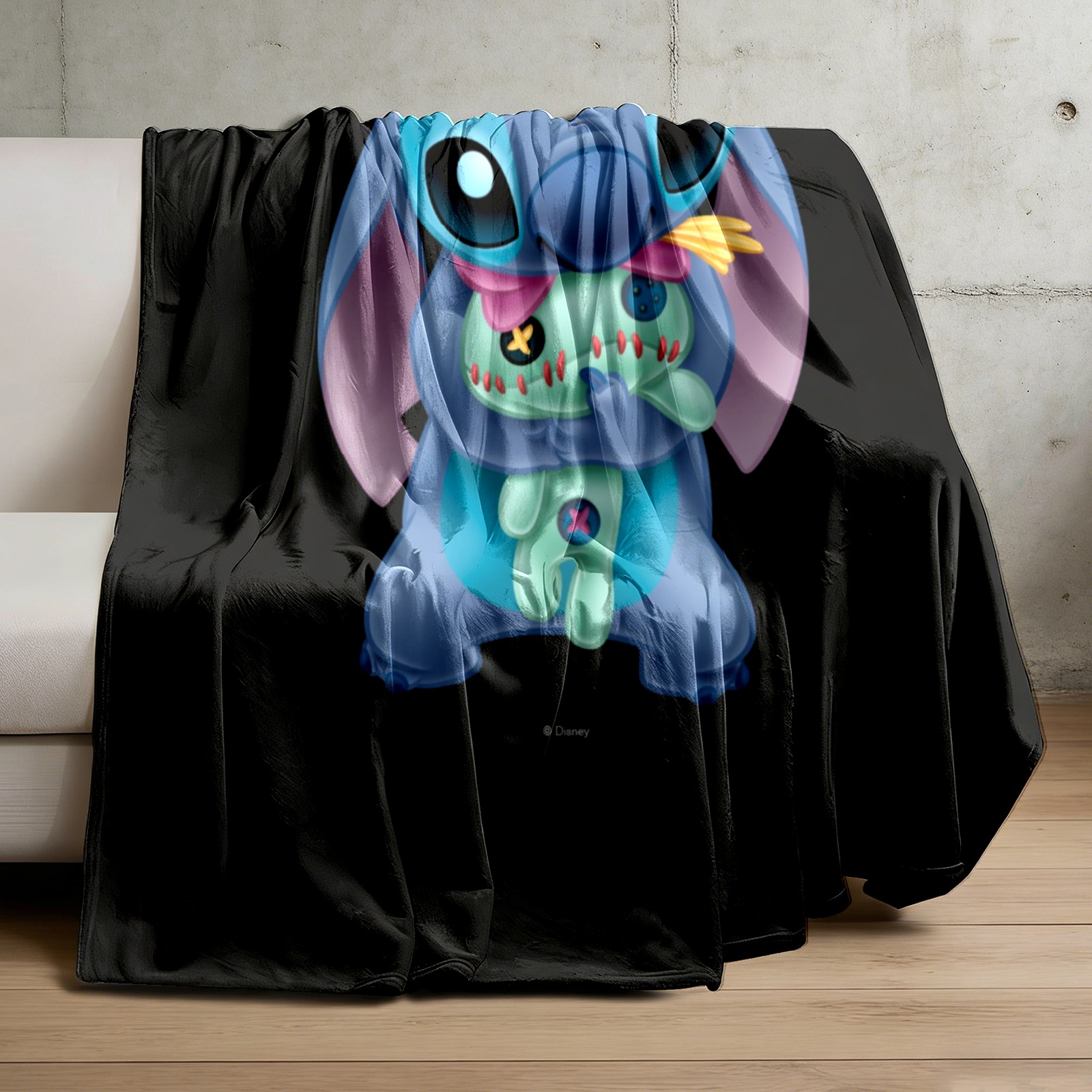 Премиальная фланелевая одеяло Lilo Stich Stitch With Ugly Doll Black