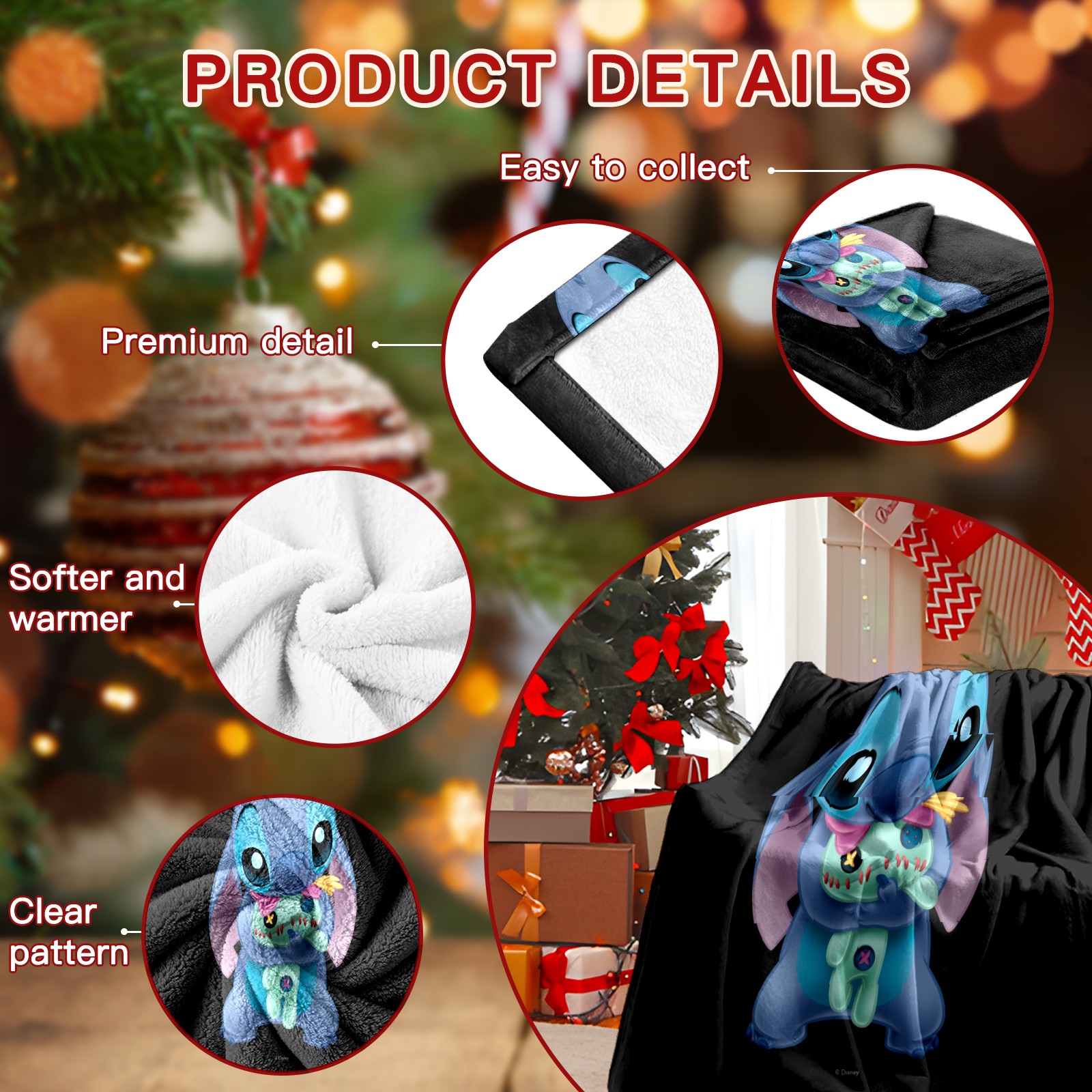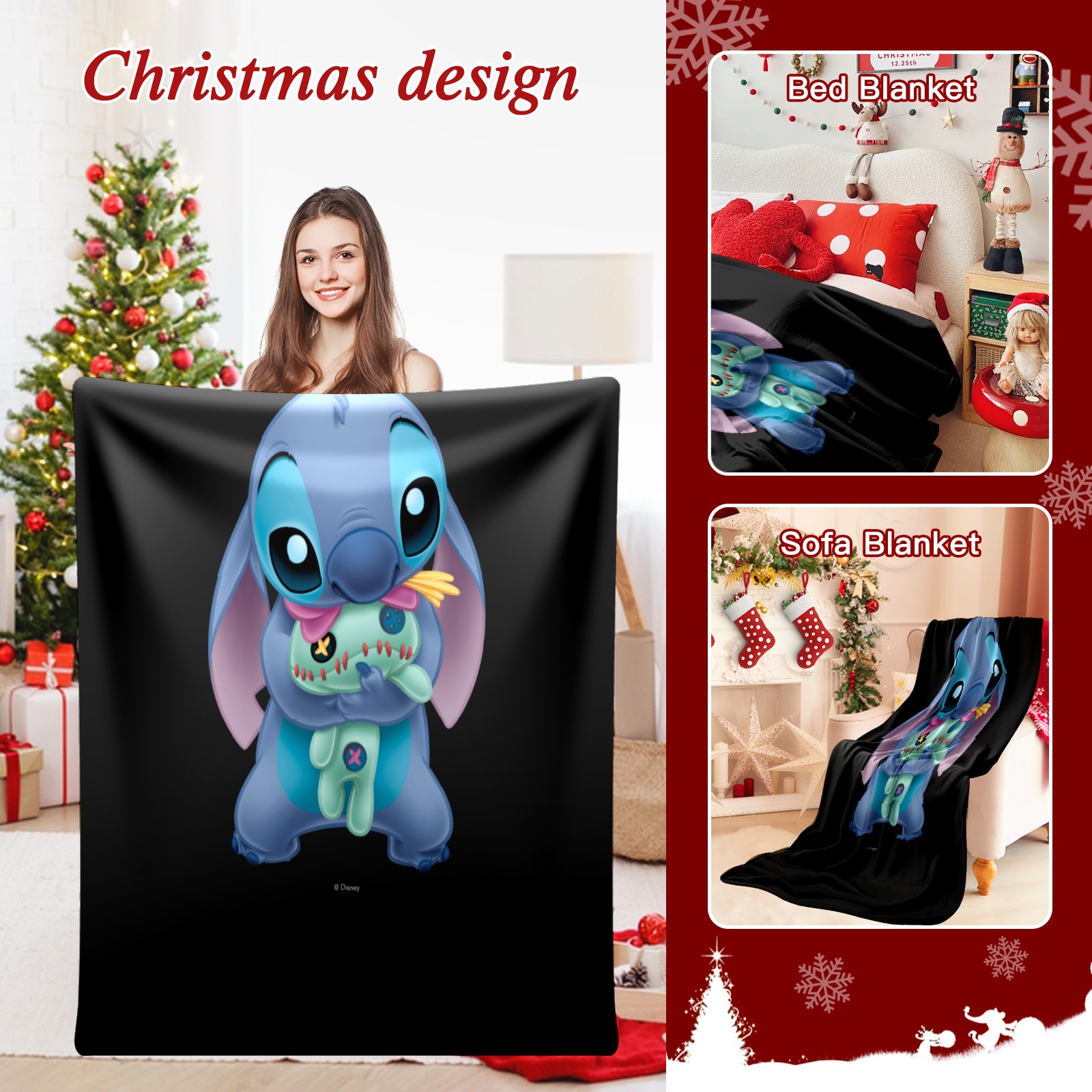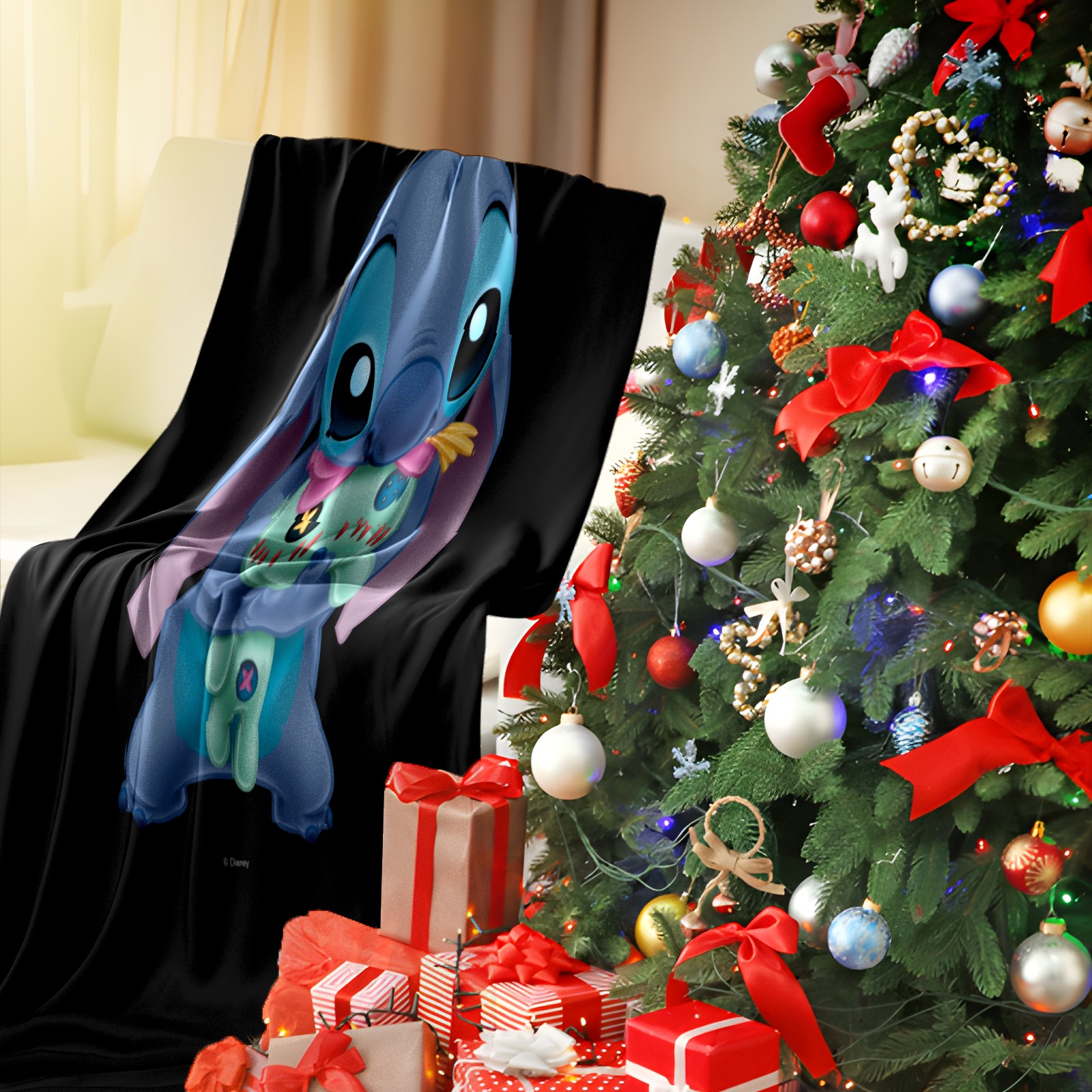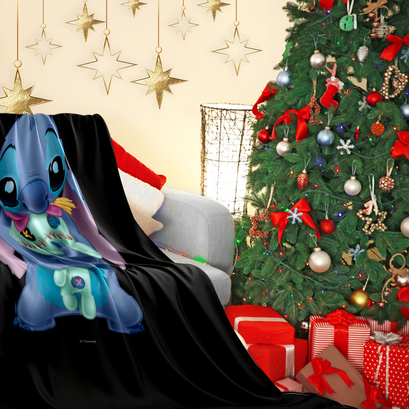 Премиальная фланелевая одеяло Lilo Stich Stitch With Ugly Doll Black