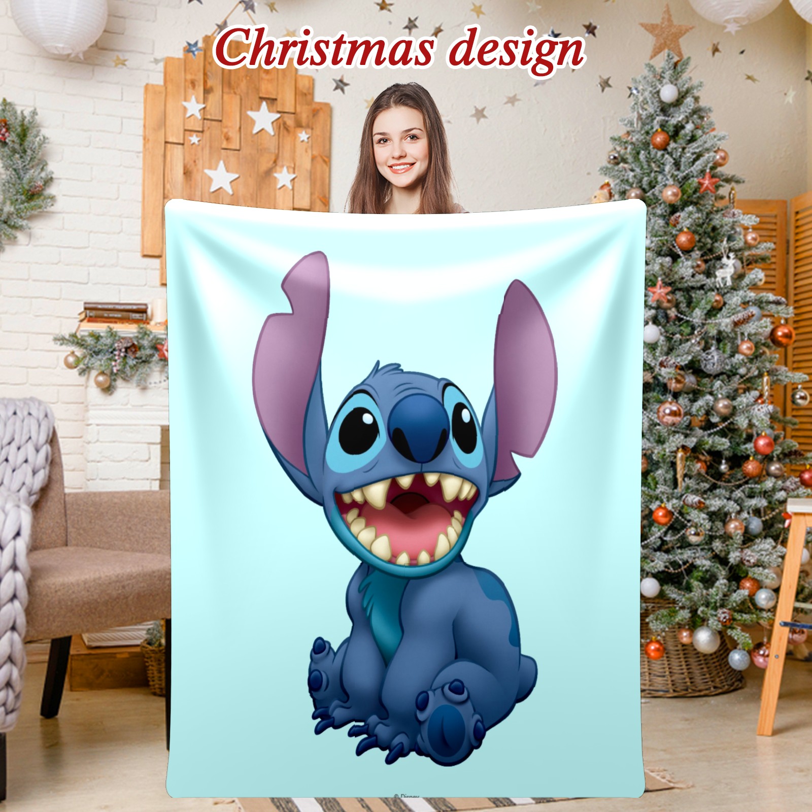 Премиальная фланелевая одеяло Lilo Stitch