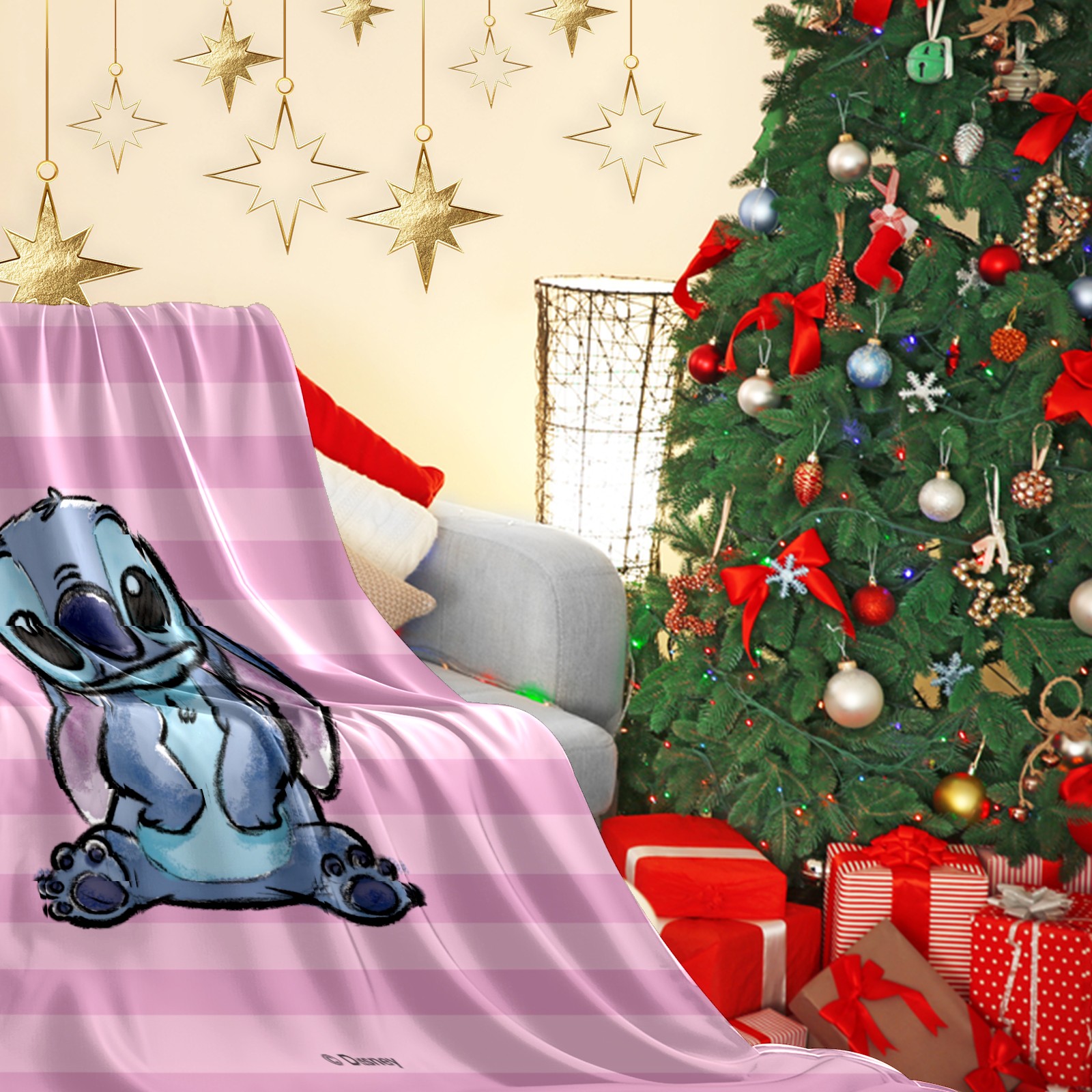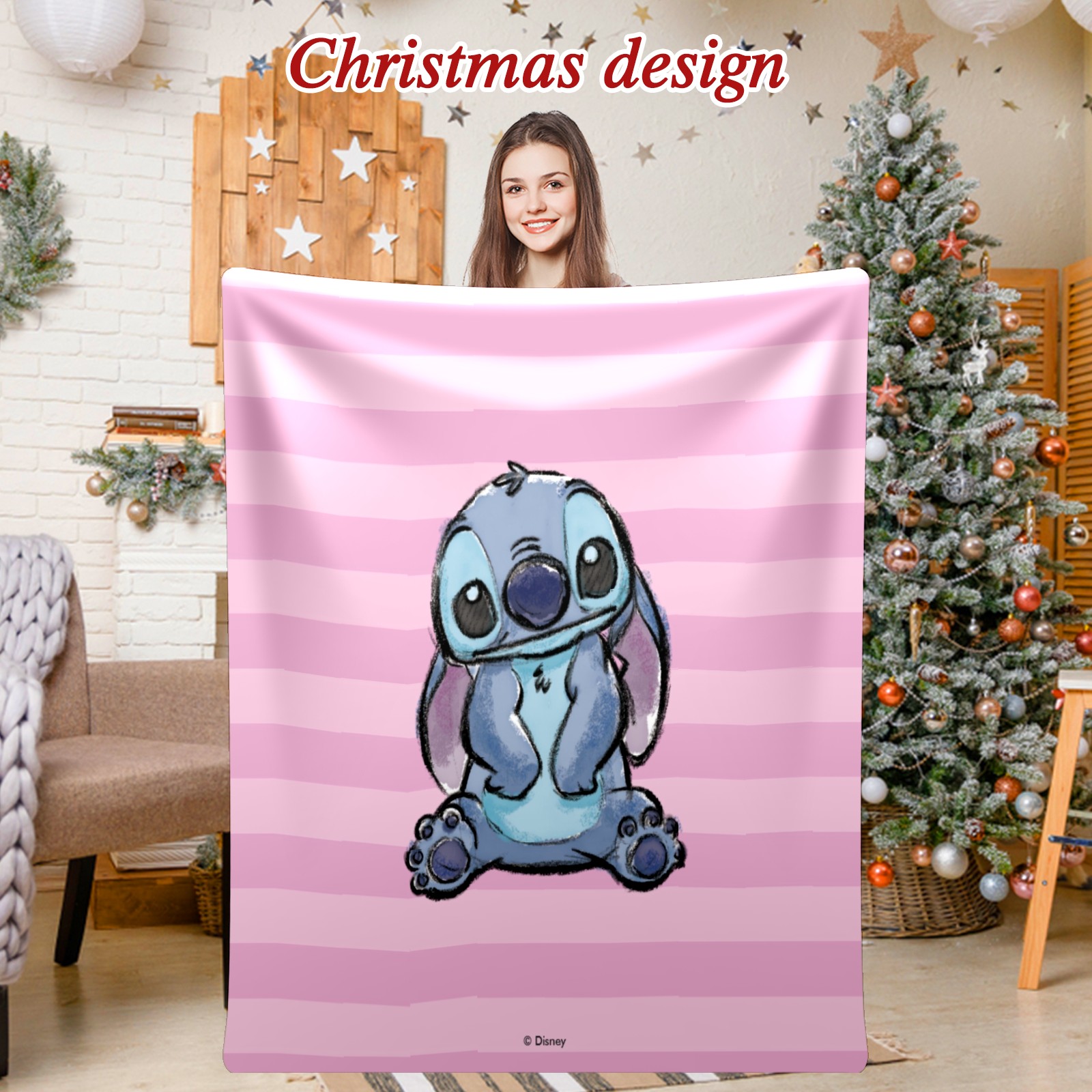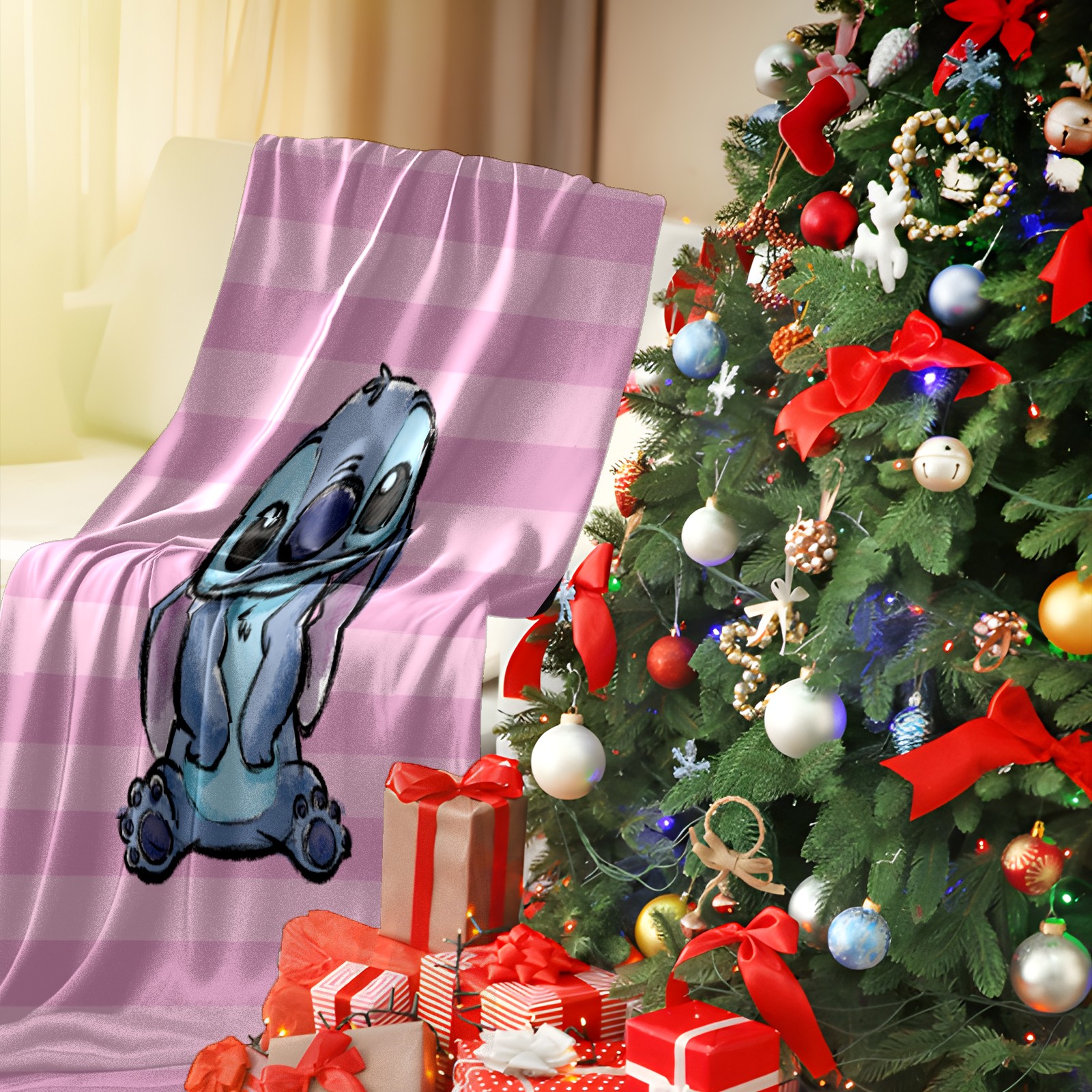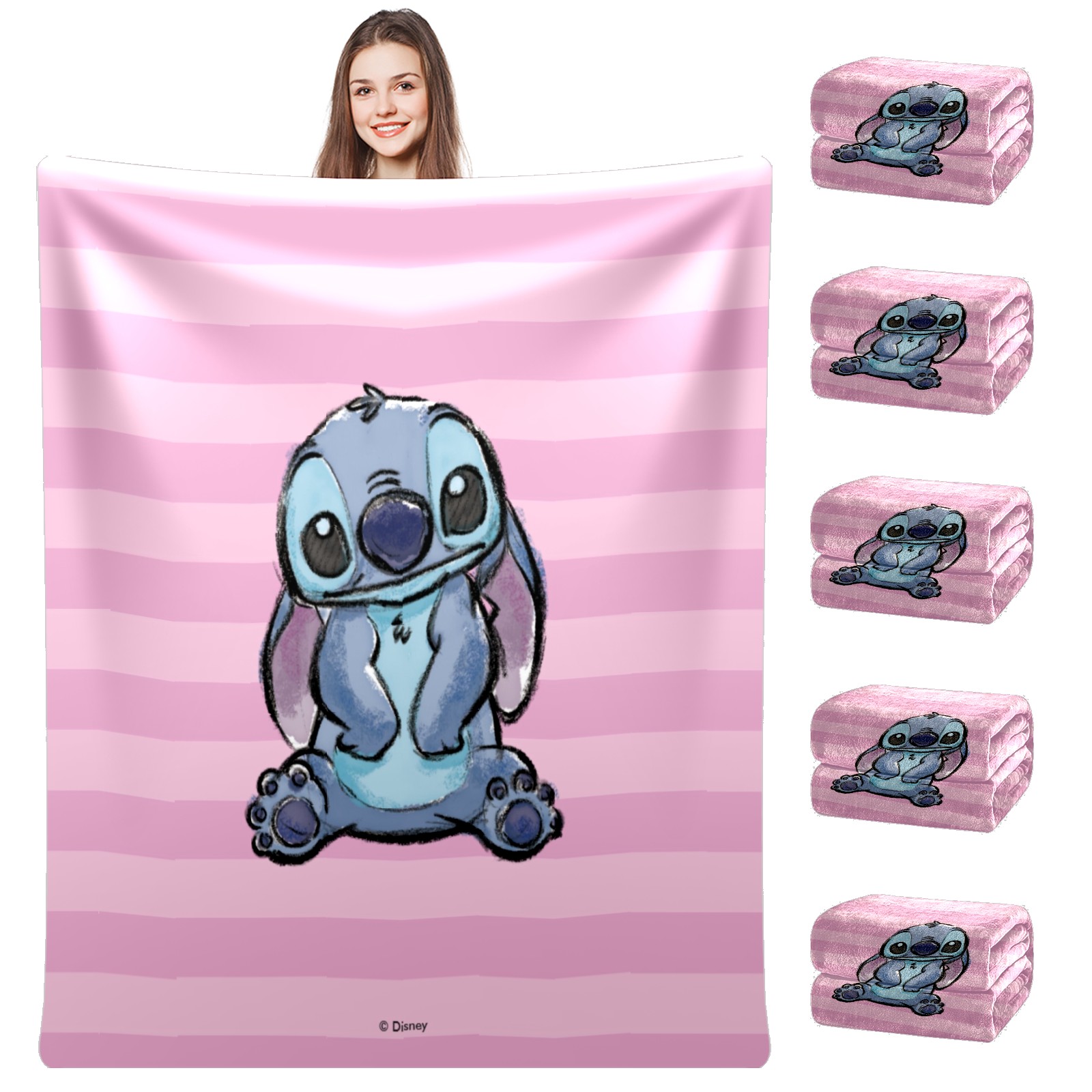 Премиальная фланелевая одеяло Pink Lilo Stitch Stitch Sketch