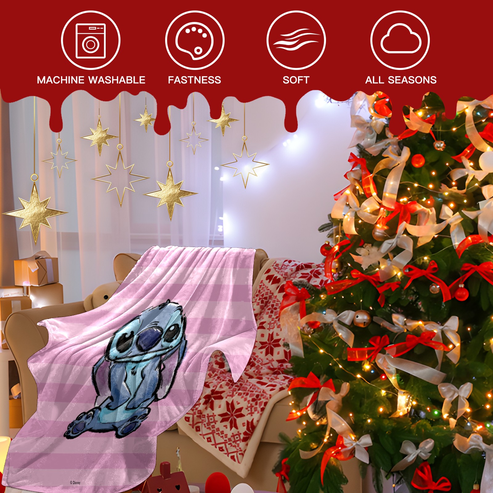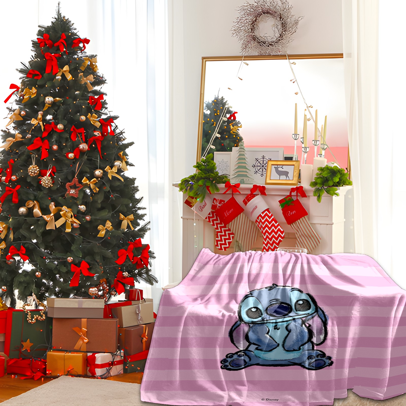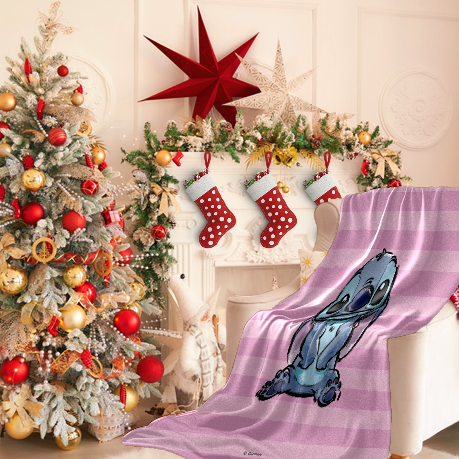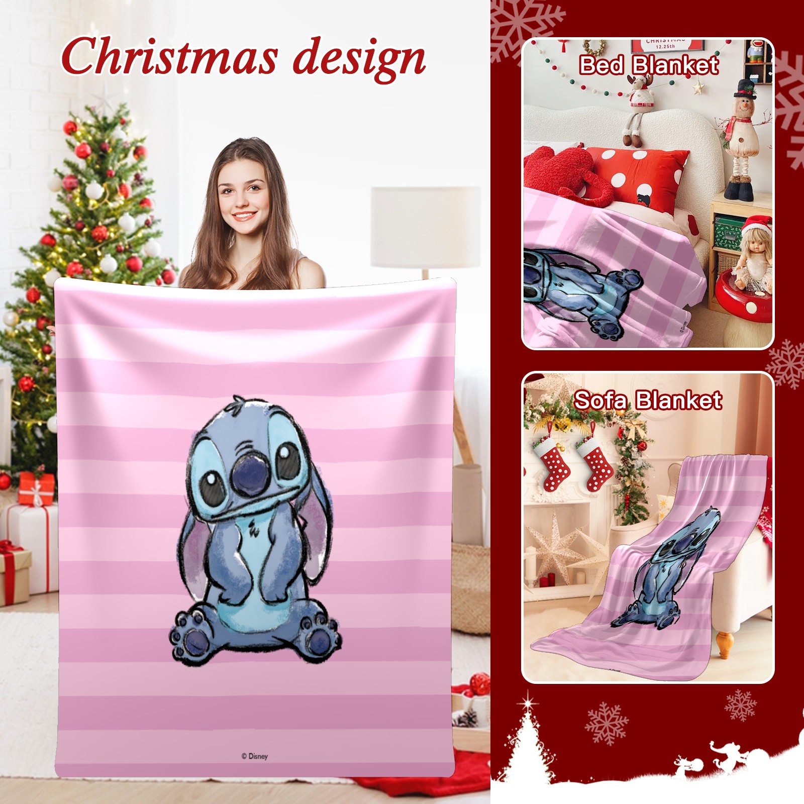 Премиальная фланелевая одеяло Pink Lilo Stitch Stitch Sketch