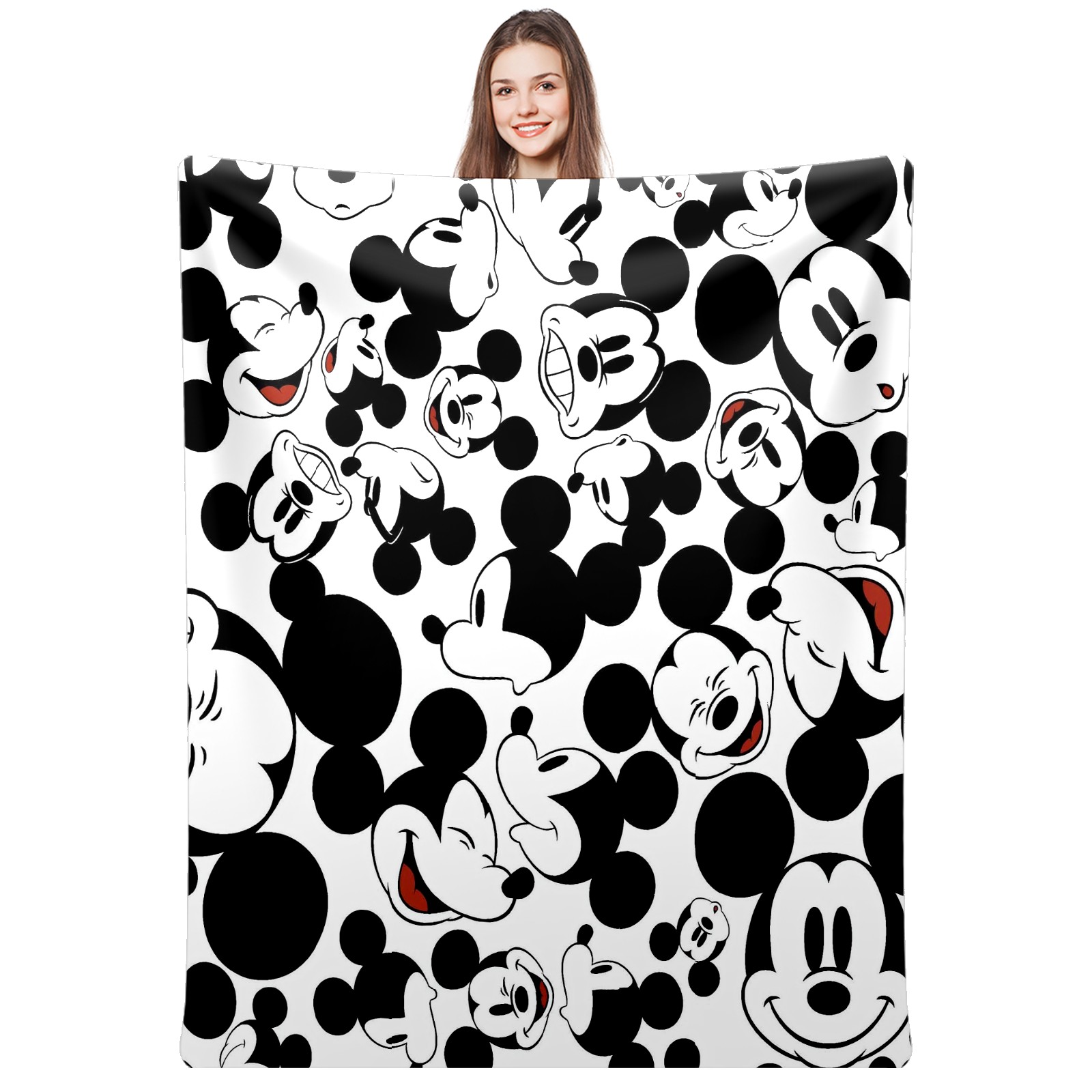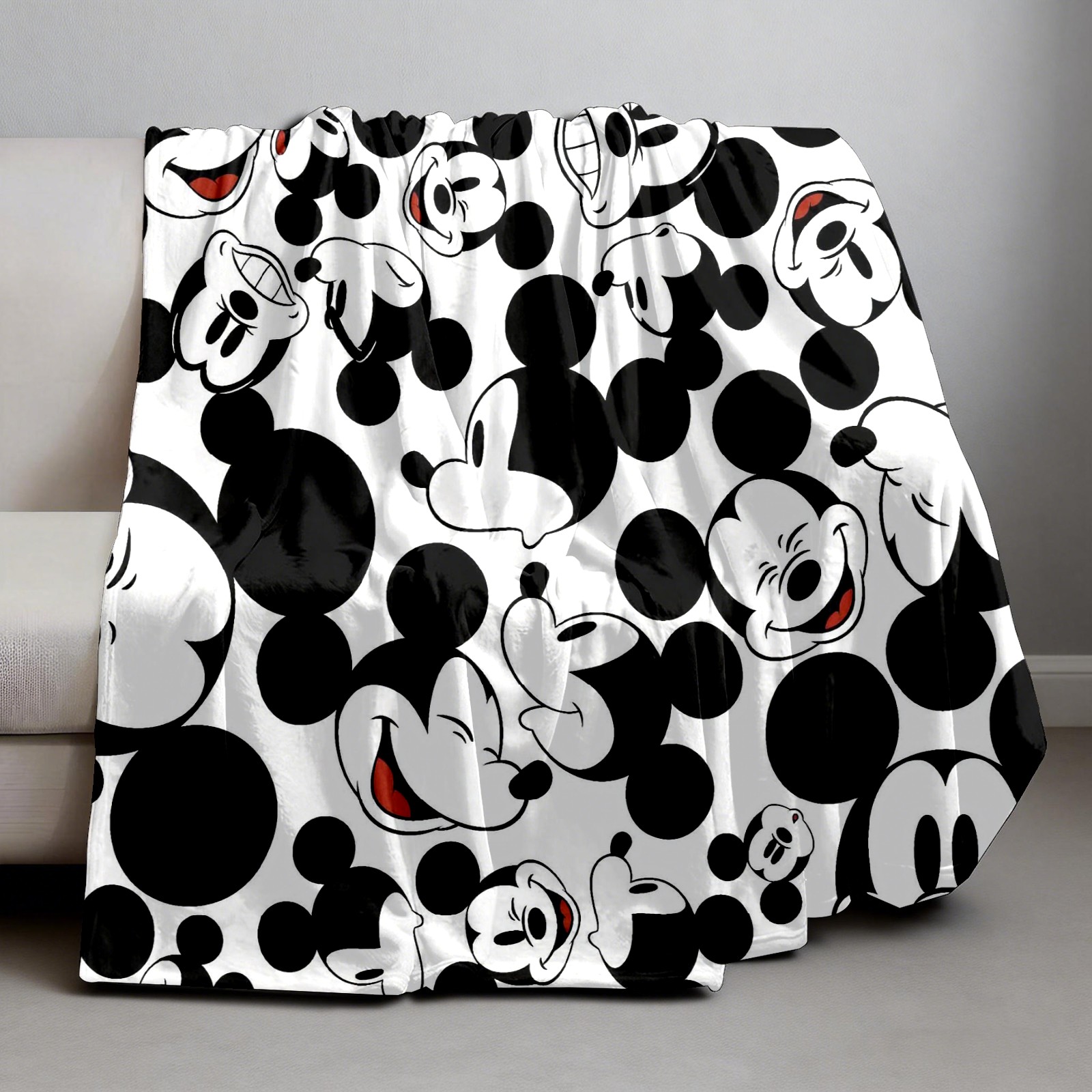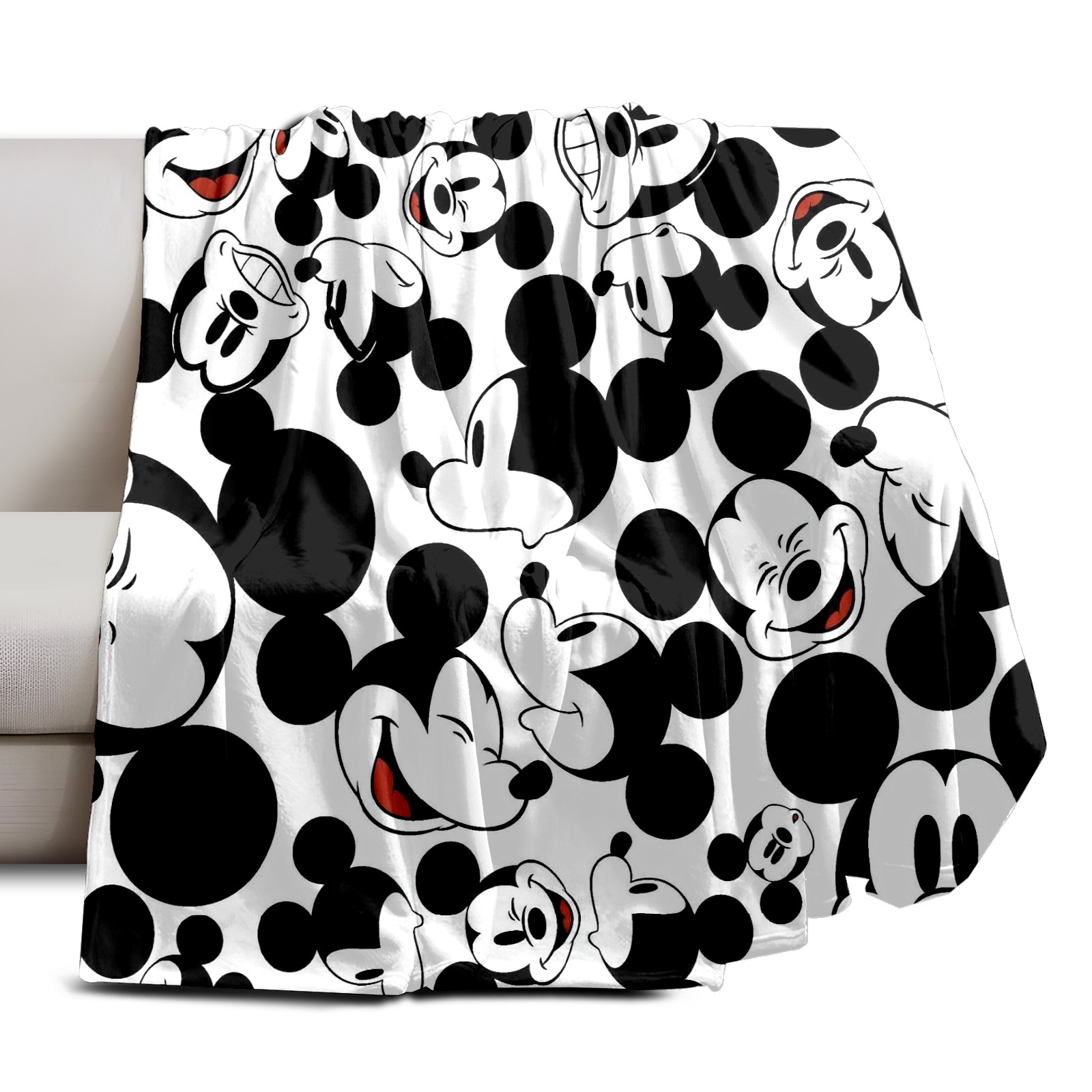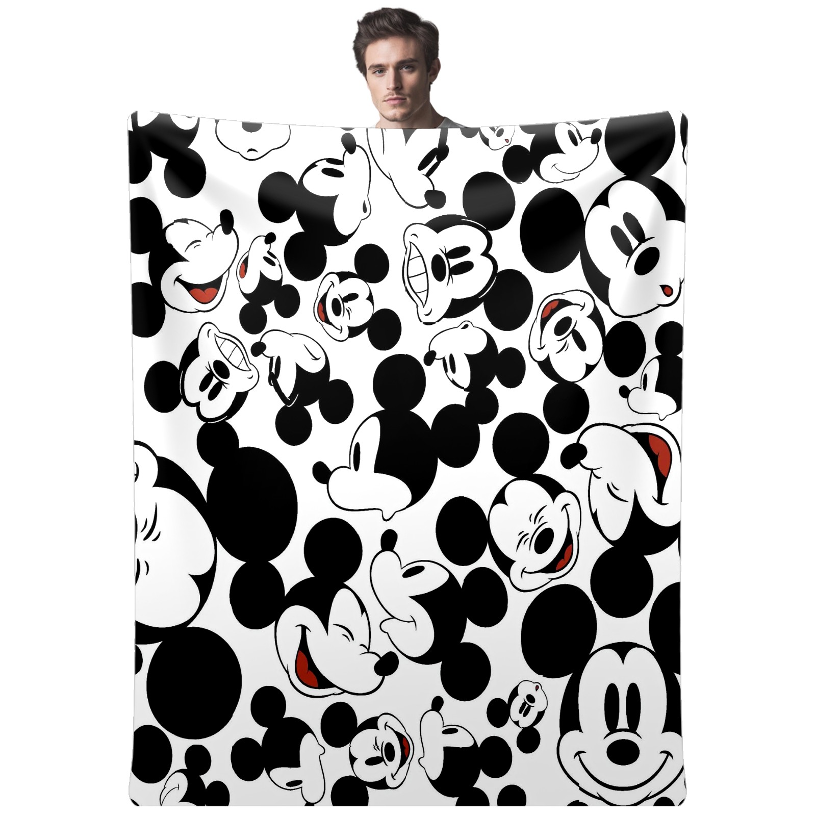 Премиальная фланелевая одеяло Happy Mickey Mouse Black White