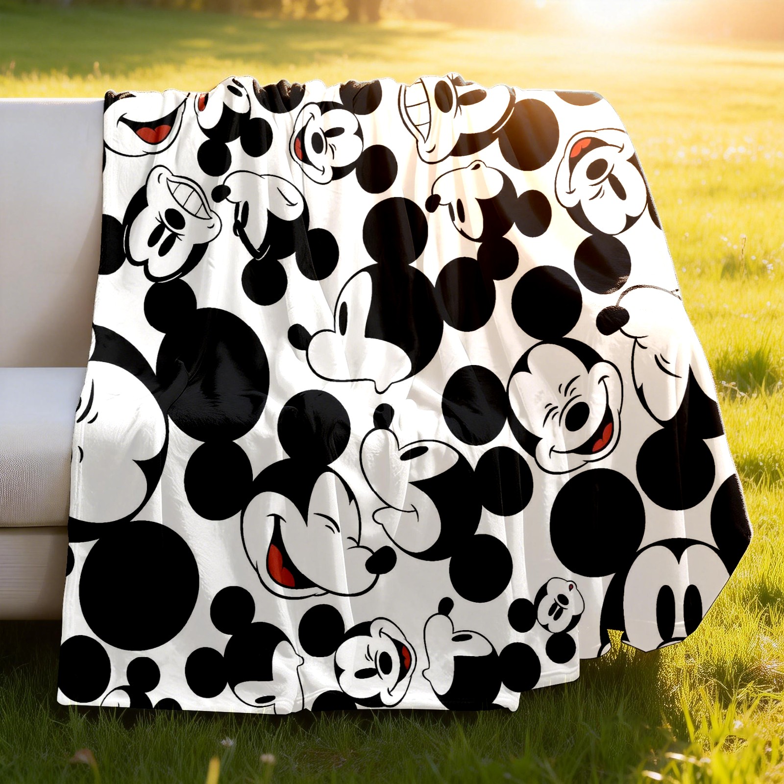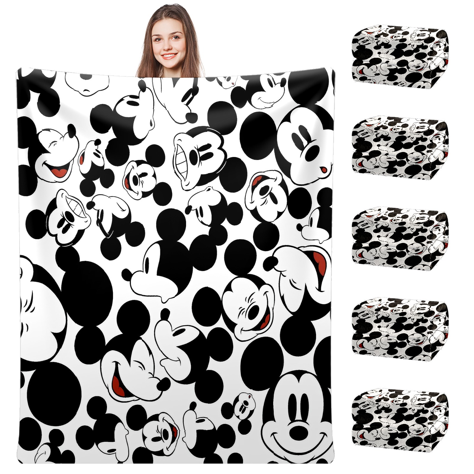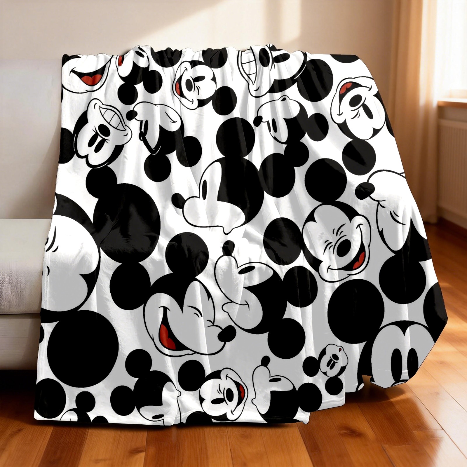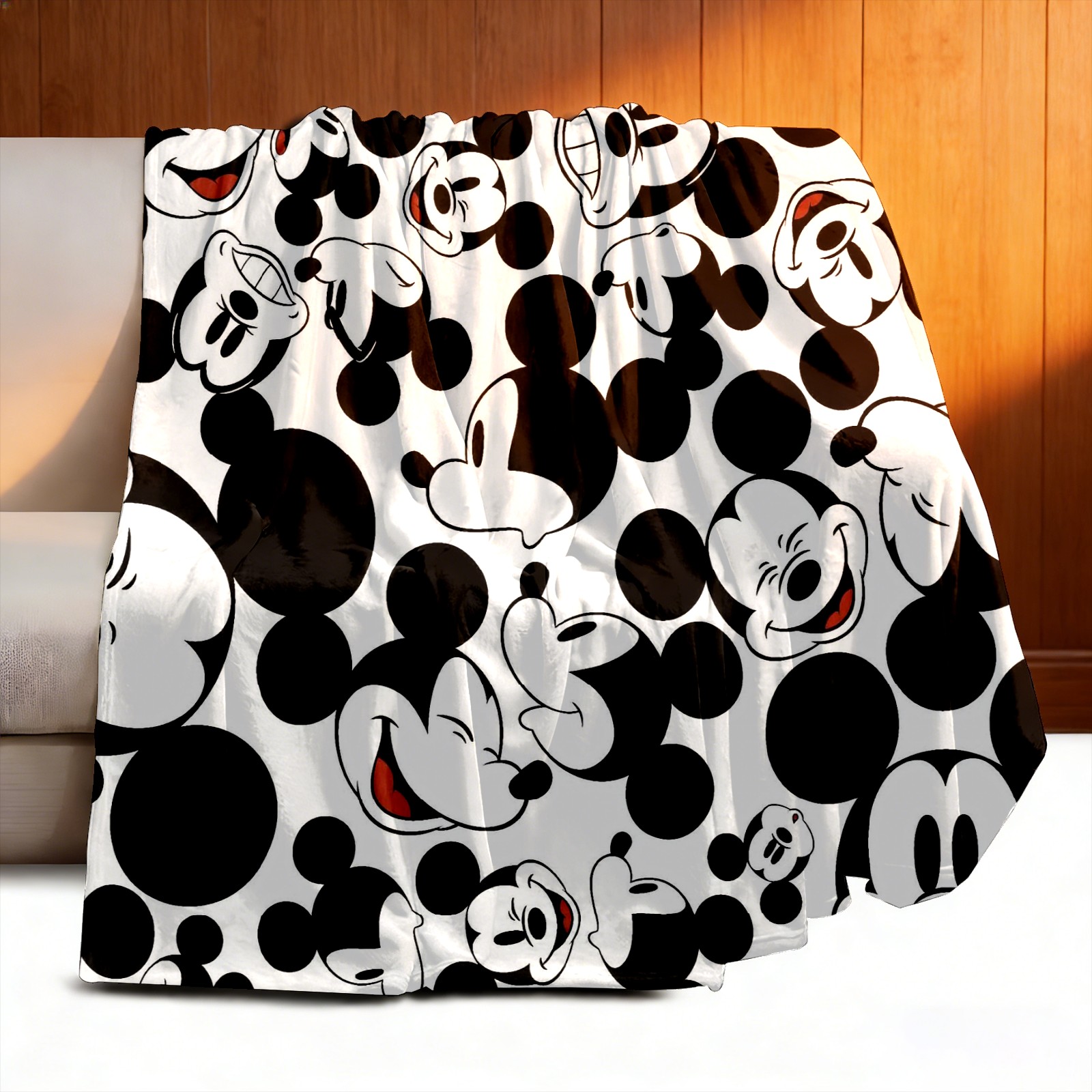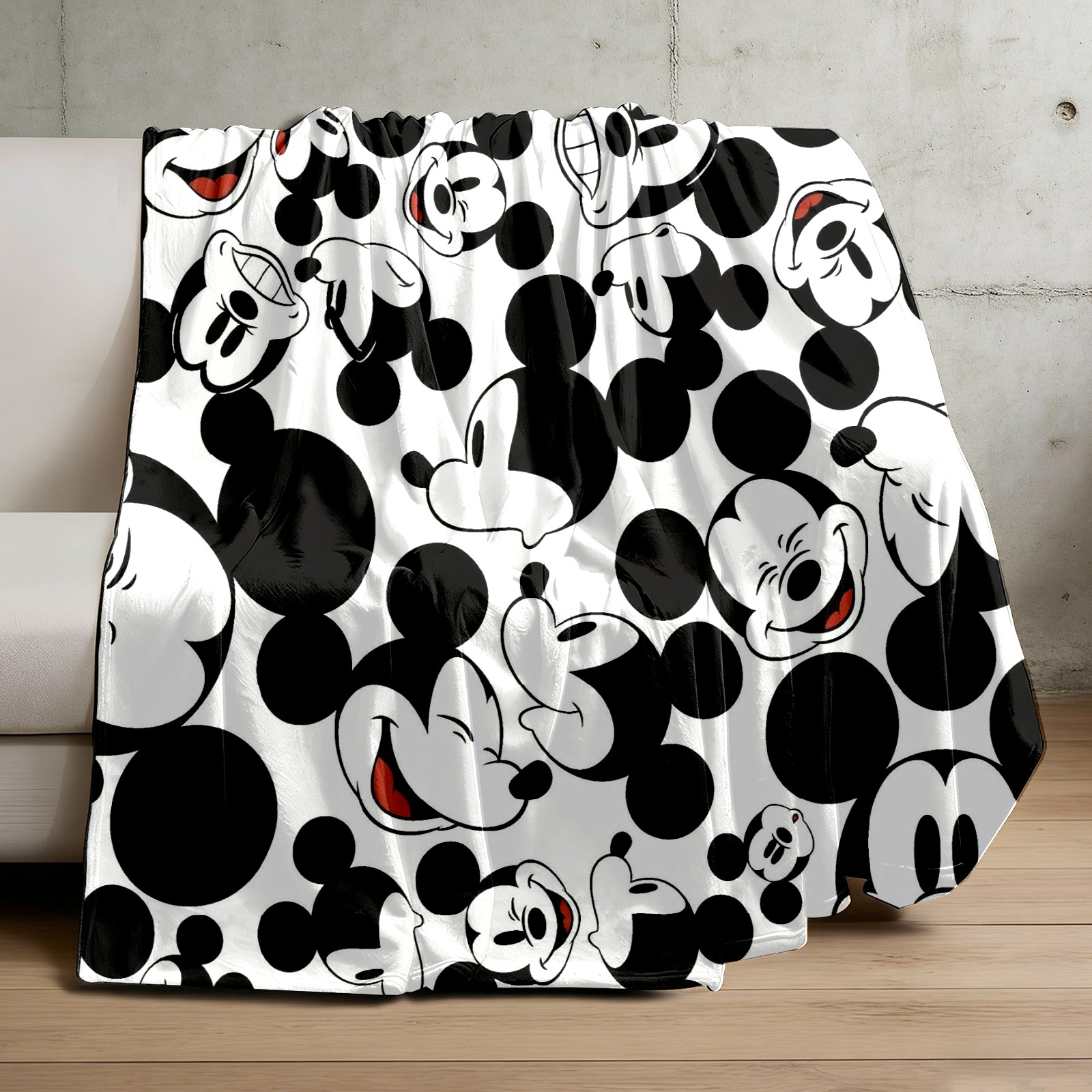 Премиальная фланелевая одеяло Happy Mickey Mouse Black White