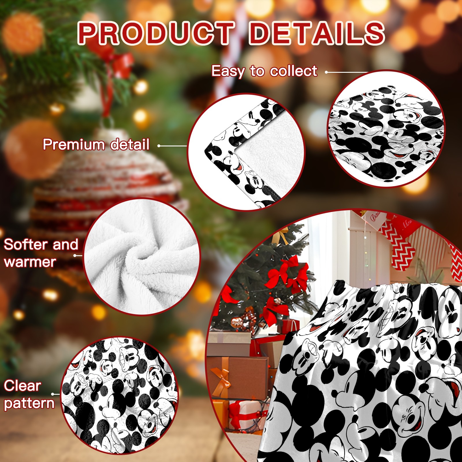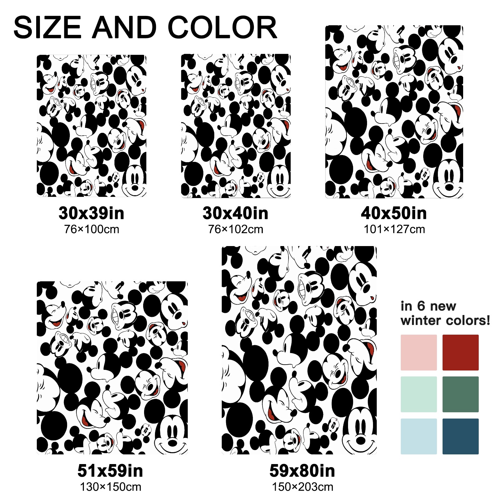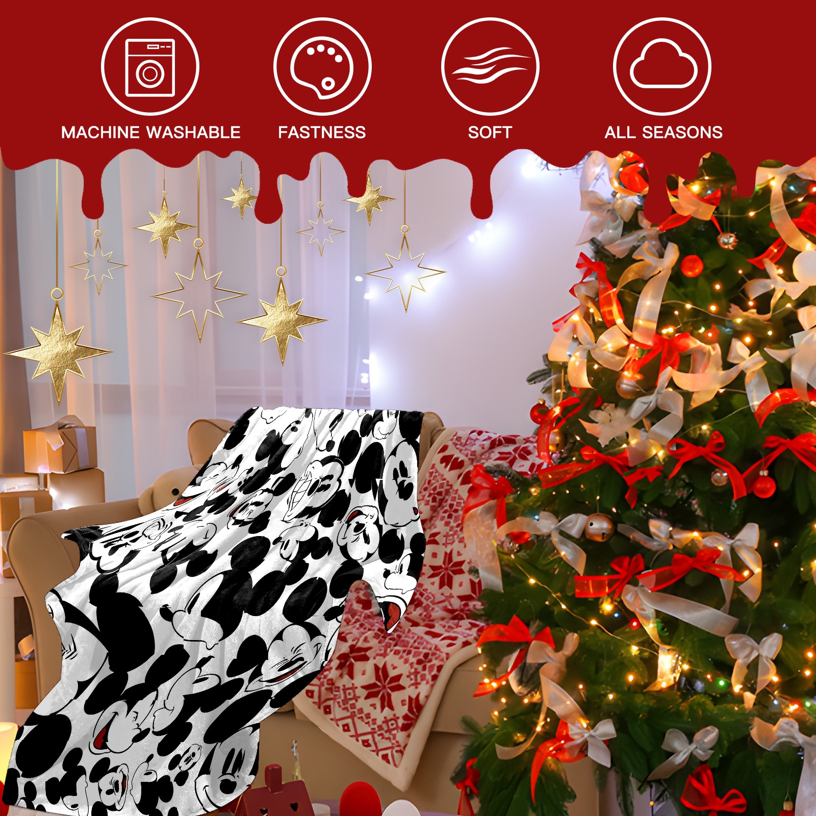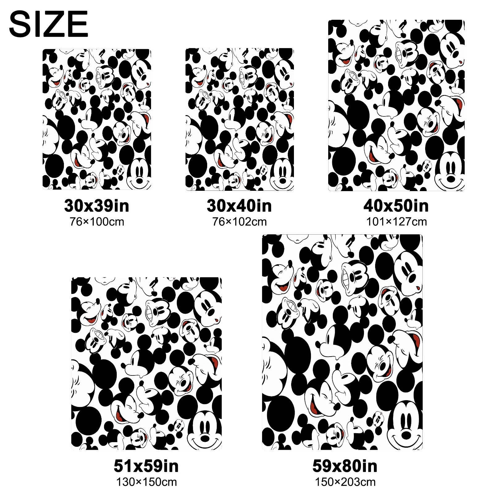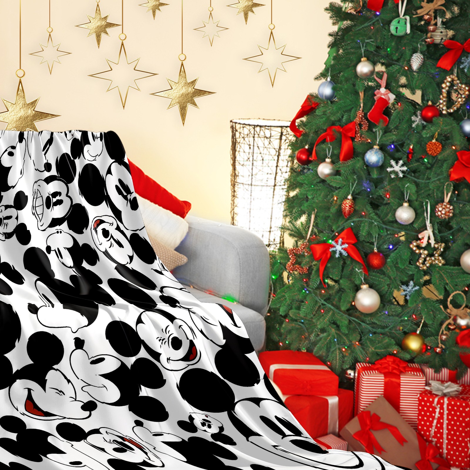 Премиальная фланелевая одеяло Happy Mickey Mouse Black White