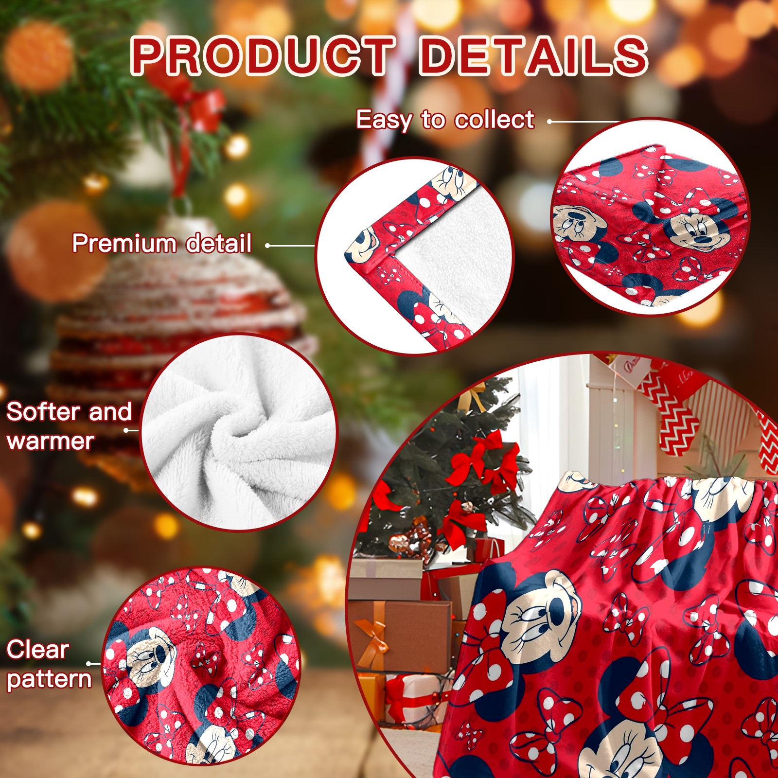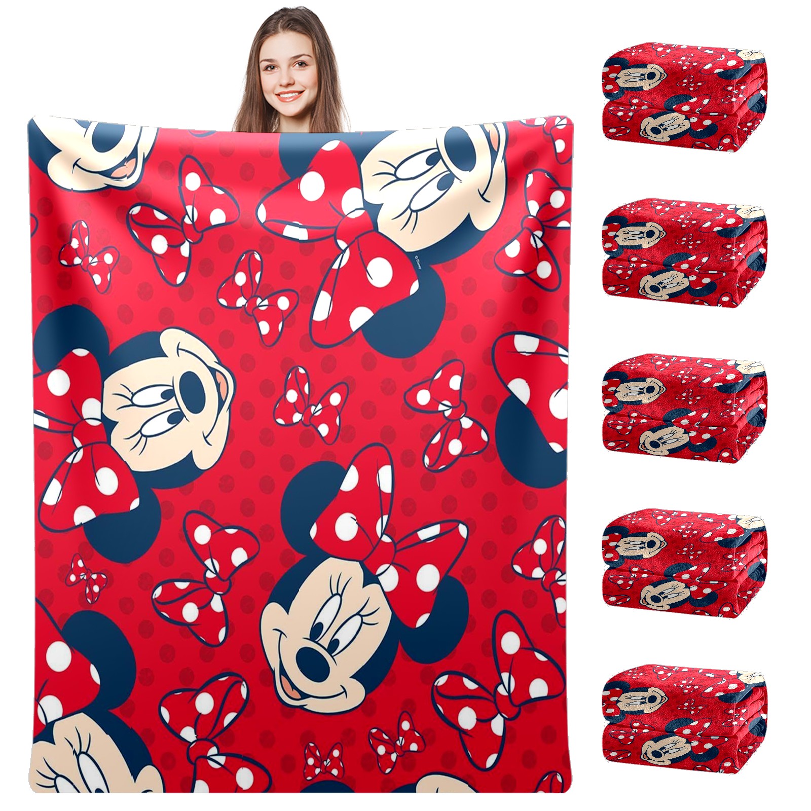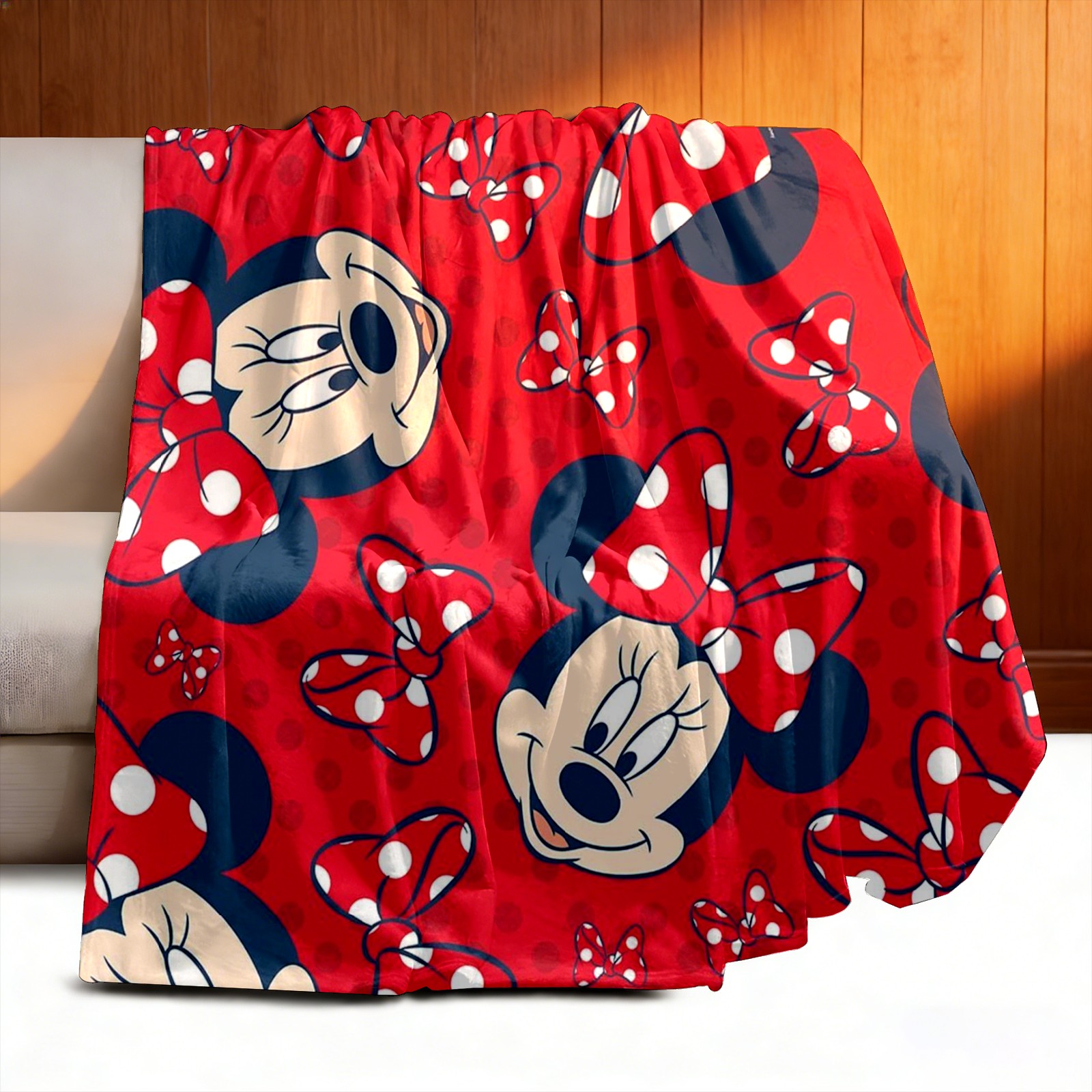 Премиальная фланелевая одеяло Mickey Mouse Minnie With Bow