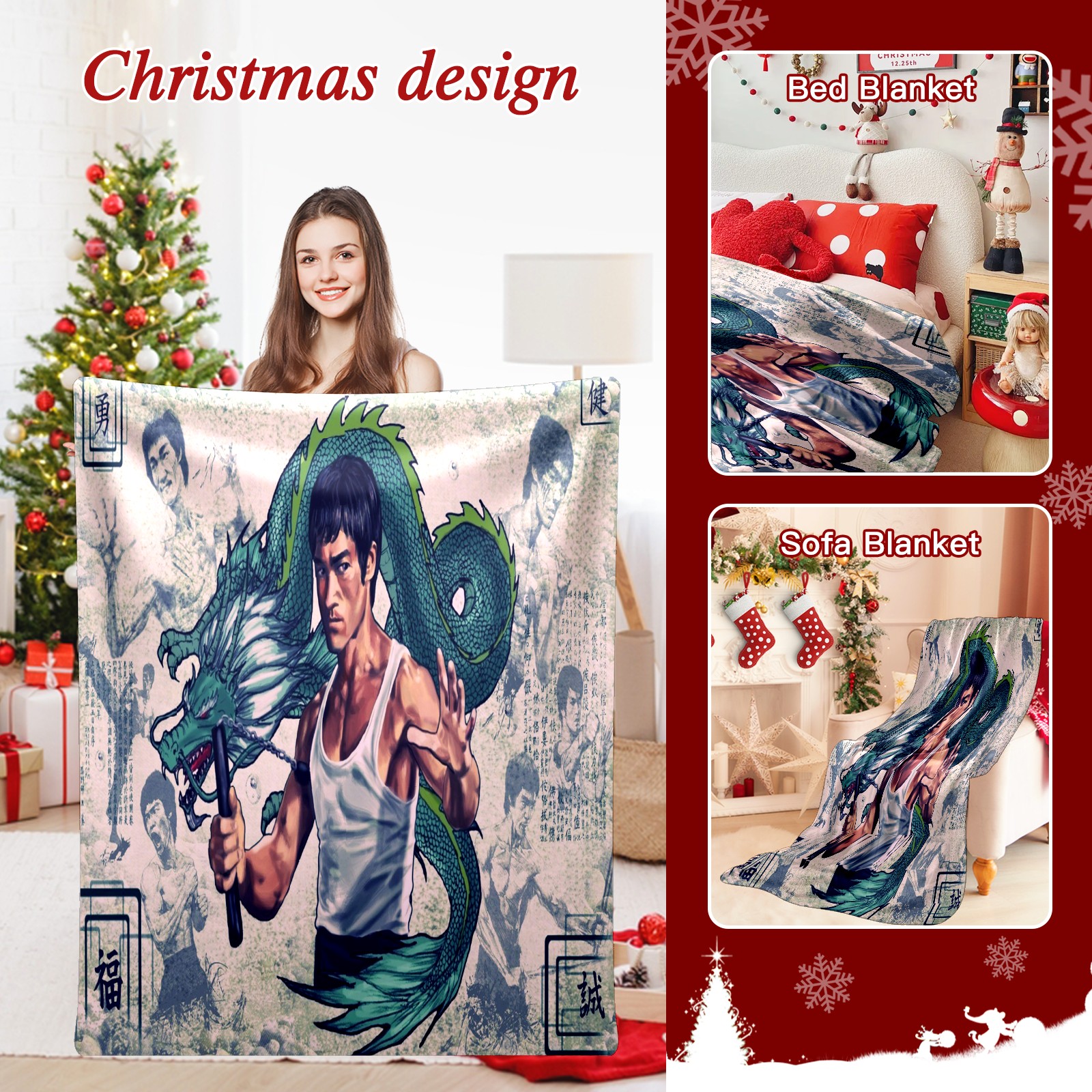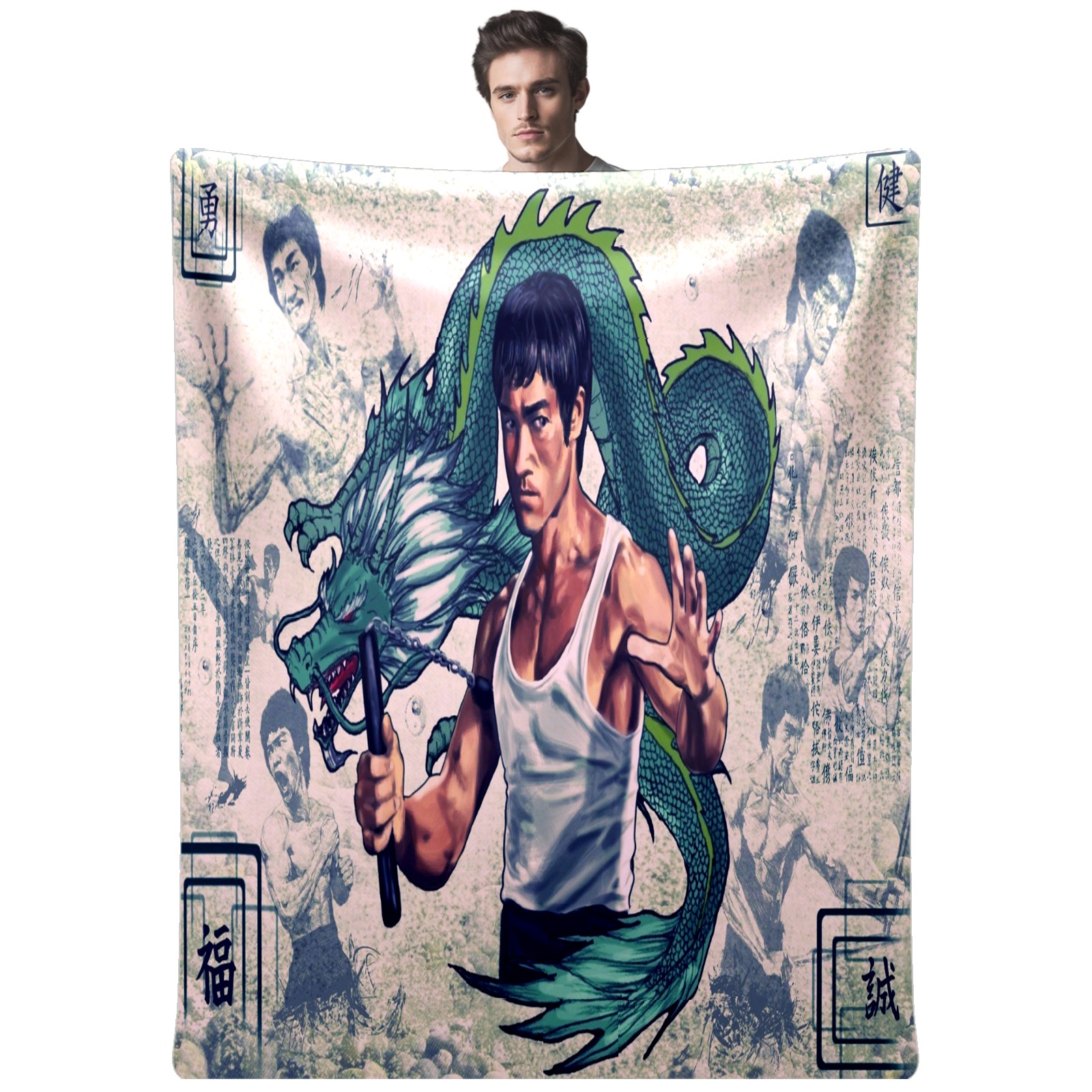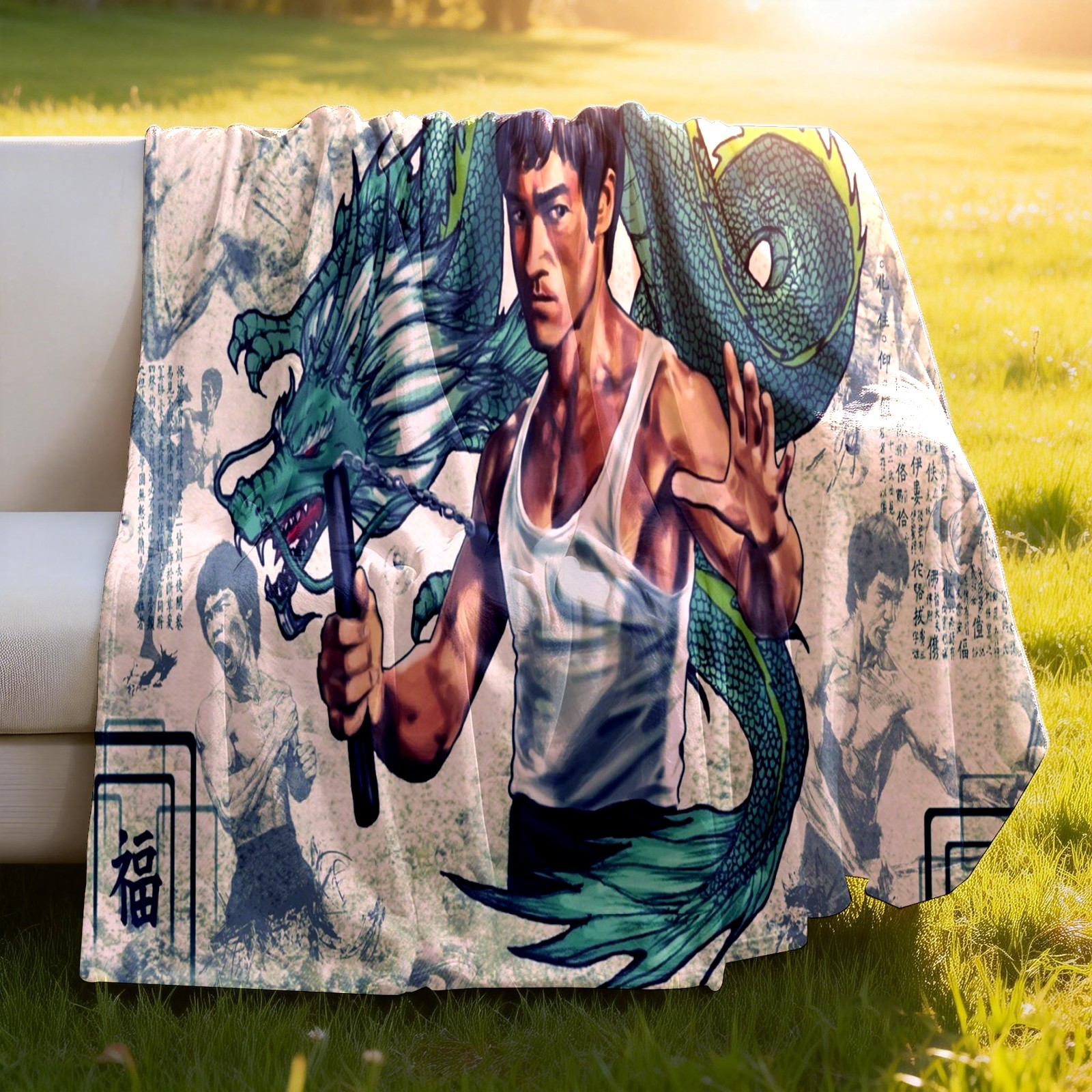 Премиальная фланелевая одеяло Chinese Kung Fu Bruce Lee Dragon