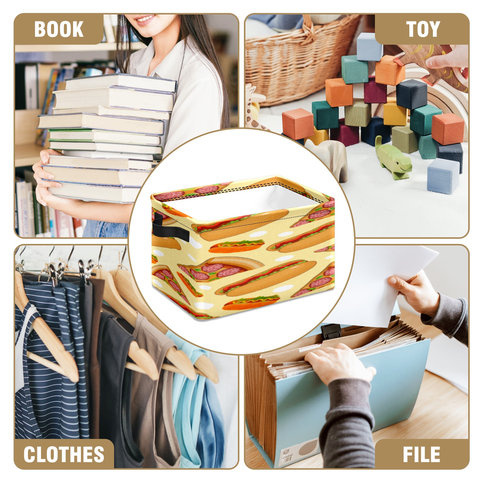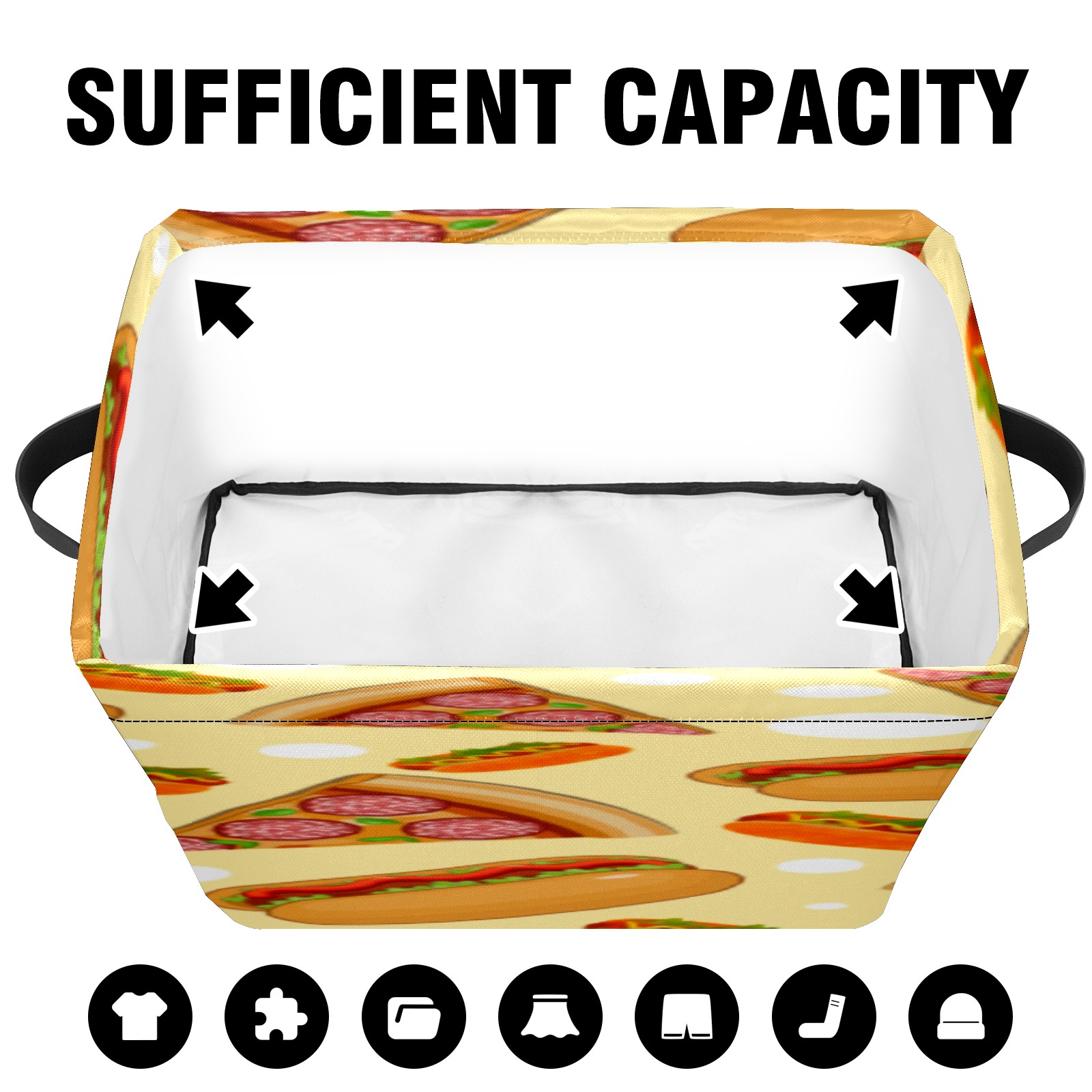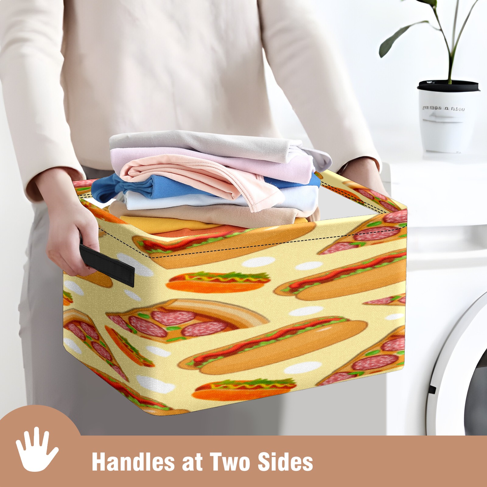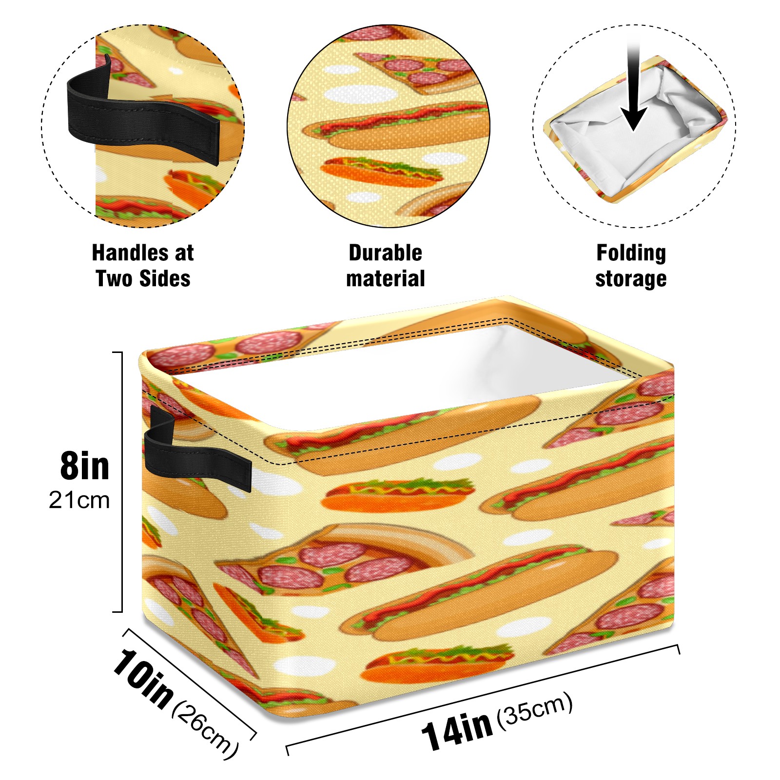【Материал】Оксфордская ткань из полиэстера 600D; ручки изготовлены из полиэстера. 【Описание материала】Внешняя ткань: Оксфордская ткань полотняного переплетения высокой плотности 300D (ПВХ); Подкладка: белая ткань 750D; Ручки: черная композитная ткань 290T. 【Размер】26x35x21 см (10x14x8 дюймов) 【Описание продукта】Эта корзина для хранения с ручками с обеих сторон предлагает достаточно места для хранения предметов разных размеров, что делает ее подходящей для различных случаев, таких как дом, офис и школа. Ручки с обеих сторон закреплены гвоздями для долговечности. Прочный металлический каркас окружает корзину, поддерживая ее форму. Складная корзина для хранения: Наши корзины для хранения легко складываются, когда не используются. Эти ящики для хранения изготовлены из легко моющейся оксфордской ткани и при необходимости могут быть аккуратно протерты мягким мылом и водой. Из-за внутреннего металлического каркаса и жесткого дна машинная стирка не рекомендуется. 【Подходящие сценарии использования】Дом, офис и школа 【Инструкции по стирке】Рекомендуется ручная стирка; избегайте длительного воздействия прямых солнечных лучей.