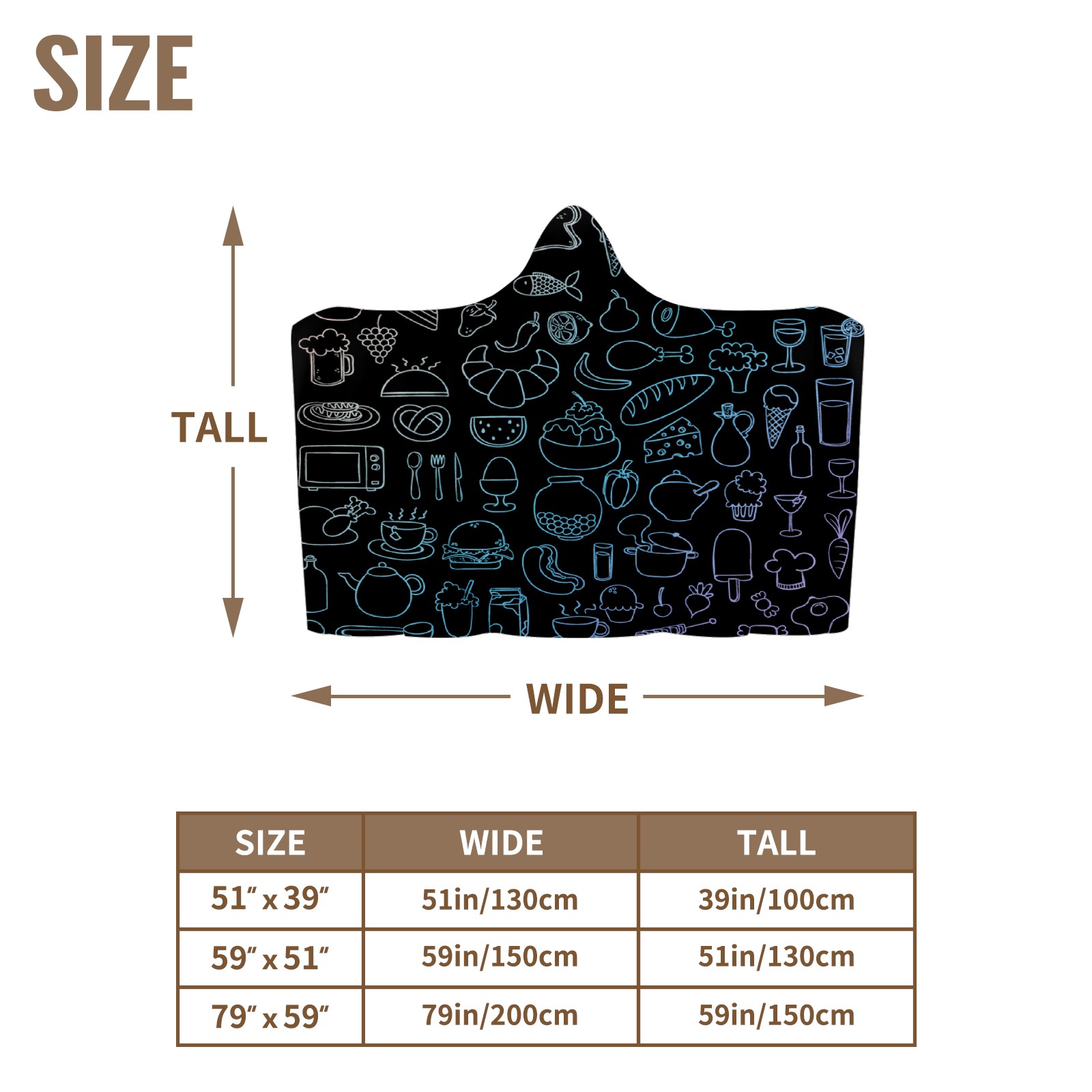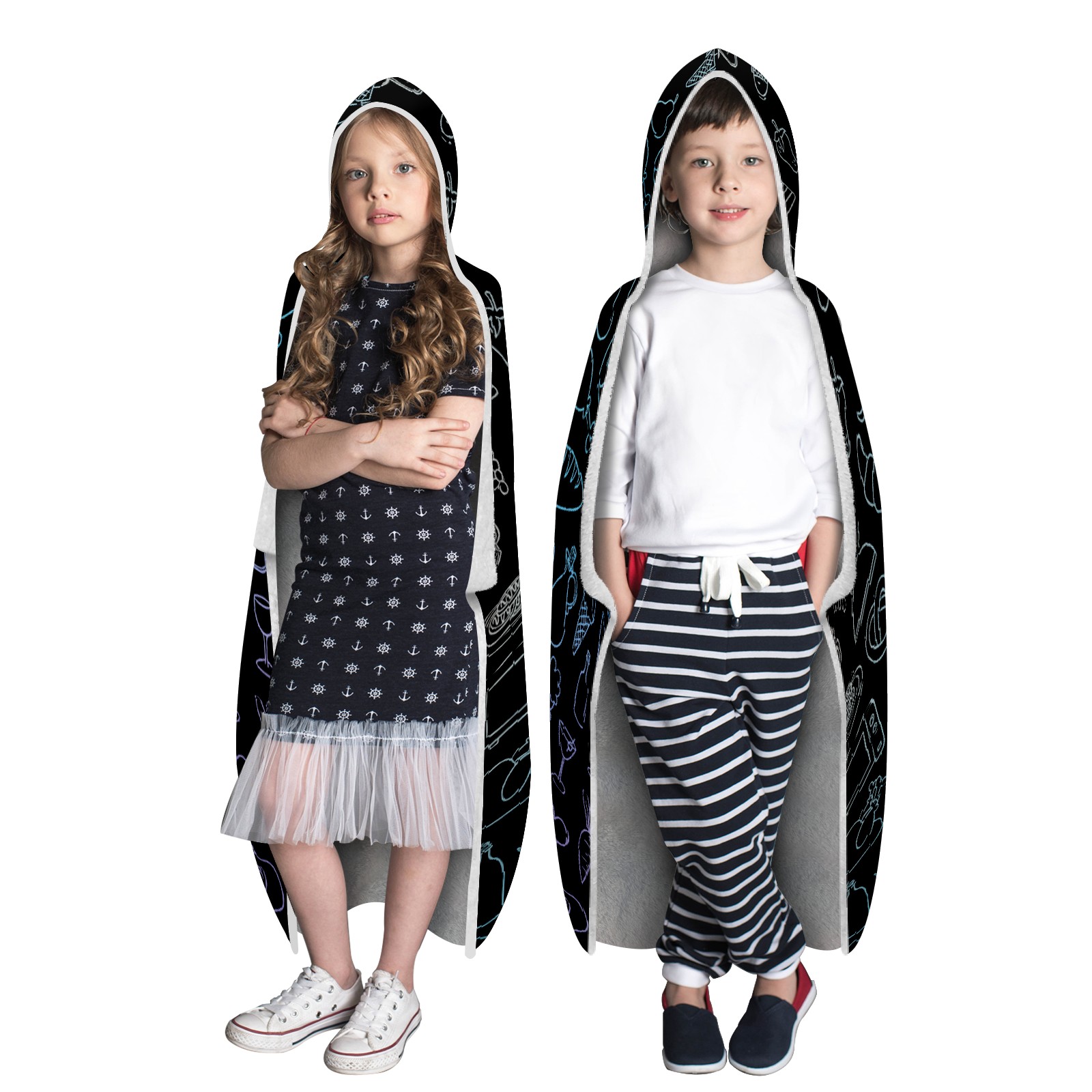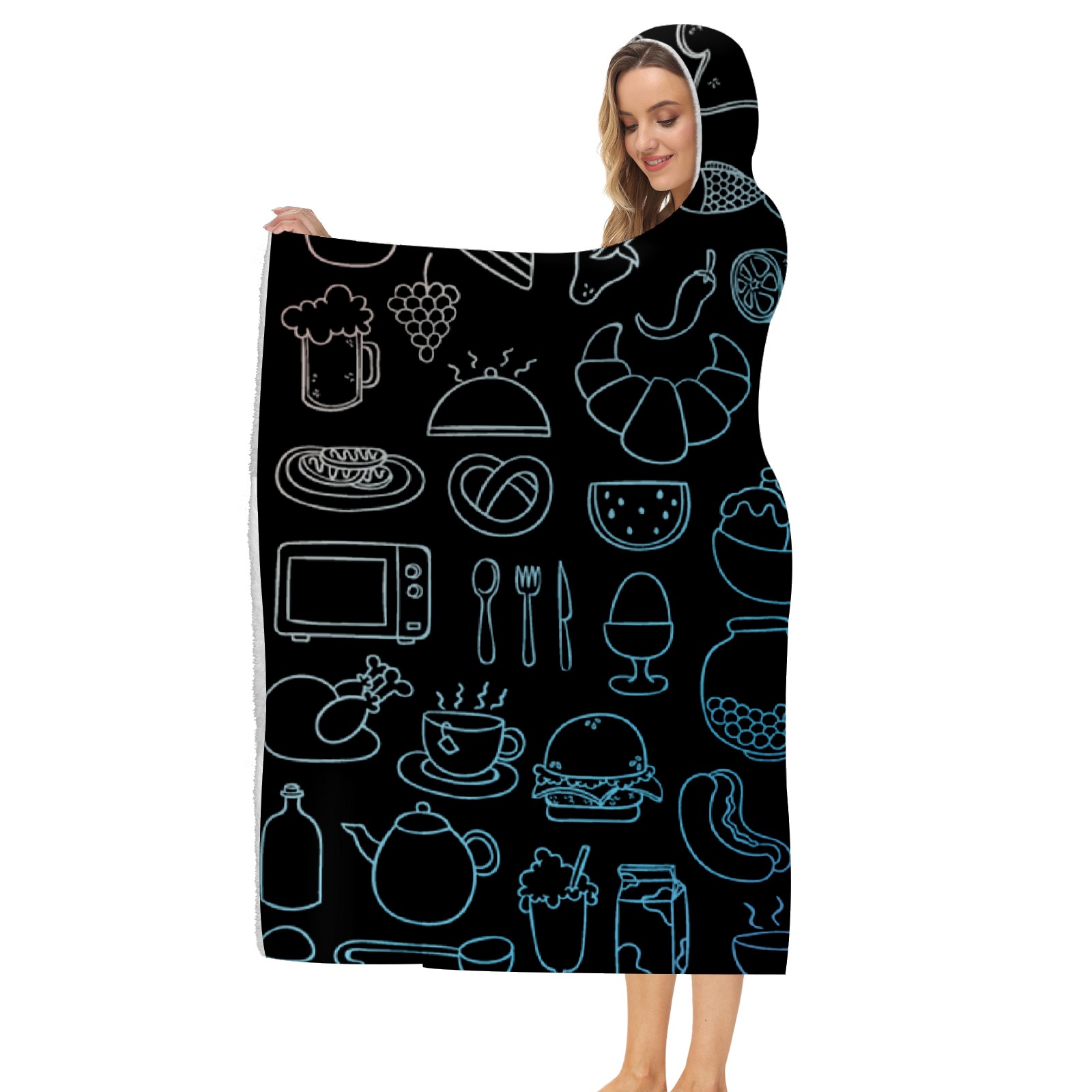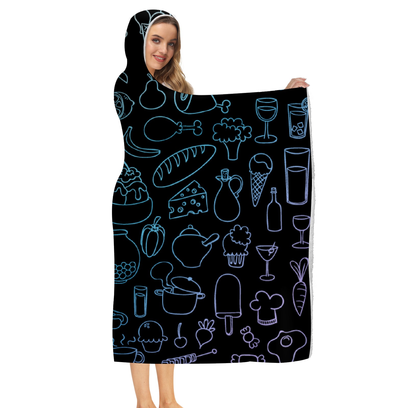 【Материал】Полиэстер + коралловый флис 【Принт】Напечатано на лицевой стороне 【Размер】100x130 см/39x51 дюйм 130x150 см/51x59 дюймов 150x200 см/59x79 дюймов 【Подходящие случаи】Пушистое одеяло с капюшоном, действительно большого размера, подходит как для мужчин, так и для женщин. Теплое и уютное, идеально подходит для приятного времяпрепровождения. Идеально подходит для отдыха дома, просмотра телевизора, игр, чтения, сна или любых походов и мероприятий на природе. Капюшон одеяла закрывает плечи и руки, позволяя свободно двигаться и использовать руки. Идеальный размер как для женщин, так и для мужчин. Прекрасный и продуманный подарок для семьи, друзей и партнеров. 【Рекомендации по стирке】Машинная стирка, не отбеливать, сушить в сушилке при низкой температуре.