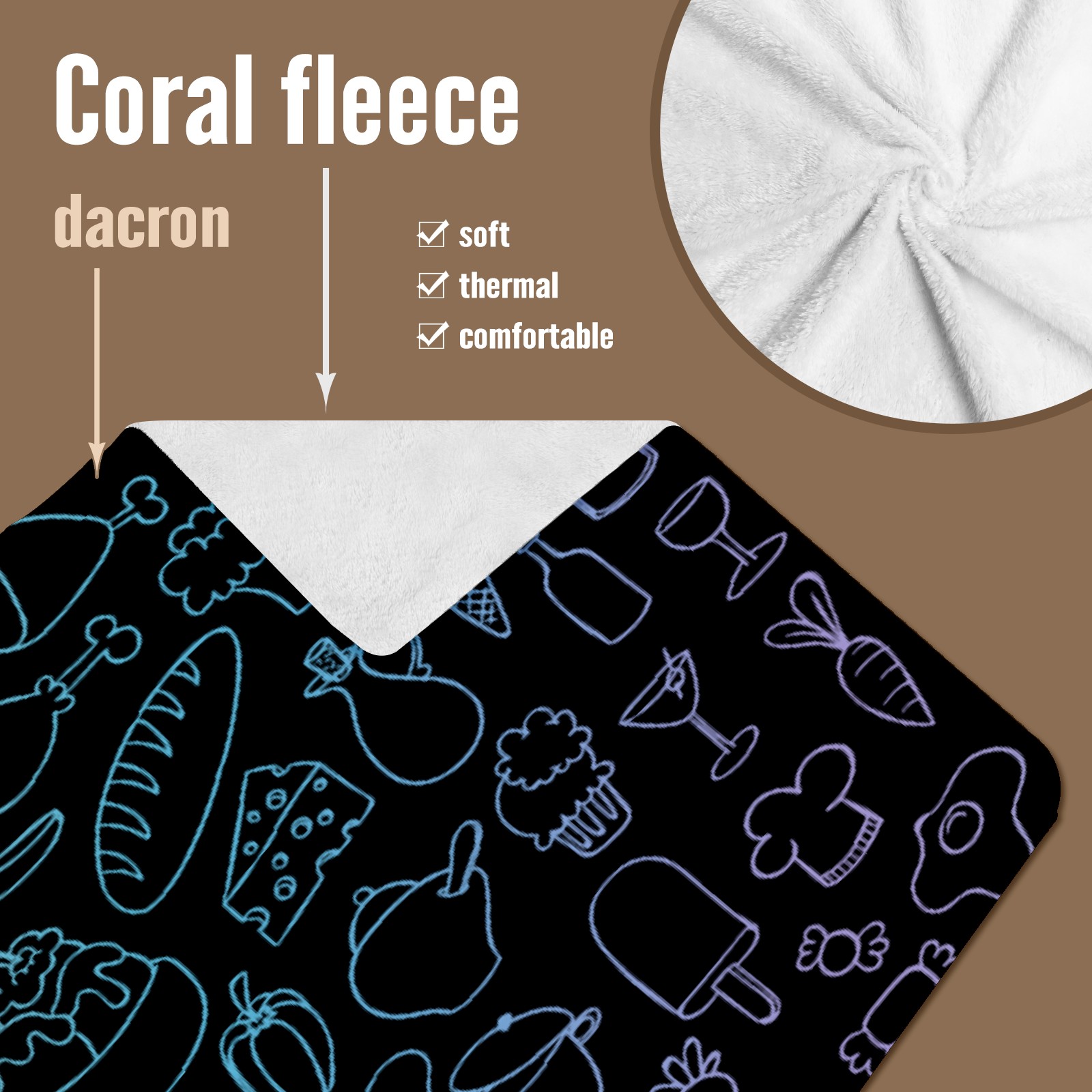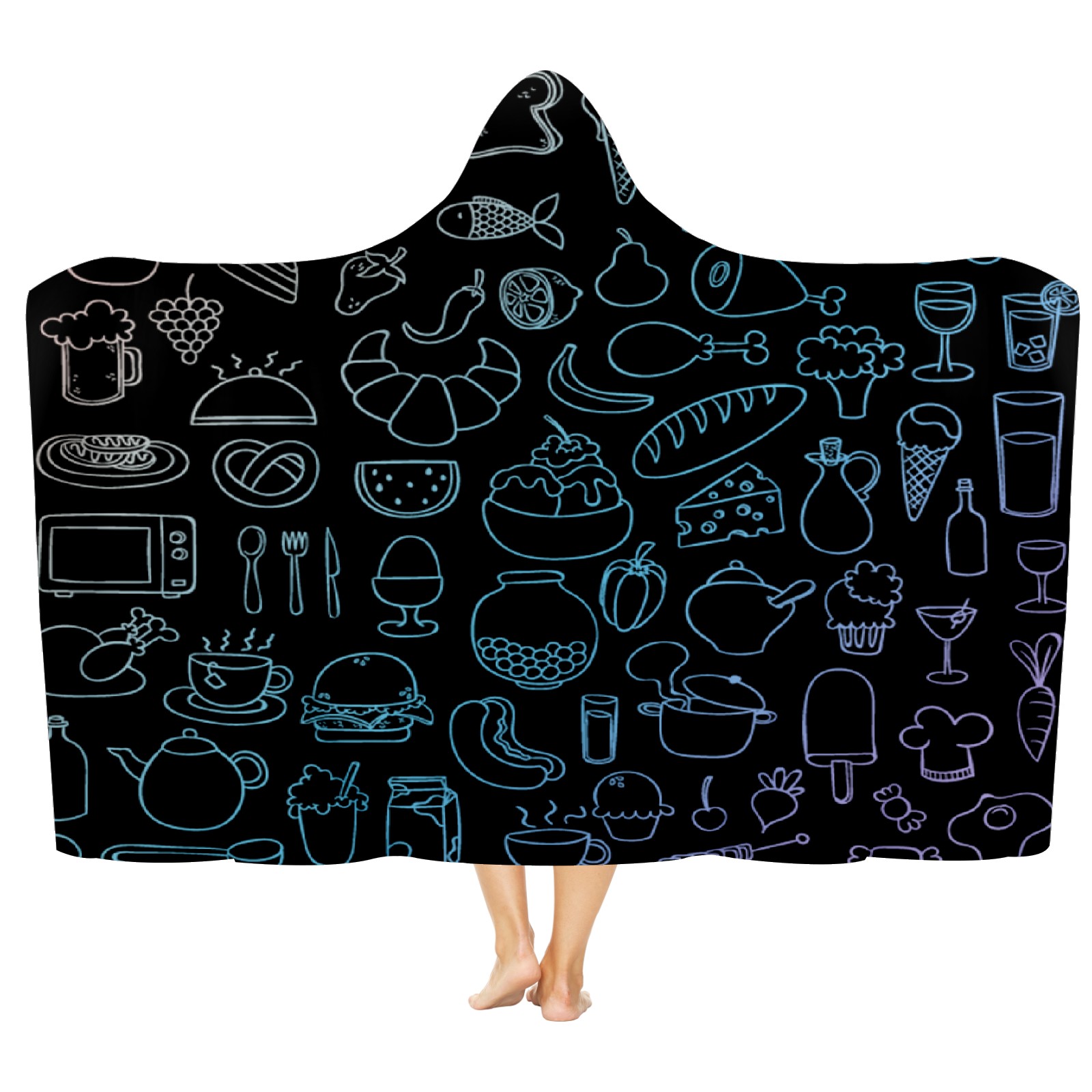 • 【Материал】Полиэстер + коралловый флис 【Принт】Напечатано на лицевой стороне 【Размер】100x130 см/39x51 дюйм 130x150 см/51x59 дюймов 150x200 см/59x79 дюймов 【Подходящие случаи】Пушистое одеяло с капюшоном, действительно большого размера, подходит как для мужчин, так и для женщин. Теплое и уютное, идеально подходит для приятного времяпрепровождения. Идеально подходит для отдыха дома, просмотра телевизора, игр, чтения, сна или любых походов и мероприятий на природе. Капюшон одеяла закрывает плечи и руки, позволяя свободно двигаться и использовать руки. Идеальный размер как для женщин, так и для мужчин. Прекрасный и продуманный подарок для семьи, друзей и партнеров. 【Рекомендации по стирке】Машинная стирка, не отбеливать, сушить в сушилке при низкой температуре.