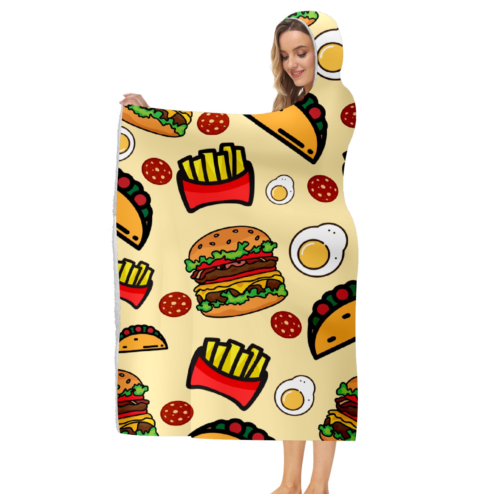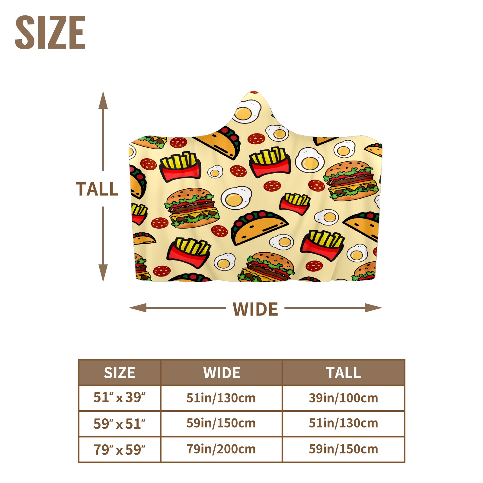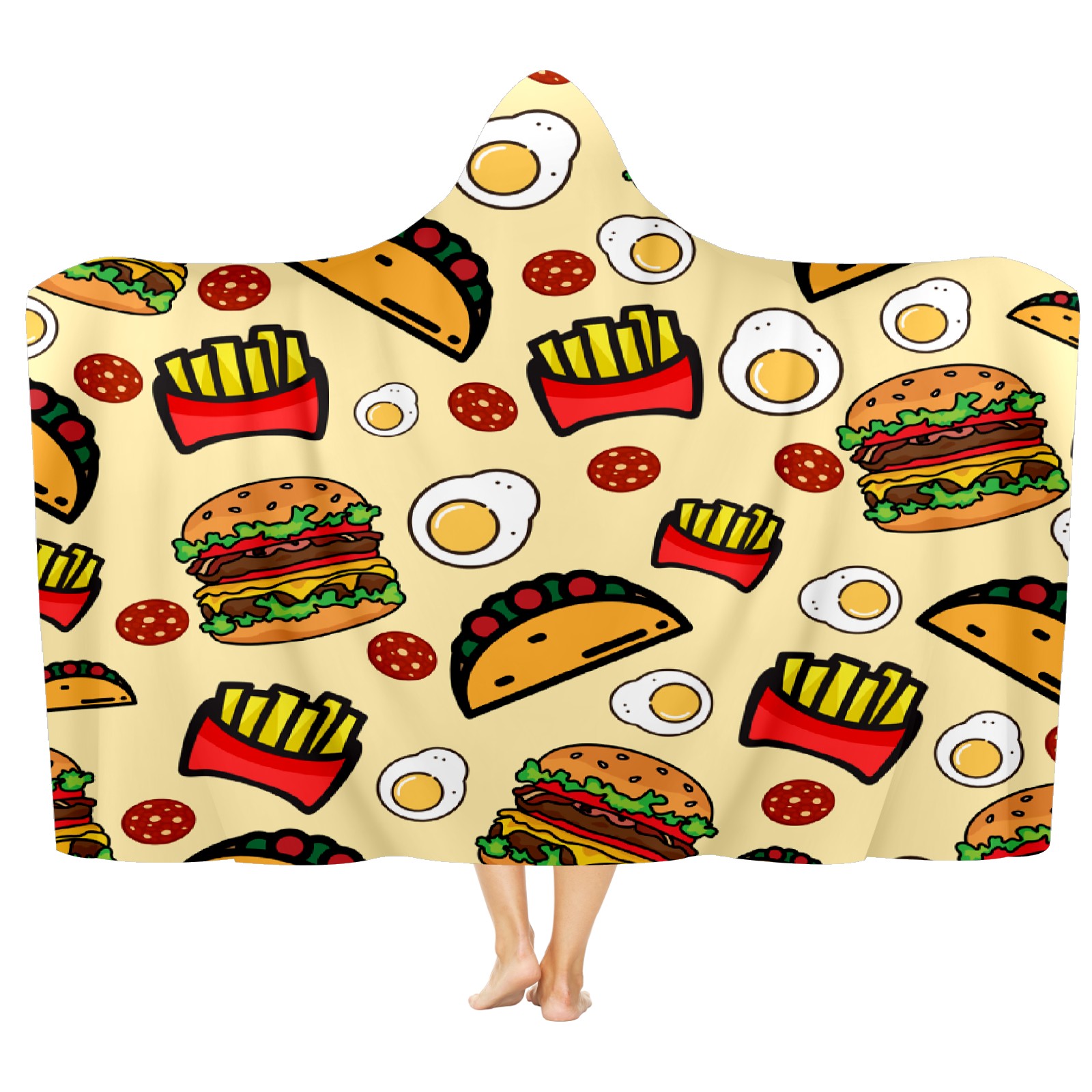【Материал】Полиэстер + коралловый флис 【Принт】Напечатано на лицевой стороне 【Размер】100x130 см/39x51 дюйм 130x150 см/51x59 дюймов 150x200 см/59x79 дюймов 【Подходящие случаи】Пушистое одеяло с капюшоном, действительно большого размера, подходит как для мужчин, так и для женщин. Теплое и уютное, идеально подходит для приятного времяпрепровождения. Идеально подходит для отдыха дома, просмотра телевизора, игр, чтения, сна или любых походов и мероприятий на природе. Капюшон одеяла закрывает плечи и руки, позволяя свободно двигаться и использовать руки. Идеальный размер как для женщин, так и для мужчин. Прекрасный и продуманный подарок для семьи, друзей и партнеров. 【Рекомендации по стирке】Машинная стирка, не отбеливать, сушить в сушилке при низкой температуре.