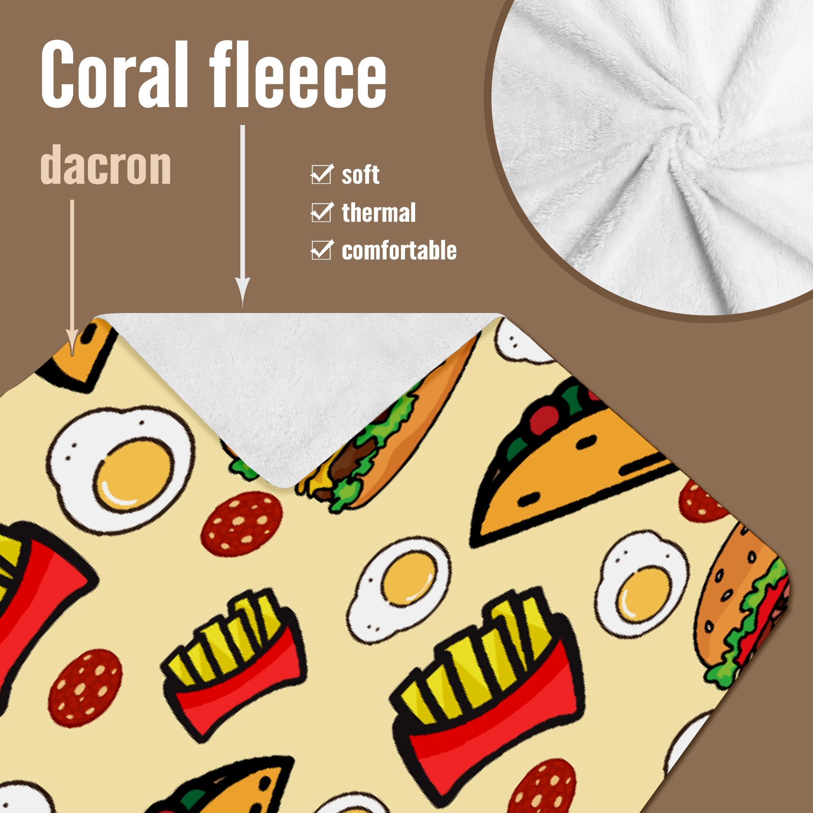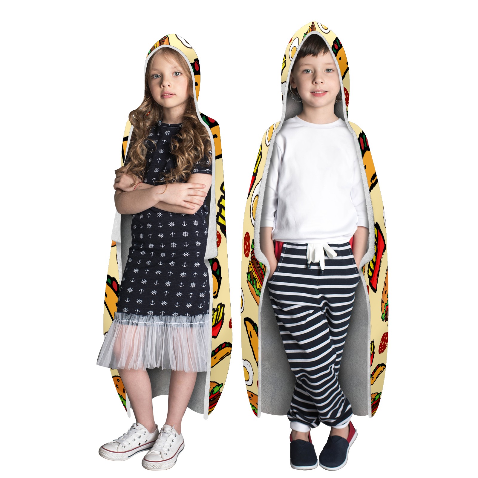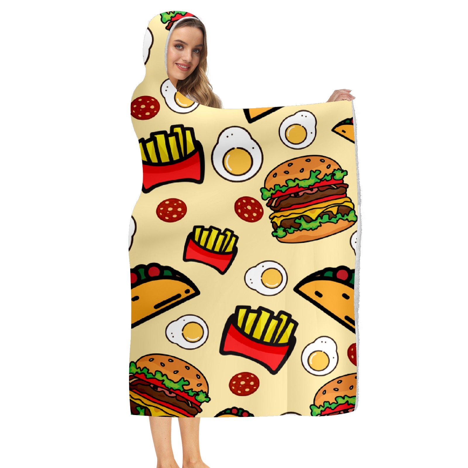 【Материал】Полиэстер + коралловый флис 【Принт】Напечатано на лицевой стороне 【Размер】100x130 см/39x51 дюйм 130x150 см/51x59 дюймов 150x200 см/59x79 дюймов 【Подходящие случаи】Пушистое одеяло с капюшоном, действительно большого размера, подходит как для мужчин, так и для женщин. Теплое и уютное, идеально подходит для приятного времяпрепровождения. Идеально подходит для отдыха дома, просмотра телевизора, игр, чтения, сна или любых походов и мероприятий на природе. Капюшон одеяла закрывает плечи и руки, позволяя свободно двигаться и использовать руки. Идеальный размер как для женщин, так и для мужчин. Прекрасный и продуманный подарок для семьи, друзей и партнеров. 【Рекомендации по стирке】Машинная стирка, не отбеливать, сушить в сушилке при низкой температуре.