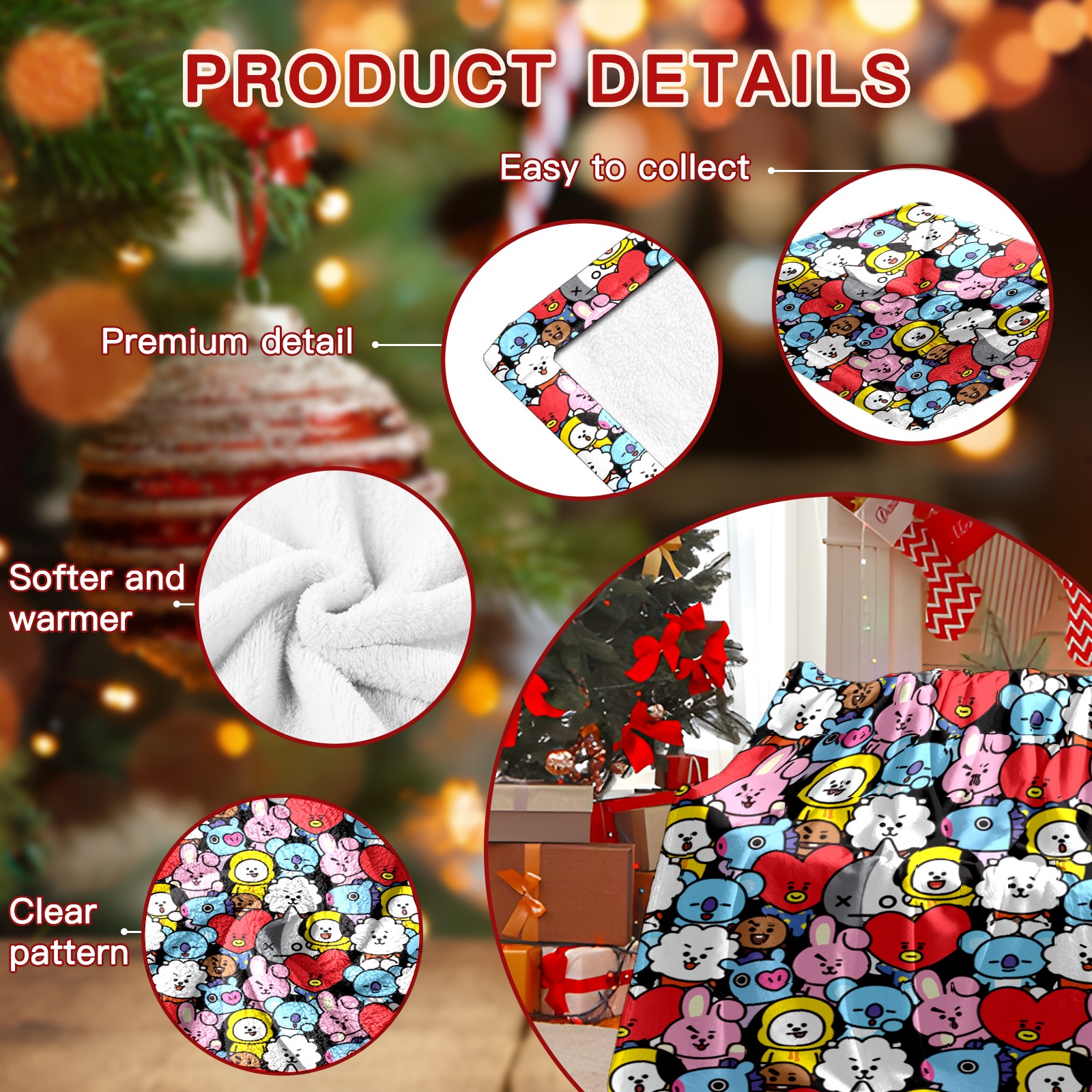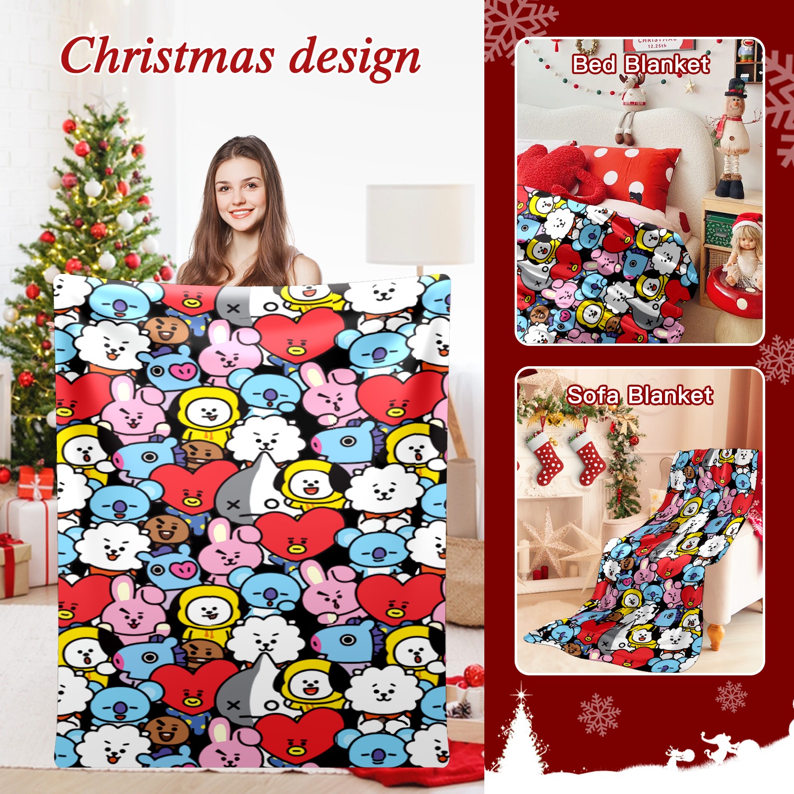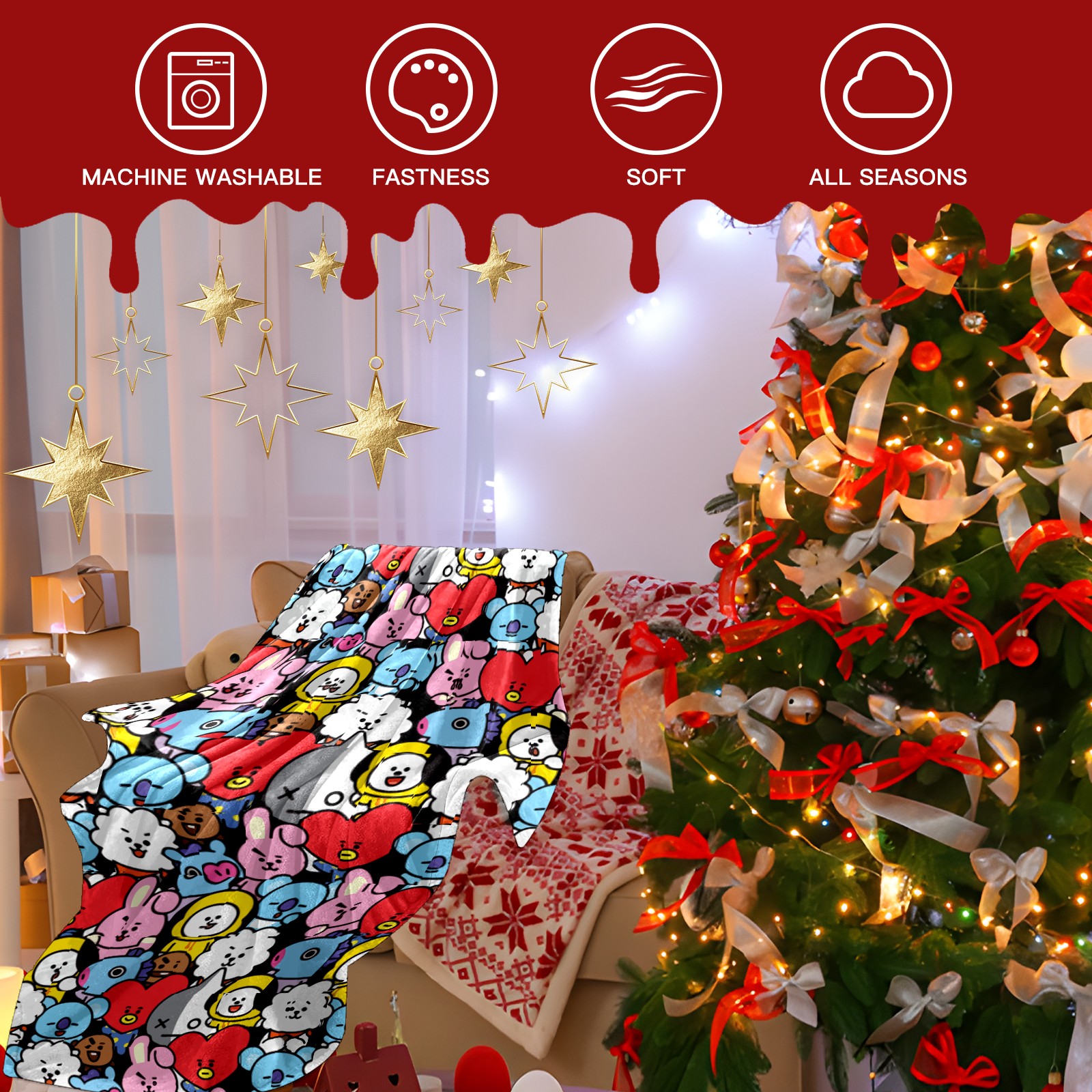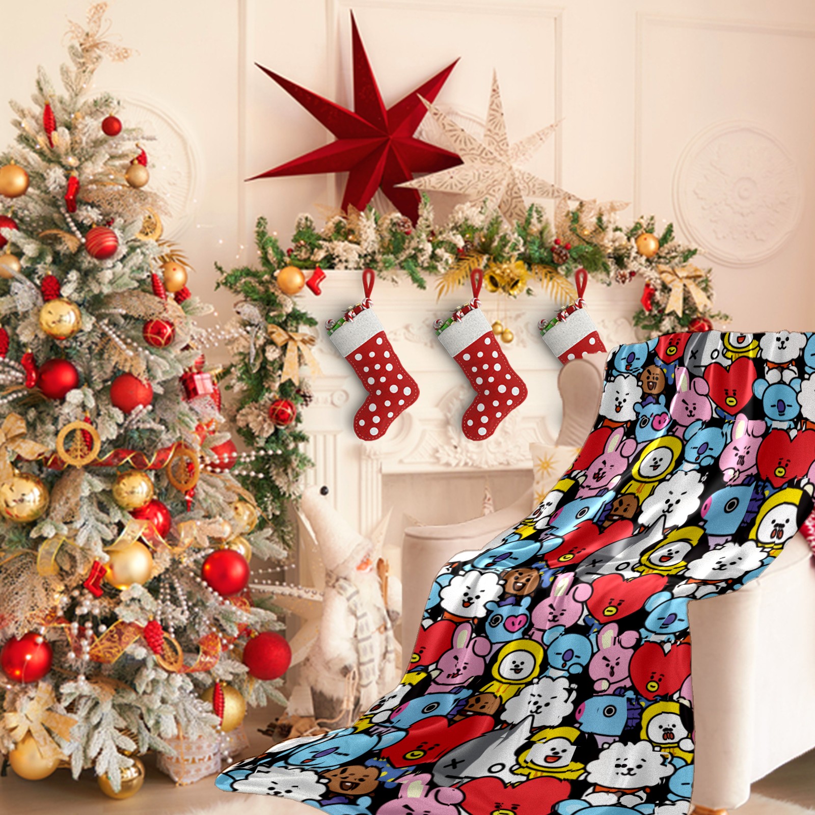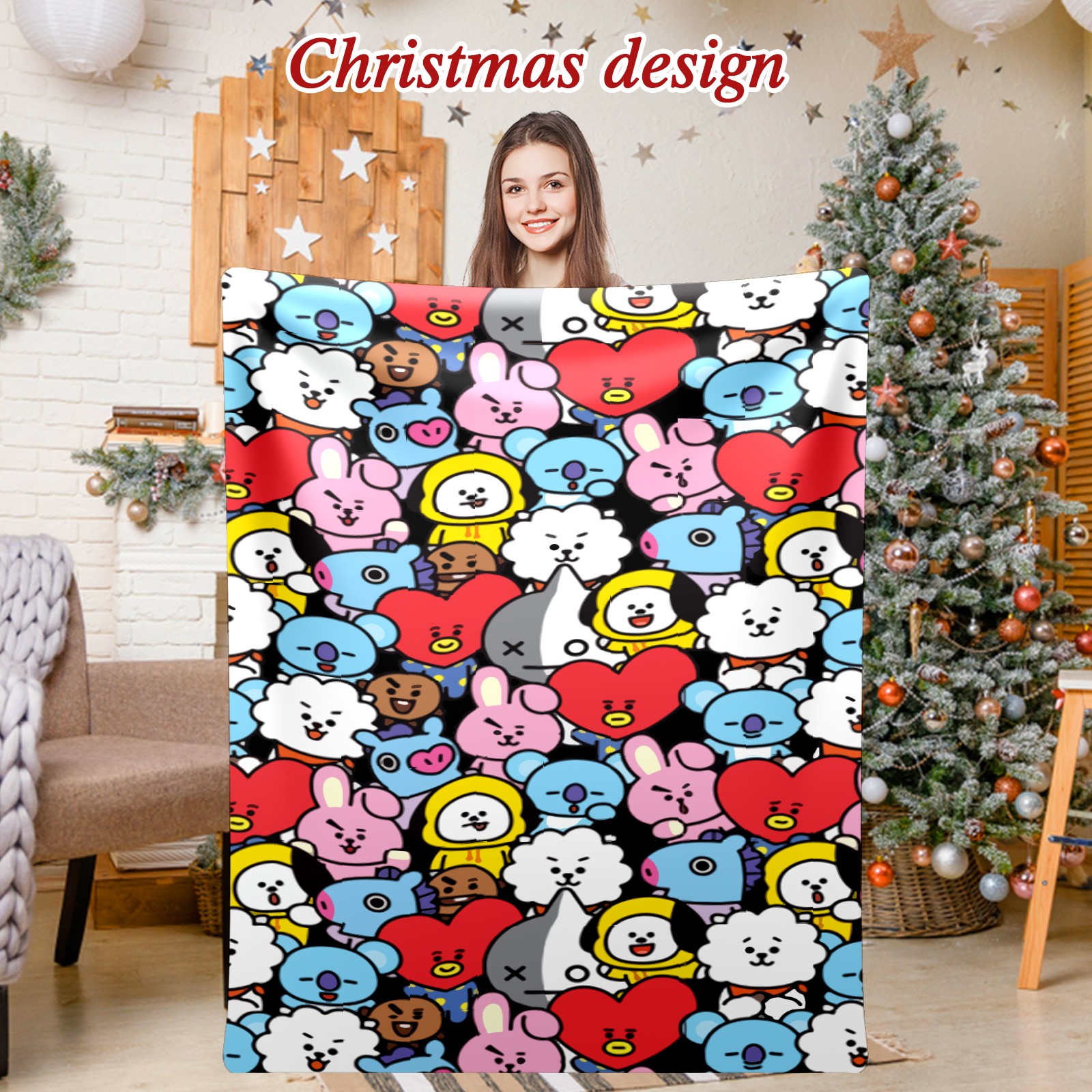 Премиальная фланелевая одеяло Bts Bt21