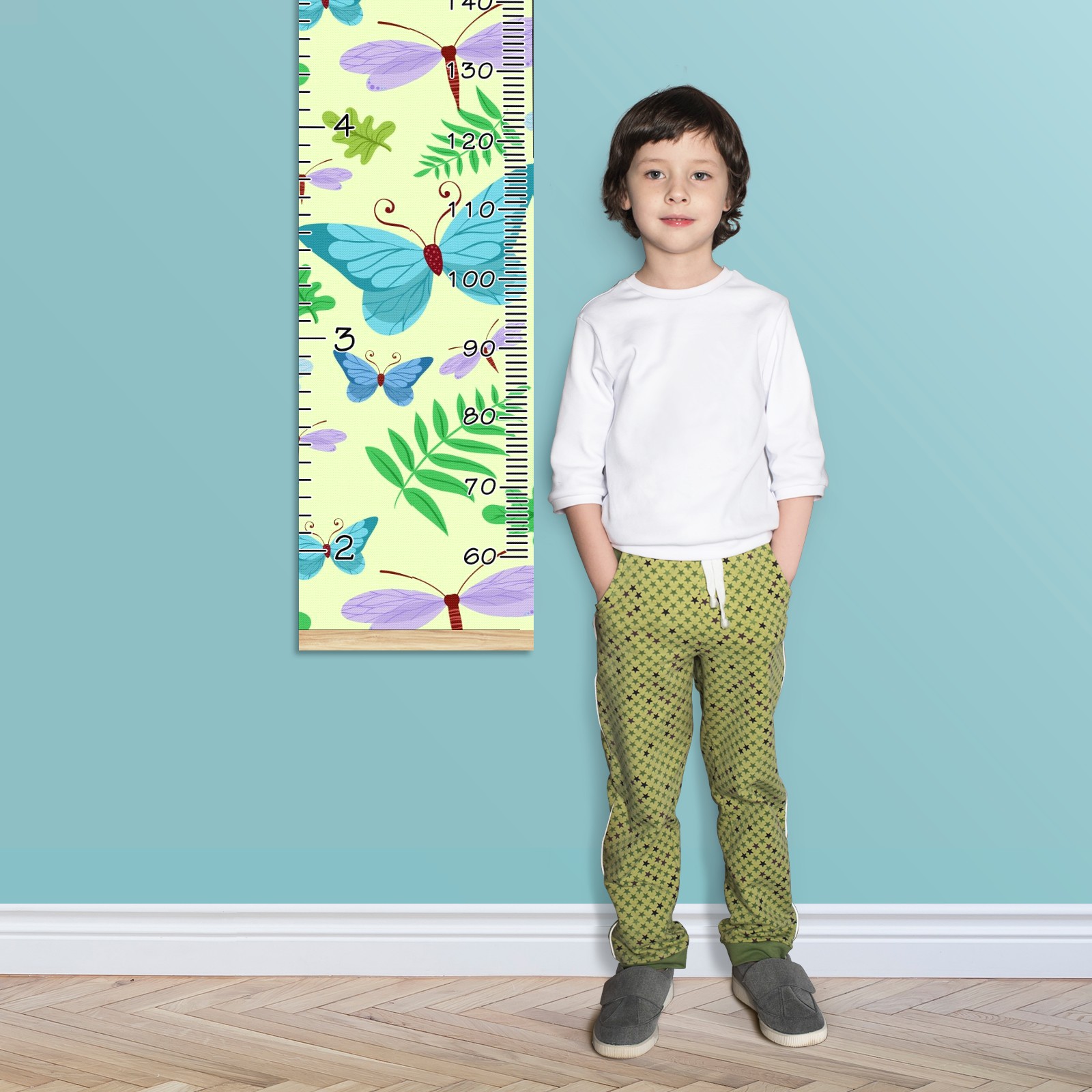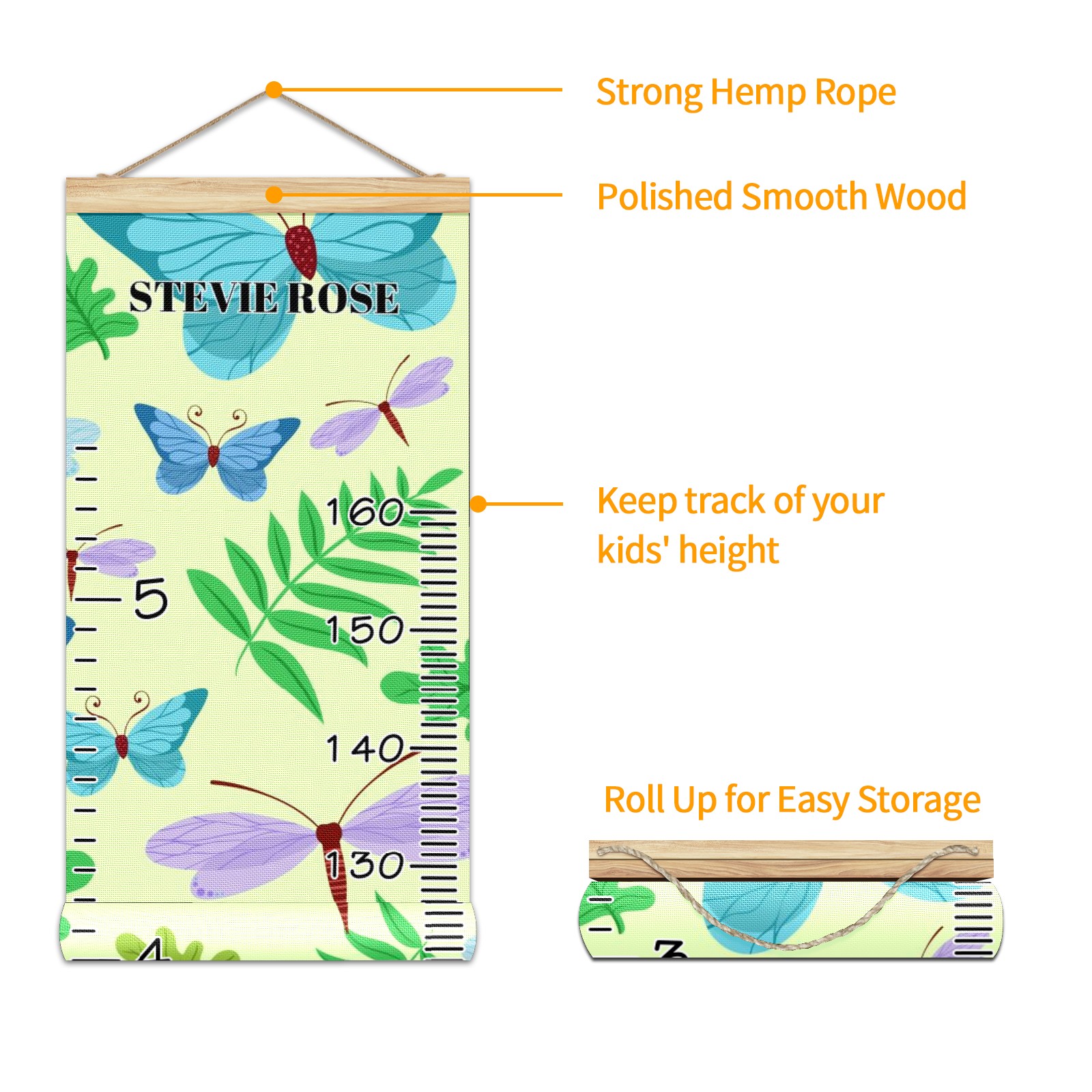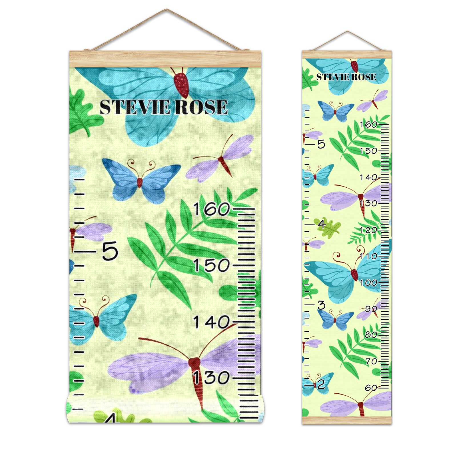 Personalized Kids Name Growth Chart Ruler for Wall Wood Frame Canvas Height Measure Chart 13.4x56 in Hanging Growth Chart Butterflies Green1.29 Boys Girls Room Decor