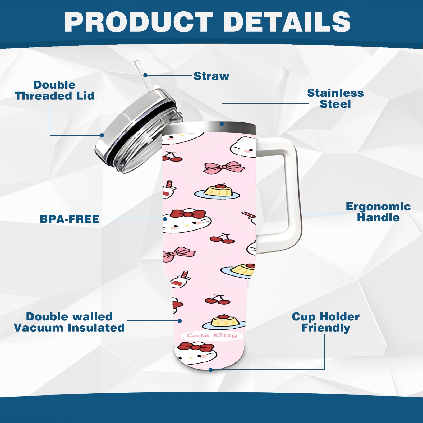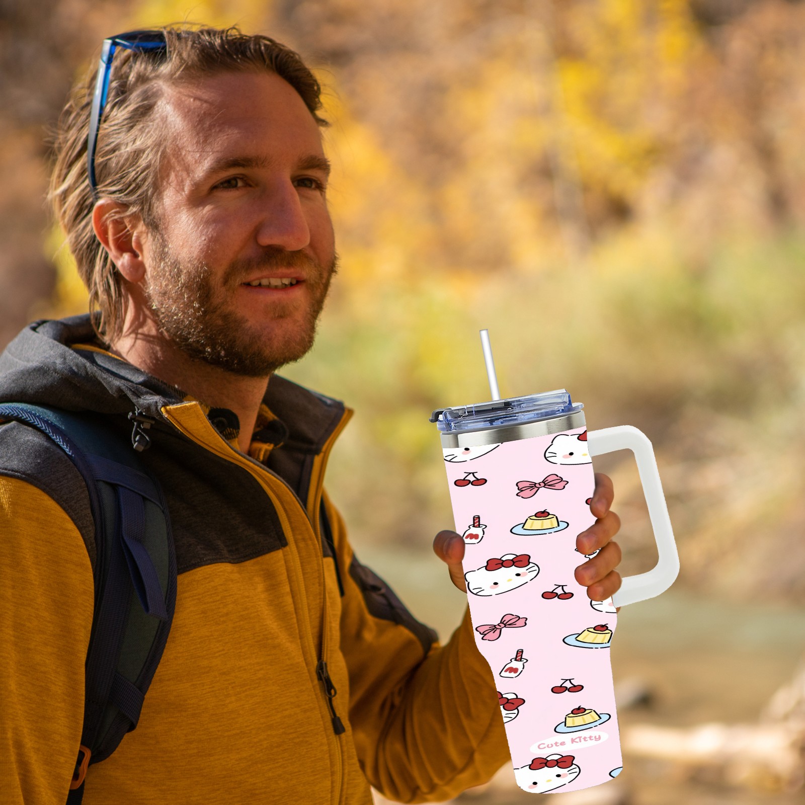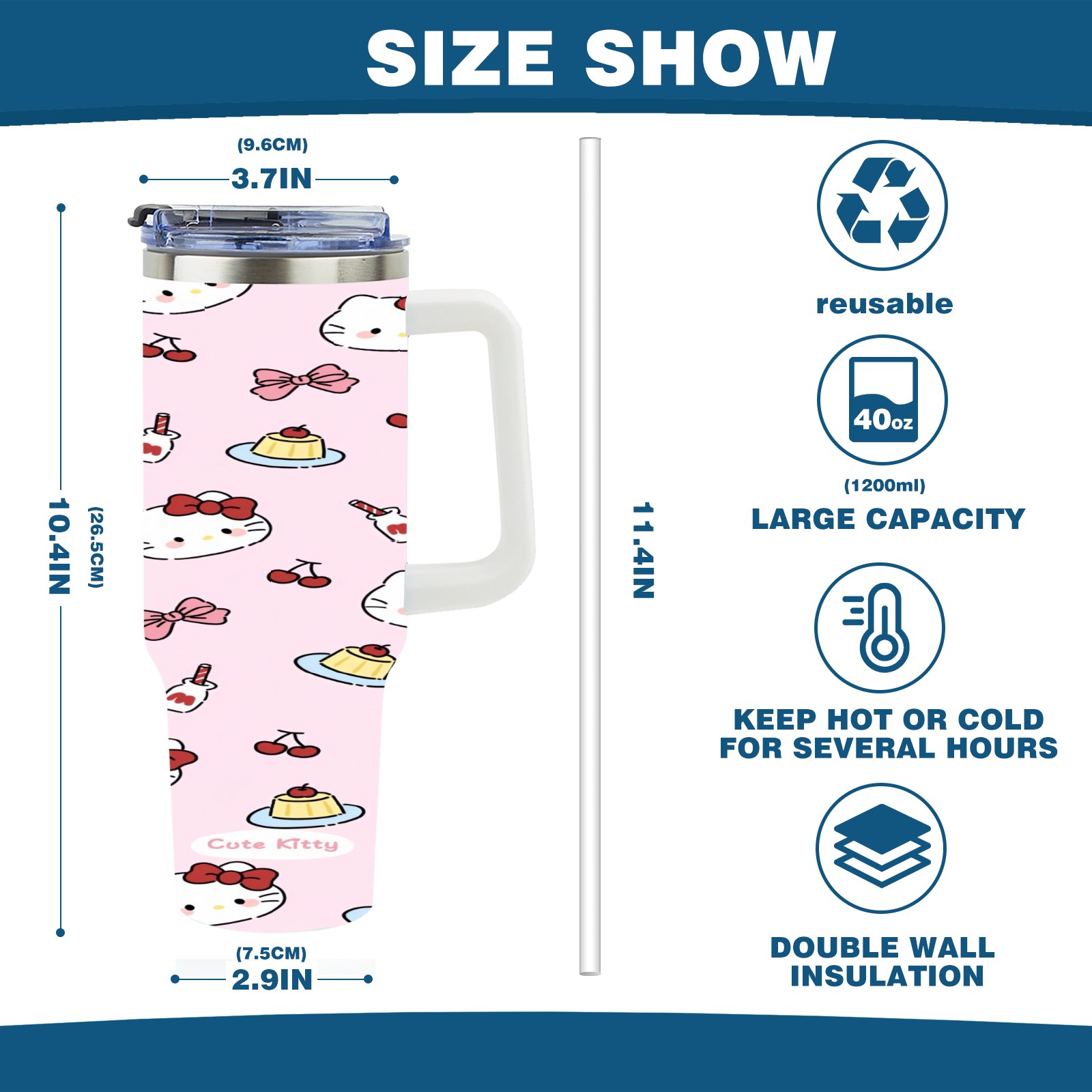 • <p>This multi-functional insulated water bottle features a simple and practical design, suitable for various daily scenarios. The ergonomic handle allows for easy one-handed drinking, and the detachable handle can be adjusted or removed as needed, making it convenient for commuting, exercising, or carrying to meetings. Made of high-quality stainless steel, it is BPA-free and features double-walled vacuum insulation technology that keeps drinks cold for 8 hours and hot for 6 hours, ensuring you can enjoy your beverage at the perfect temperature anytime, anywhere. The 40-ounce Christmas edition comes with a sliding lid, silicone straw, and a non-slip design. Accessories are dishwasher safe, and the narrow bottom and wide mouth design perfectly fits car cup holders. The exclusive flip-top straw lid is environmentally friendly and durable, with a one-touch leak-proof closure and two drinking modes: sip and gulp. A dust cover provides effective protection. This bottle is suitable for travel, office work, sports, camping, and other occasions, making it a thoughtful gift for friends and family.</p>