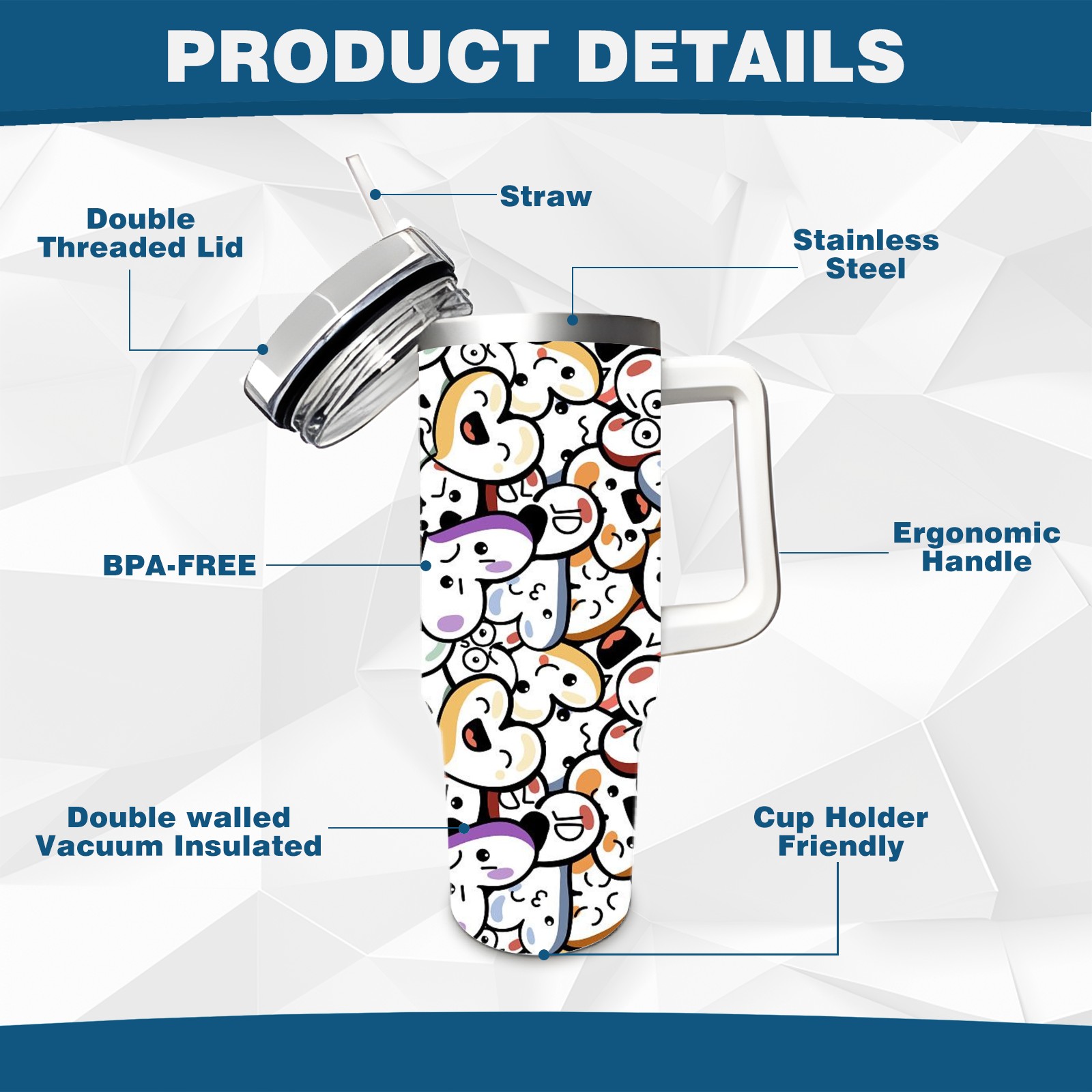 • <p>This multi-functional insulated water bottle features a simple and practical design, suitable for various daily scenarios. The ergonomic handle allows for easy one-handed drinking, and the detachable handle can be adjusted or removed as needed, making it convenient for commuting, exercising, or carrying to meetings. Made of high-quality stainless steel, it is BPA-free and features double-walled vacuum insulation technology that keeps drinks cold for 8 hours and hot for 6 hours, ensuring you can enjoy your beverage at the perfect temperature anytime, anywhere. The 40-ounce Christmas edition comes with a sliding lid, silicone straw, and a non-slip design. Accessories are dishwasher safe, and the narrow bottom and wide mouth design perfectly fits car cup holders. The exclusive flip-top straw lid is environmentally friendly and durable, with a one-touch leak-proof closure and two drinking modes: sip and gulp. A dust cover provides effective protection. This bottle is suitable for travel, office work, sports, camping, and other occasions, making it a thoughtful gift for friends and family.</p>