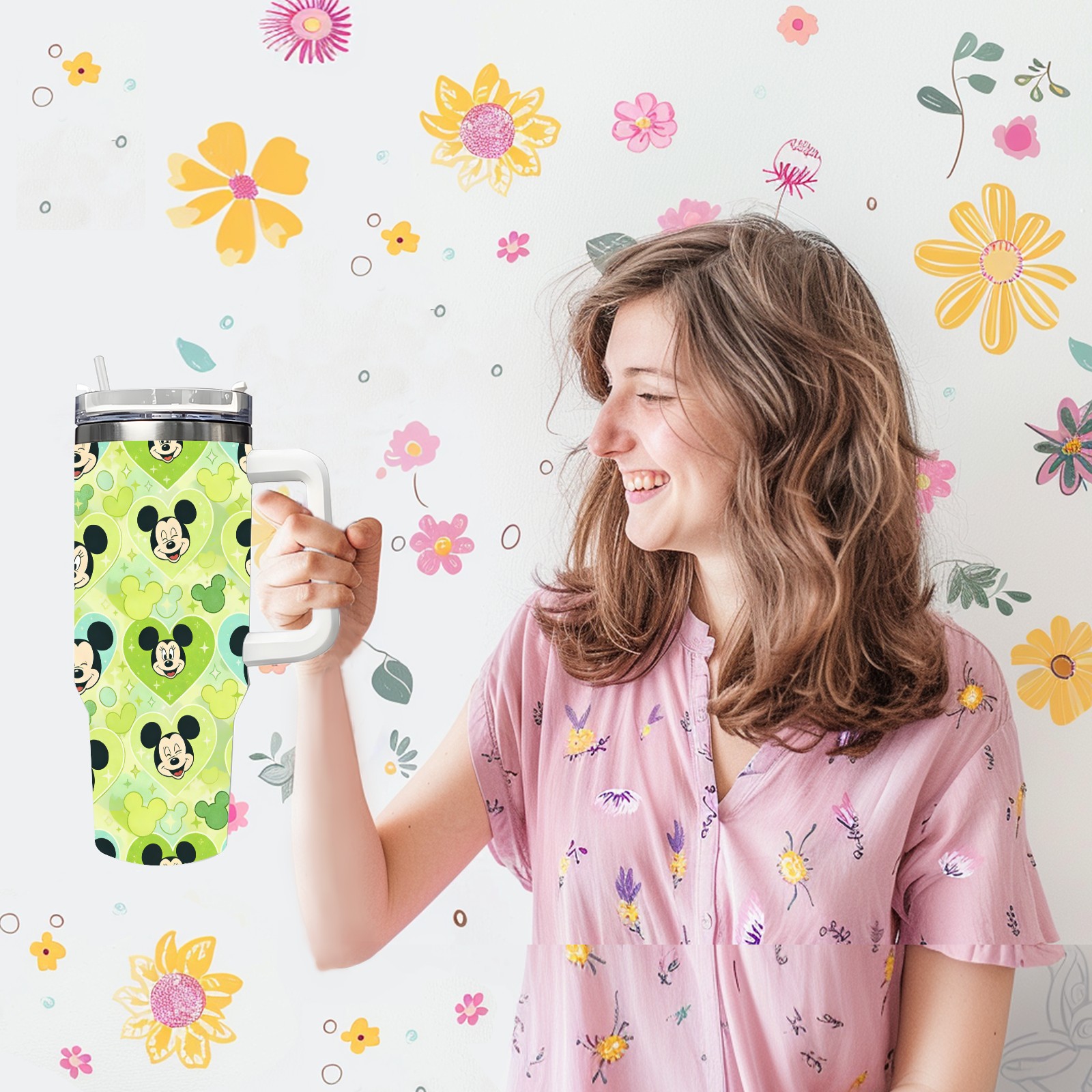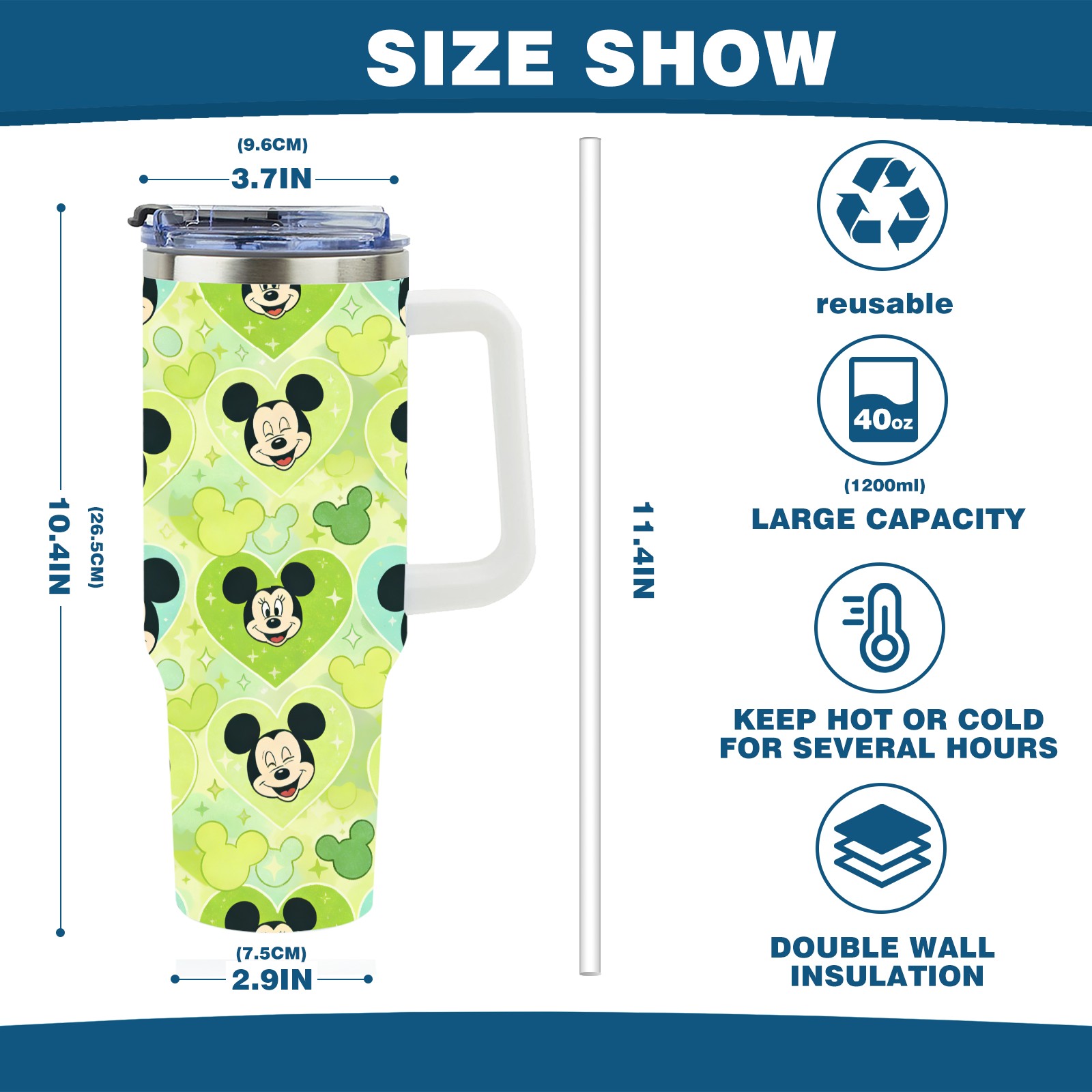 40oz 生成特定风格图片 (76) thermos with lid and straw, leak-proof stainless steel, with handle, spill-proof bottle, convenient for travel(white)