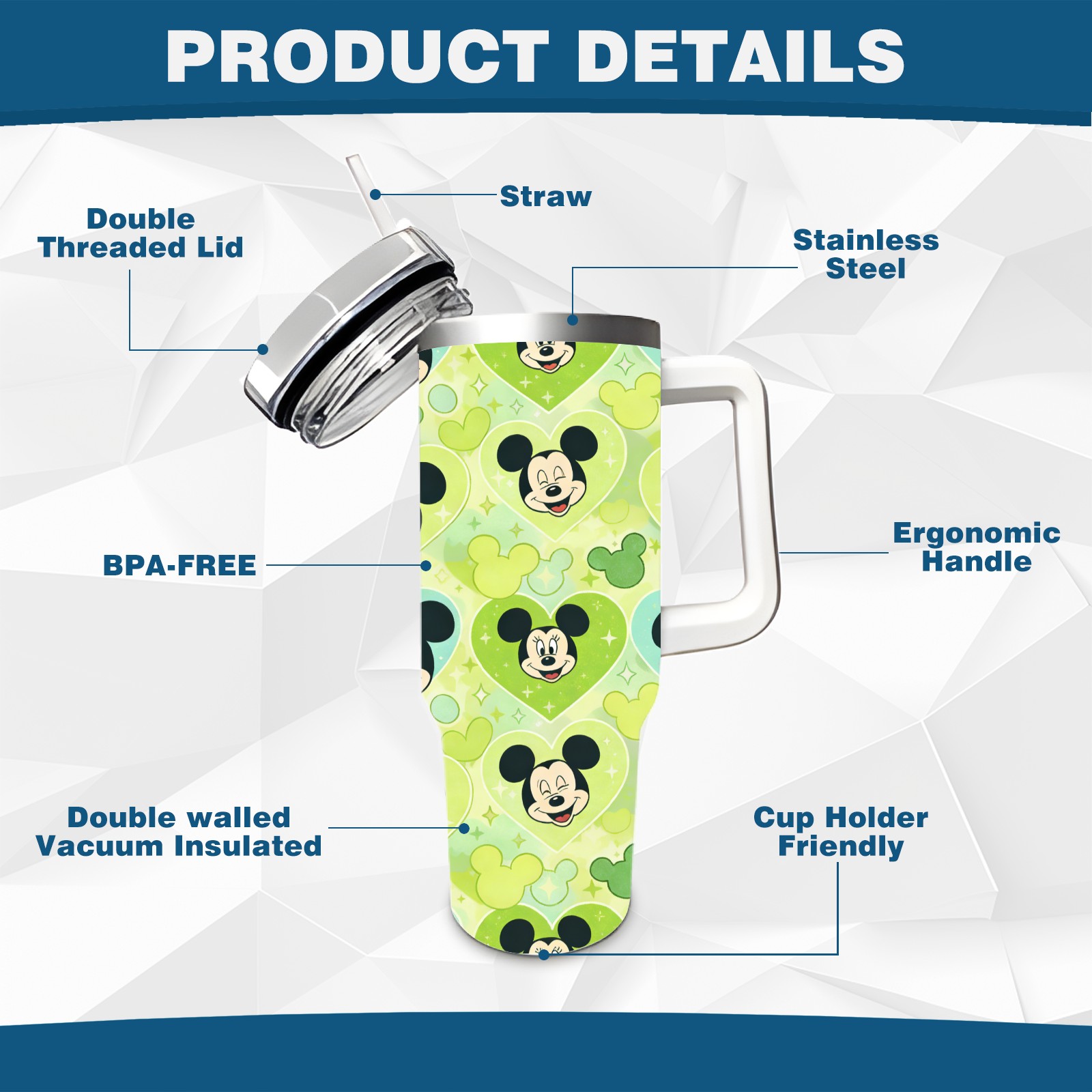 • <p>This multi-functional insulated water bottle features a simple and practical design, suitable for various daily scenarios. The ergonomic handle allows for easy one-handed drinking, and the detachable handle can be adjusted or removed as needed, making it convenient for commuting, exercising, or carrying to meetings. Made of high-quality stainless steel, it is BPA-free and features double-walled vacuum insulation technology that keeps drinks cold for 8 hours and hot for 6 hours, ensuring you can enjoy your beverage at the perfect temperature anytime, anywhere. The 40-ounce Christmas edition comes with a sliding lid, silicone straw, and a non-slip design. Accessories are dishwasher safe, and the narrow bottom and wide mouth design perfectly fits car cup holders. The exclusive flip-top straw lid is environmentally friendly and durable, with a one-touch leak-proof closure and two drinking modes: sip and gulp. A dust cover provides effective protection. This bottle is suitable for travel, office work, sports, camping, and other occasions, making it a thoughtful gift for friends and family.</p>