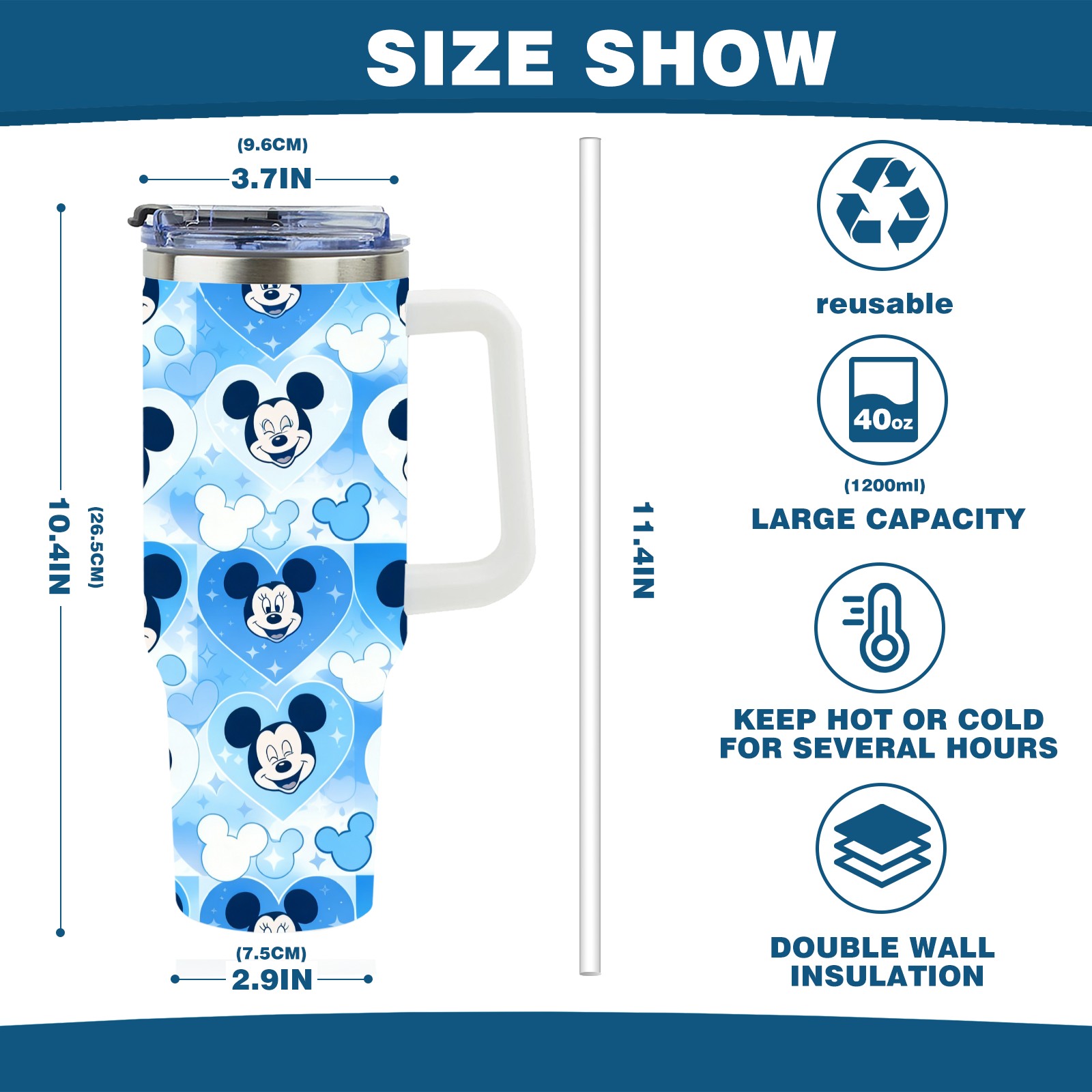 40oz 生成特定风格图片 (71) thermos with lid and straw, leak-proof stainless steel, with handle, spill-proof bottle, convenient for travel(white)