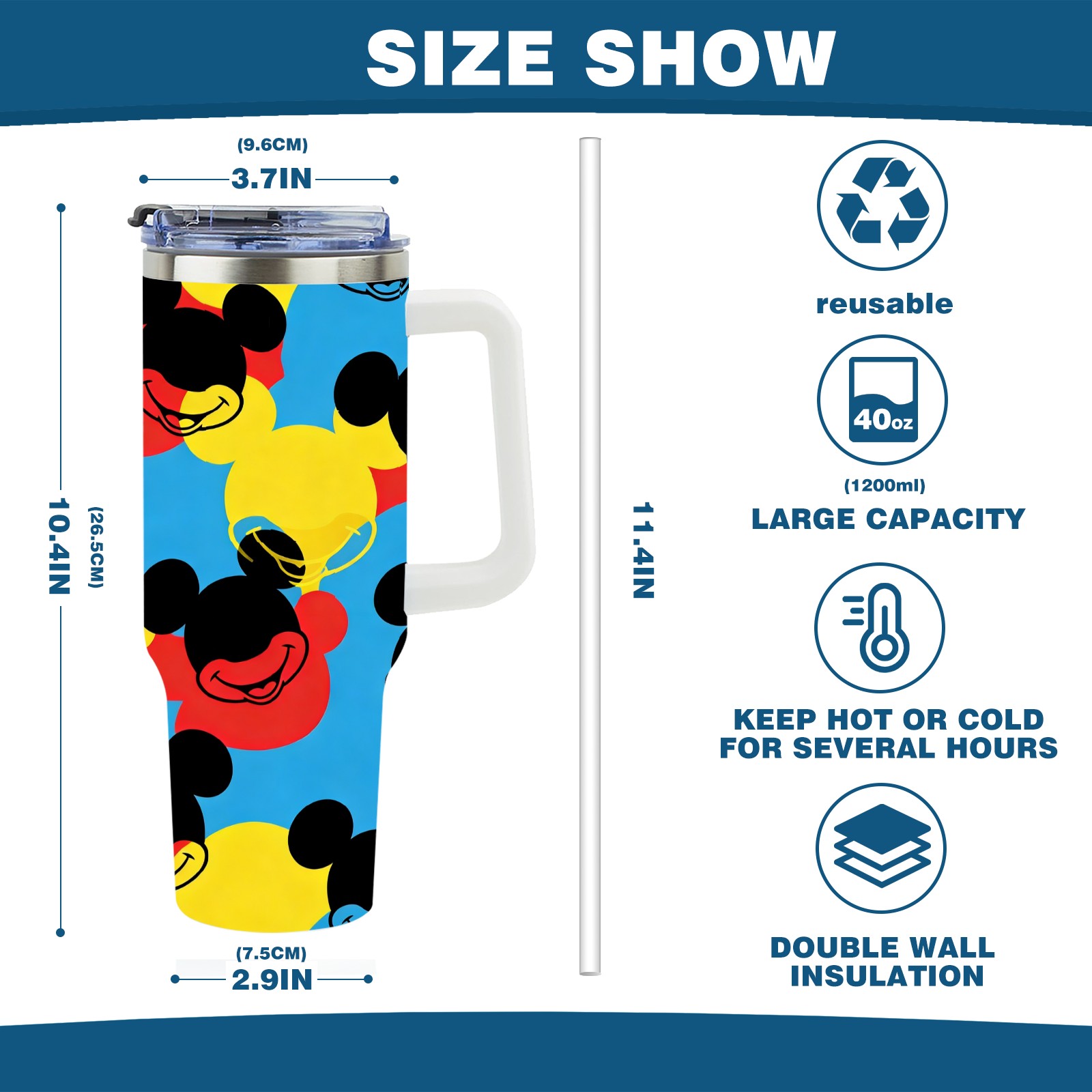 40oz 生成特定风格图片 (65) thermos with lid and straw, leak-proof stainless steel, with handle, spill-proof bottle, convenient for travel(white)